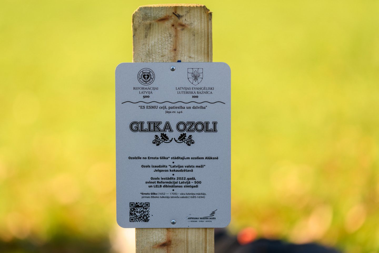 2022.gadā tiek atzīmēta reformācijas piecsimtgade Latvijā. Par godu jubilejas gadam, Latvijas Evaņģēliski luteriskā baznīca īsteno projektu "Glika ozoli", visā Latvijā stādot ozolus. Šodien pie Latvijas Nacionālās bibliotēkas (LNB) tika iestādīts "Glika ozols" Ozoli ir izaudzēti no ozolzīlēm, kuras salasītas no pirmās Bībeles latviešu valodā tulkotāja - vācu mācītāja Ernsta Johana Glika Alūksnē stādītajiem ozoliem. Ozols tika stādīts zālienā pie skulptūras "Divi Raiņi", stādīšanas procesā piedalījās arhibīskaps Jānis Vanags, LNB izpilddirektorei Dzintrai Mukānei, kā arī LELB un LNB darbiniekiem.