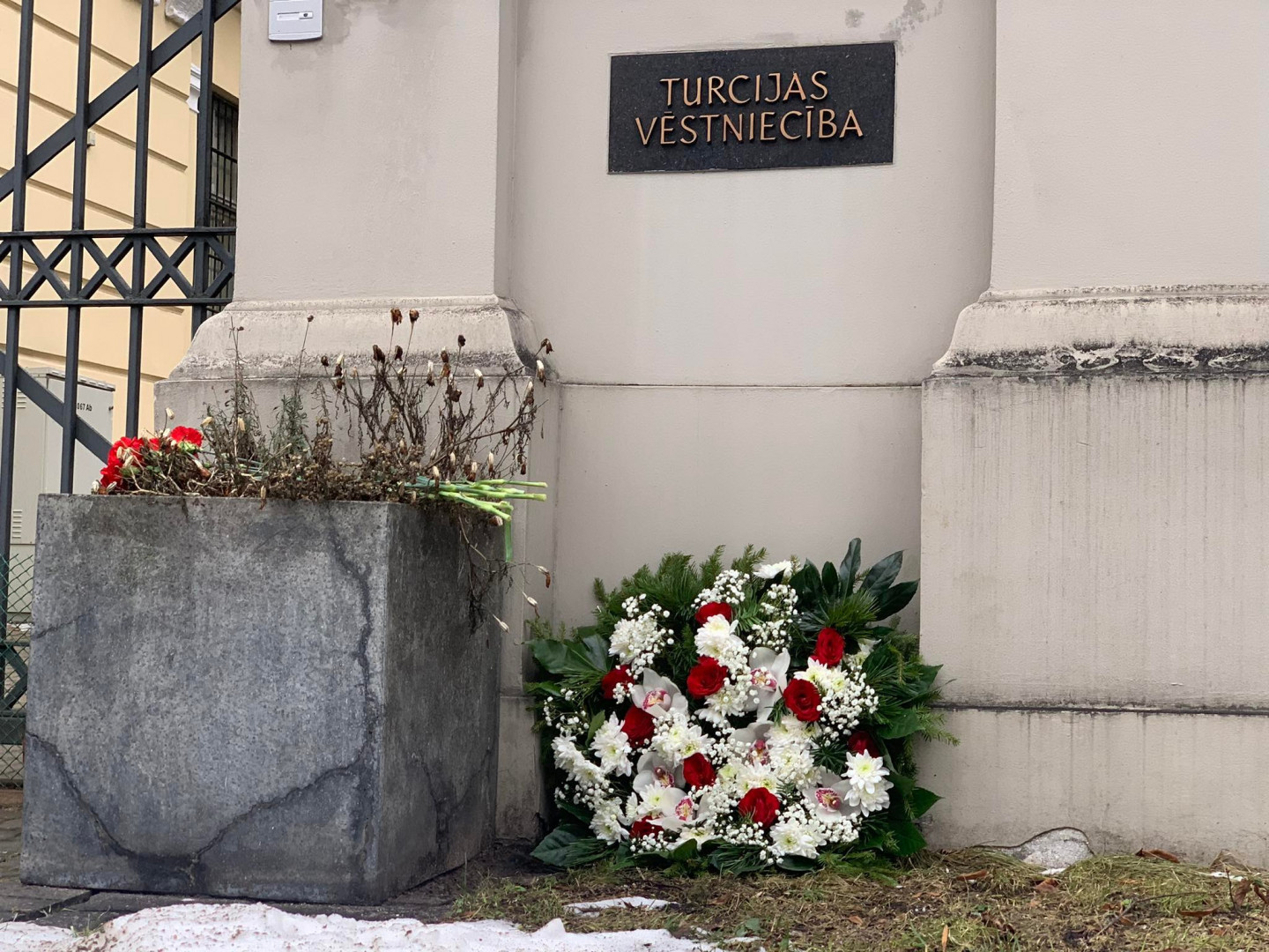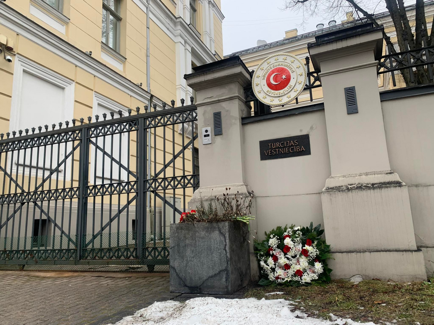 Pie Turcijas vēstniecības Latvijā gulst ziedi, kas nolikt pieminot traģiskās zemestrīces Turcijā upurus. Jau vēstījām, ka pirmdien notikušajās divās zemestrīcēs, kas skāra Turciju un Sīriju, bojāgājušo cilvēku skaits pārsniedzis 4800. Turcijā 10 provincēs gājis bojā vismaz 3381 cilvēks, bet ievainoti vairāk nekā 20 000 cilvēki, paziņoja Turcijas katastrofu pārvaldības aģentūra. Domājams, ka bojāgājušo skaits zemestrīcēs un pēcgrūdienos turpinās pieaugt, glābējiem meklējot izdzīvojušos metāla un betona gruvešos. Pasaules Veselības organizācijas amatpersonas lēsa, ka var būt gājuši bojā līdz 20 000 cilvēku. Turcijas prezidents Redžeps Tajips Erdogans valstī izsludinājis sēras līdz svētdienai.