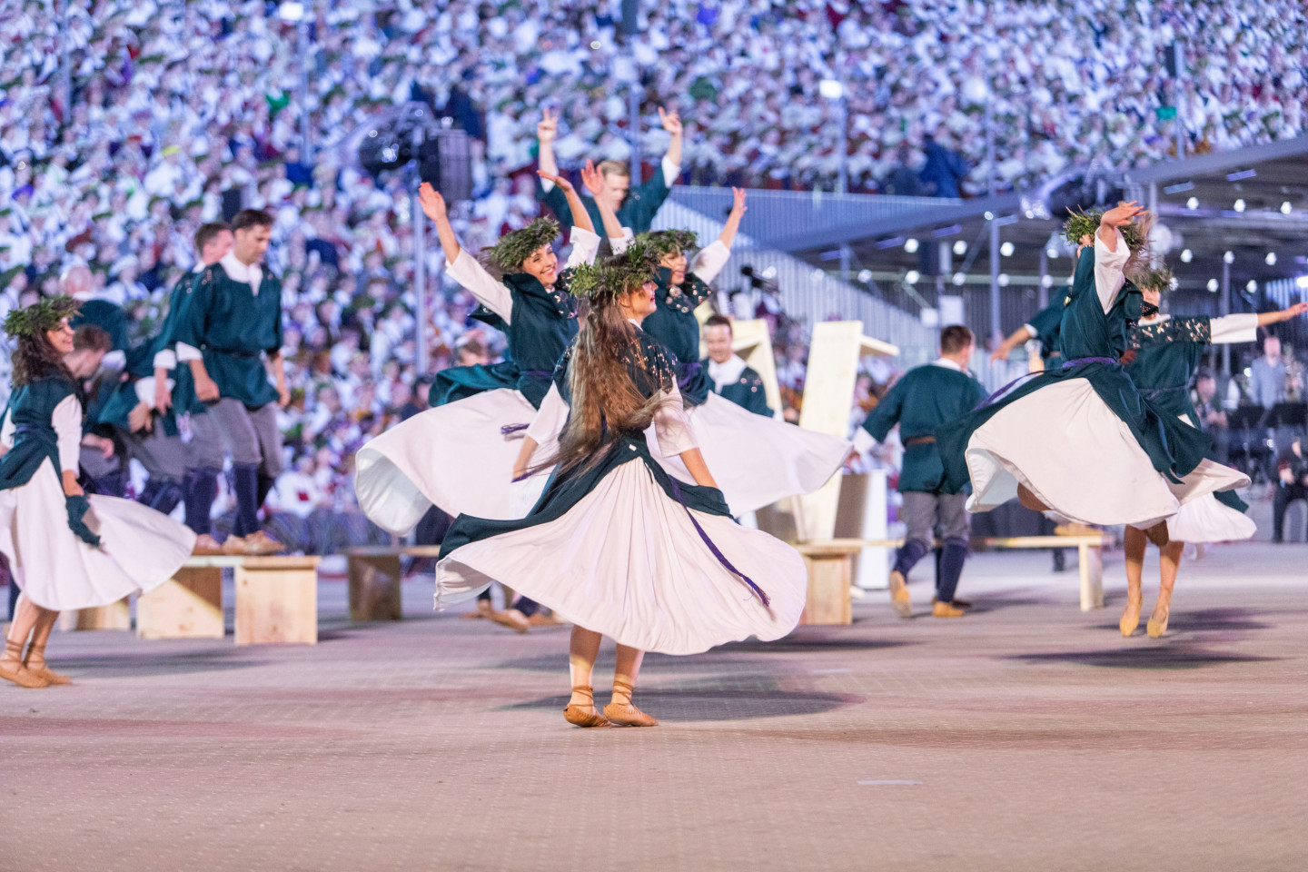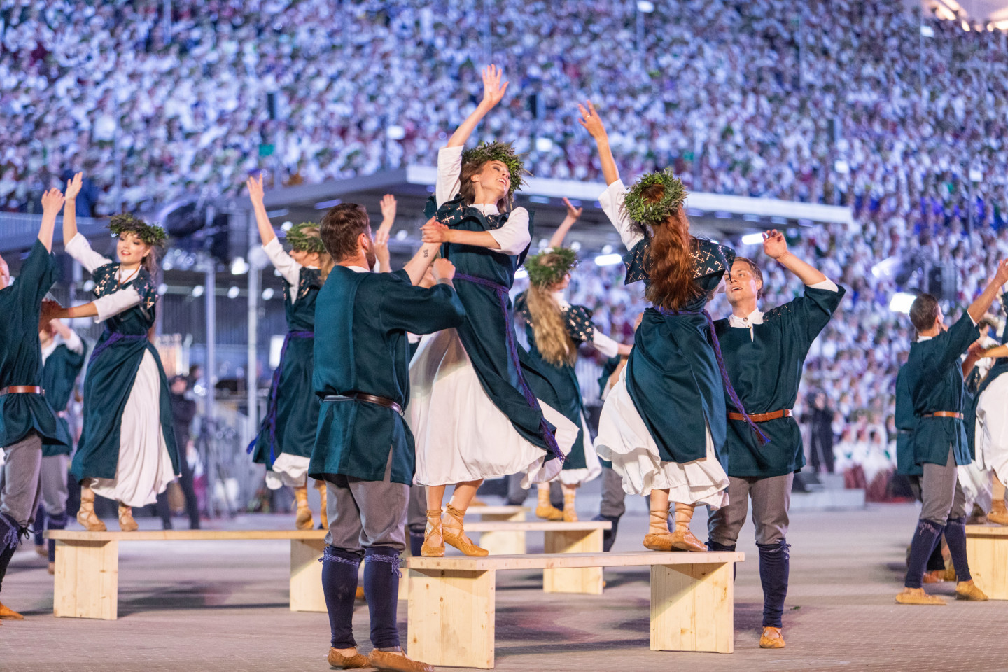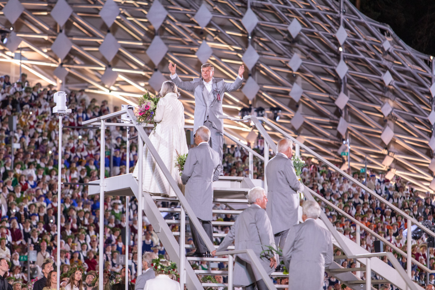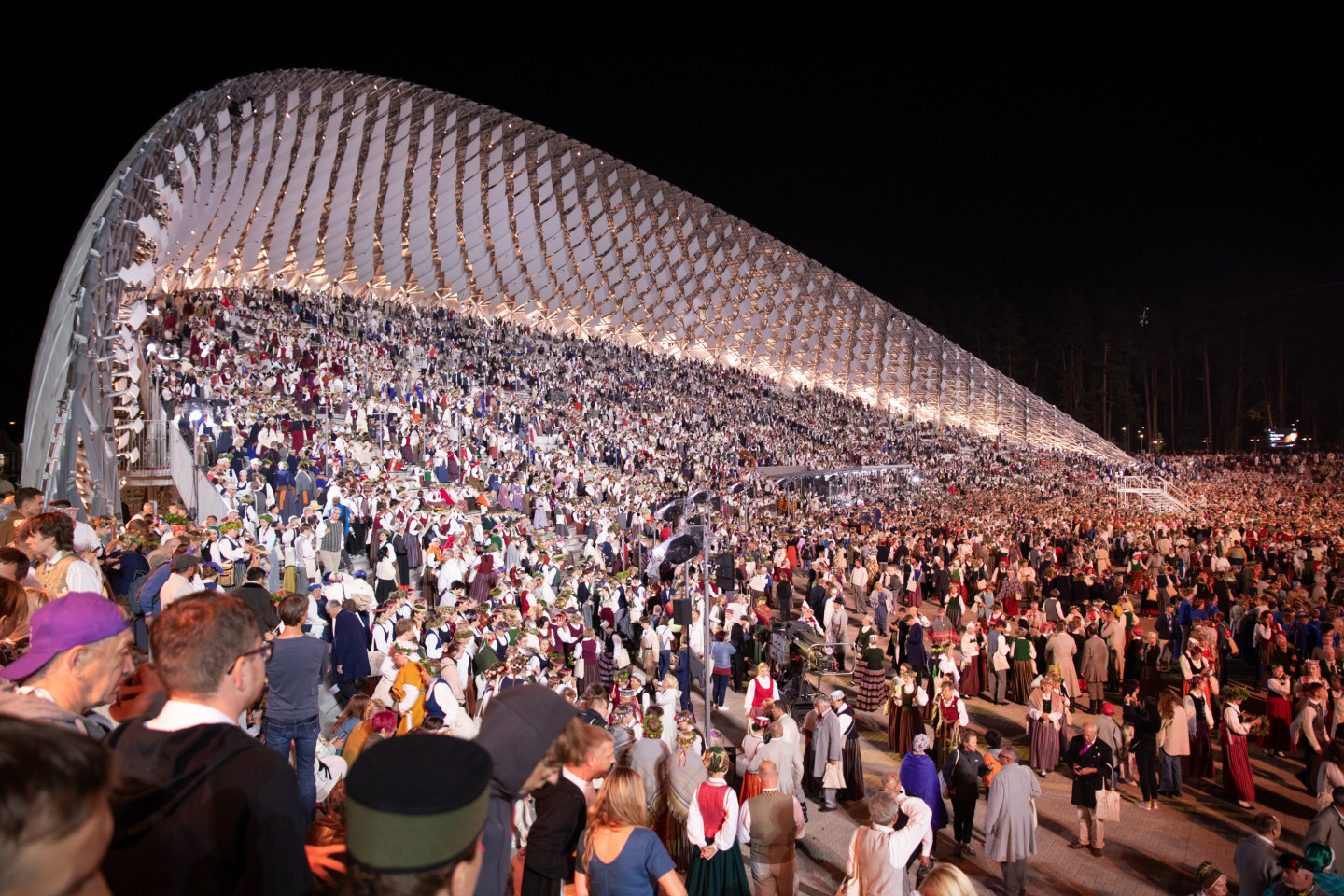 Vakar, 9.jūlijā, ar noslēguma koncertu "Kopā augšup" noslēdzas Dziesmu un deju svētki. Koncerts bija veltījums Dziesmusvētku tradīcijas 150.gadadienai. Mežaparka atjaunotajā estrādē pieredzējušu virsdiriģentu un goda virsdiriģentu vadībā skanēja jauktie, sievu, vīru, senioru, bērnu un jauniešu kori, pūtēju orķestri un kokļu ansambļi. Pēc noslēguma koncerta Mežaparka Lielajā estrādē no plkst.24 noritēja tradicionālā sadziedāšanās nakts. Reizi piecos gados gan Dziesmu un deju svētku dalībnieki, gan skatītāji, gan svētku veidotāji pēc noslēguma koncerta rada lielo kopkori un no sirds var izdziedāt iemīļotās dziesmas.
