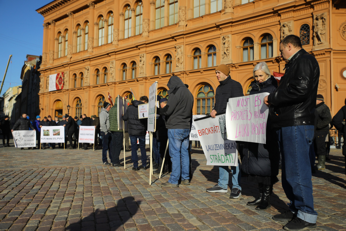 Rīgā, Doma laukumā, otrdienas rītā pulcējušies vairāki simti lauksaimnieku, lai dotos protesta gājienā uz Ministru kabinetu un pievienotos meža nozares piketam par adekvātu kompensāciju ieviešanu, ja meža zeme tiek nodota dabas aizsardzībai. Protestētāji Doma laukumā pulcējās vēl pirms plkst.10, līdzi ņemot dažādas izkārtnes un lauksaimniecībā izmantojamus priekšmetus, piemēram, spaiņus, grozus, motorzāģus. Tikmēr izkārnēs pausti aicinājumi "ļaut lauksaimniekiem strādāt", samazināt pievienotās vērtības nodokli (PVN) Latvijai raksturīgiem augļiem un dārzeņiem, kā arī "atteikties no Krievijas asinsgraudiem". Biedrības "Zemnieku saeima" valdes priekšsēdētājs Juris Lazdiņš aģentūrai LETA pauda, ka lauksaimnieku prasības, kas tika iesniegtas politikas veidotājiem februāra sākumā, vēl nav izpildītas, taču pie tām darbs ir sācies. Vienlaikus Lazdiņš norādīja, ka pēc šīs dienas protesta akcijas "Zemnieku saeima" Rīgas domē iesniegs pieteikumu protesta akcijām oktobrī, tādējādi skaidri norādot nozares neatlaidību izvirzīto mērķu sasniegšanai. "Šis ir viens no radikālākajiem veidiem, kā risināt problēmas," atzina Lazdiņš, piebilstot, ka problēmas lauksaimniecības nozarē jau ir ilgstošas un šādas protesta akcijas ir labs veids, kā politiķiem atgādināt par nepieciešamību tās risināt.