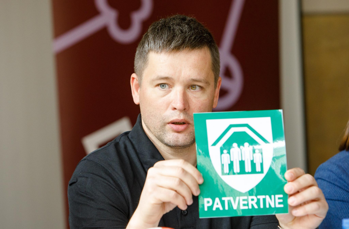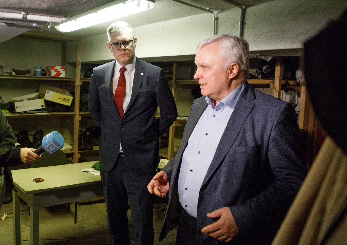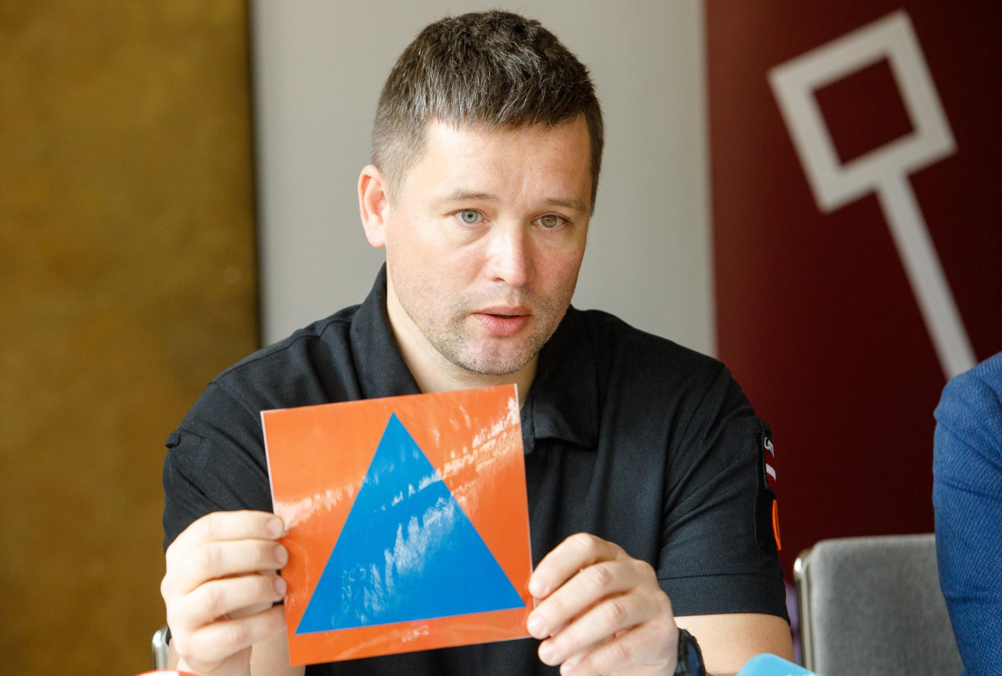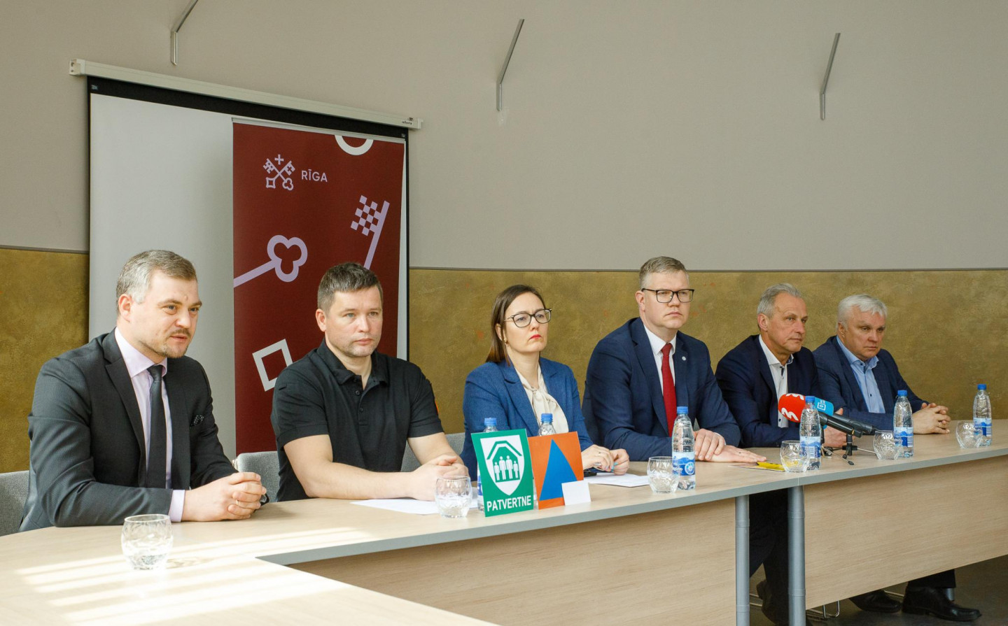 Rīgas 49.vidusskolas sporta kompleksā notiek preses konference, kurā Rīgas pašvaldības pārstāvji informē par pareizu telpu pielāgošanu drošam patvērumam.