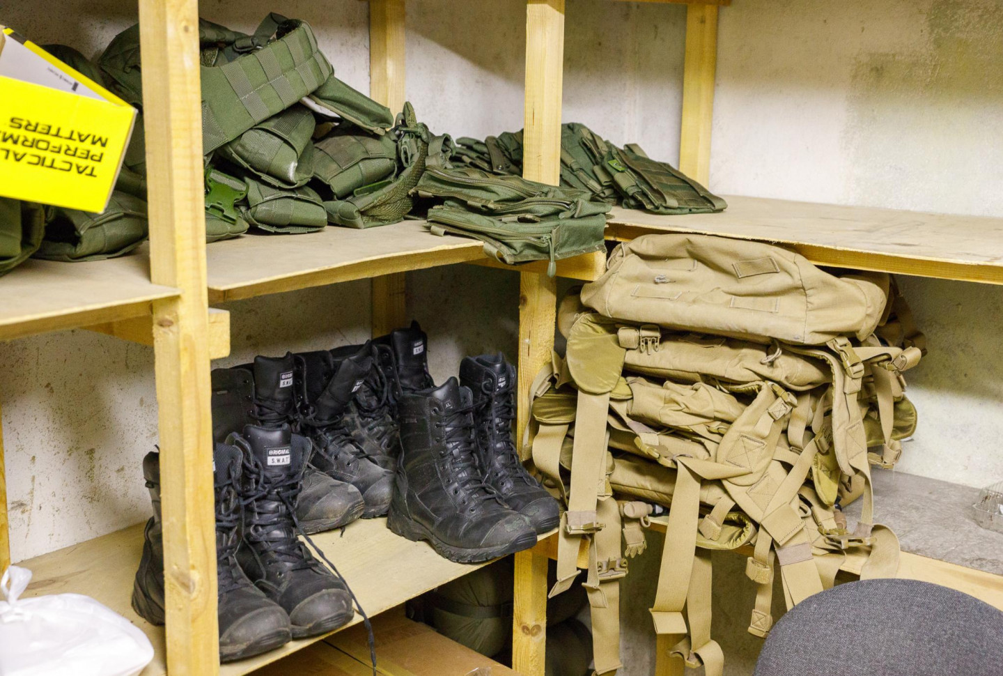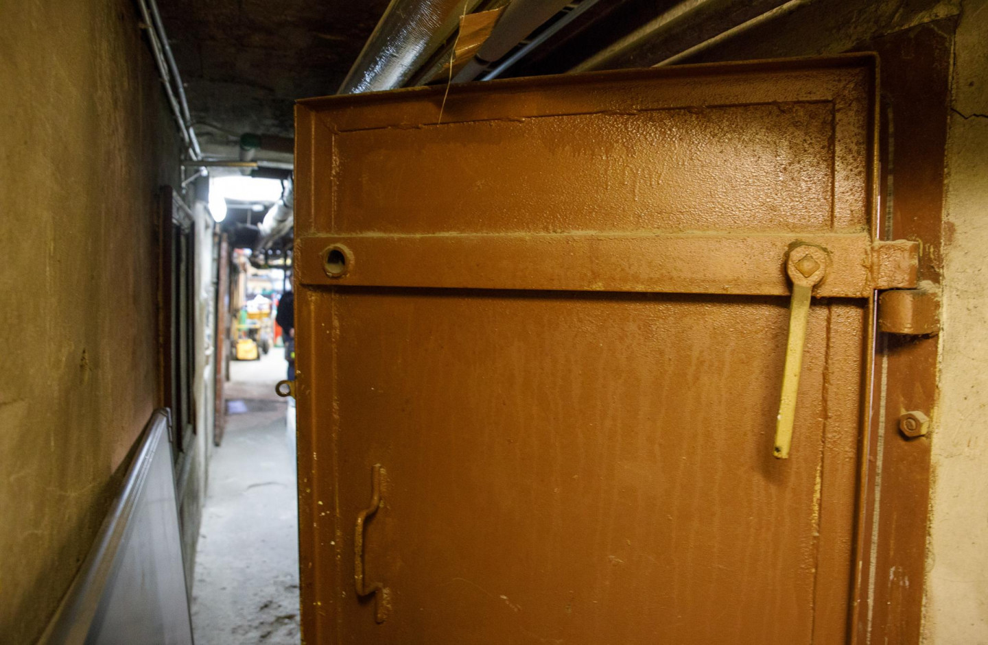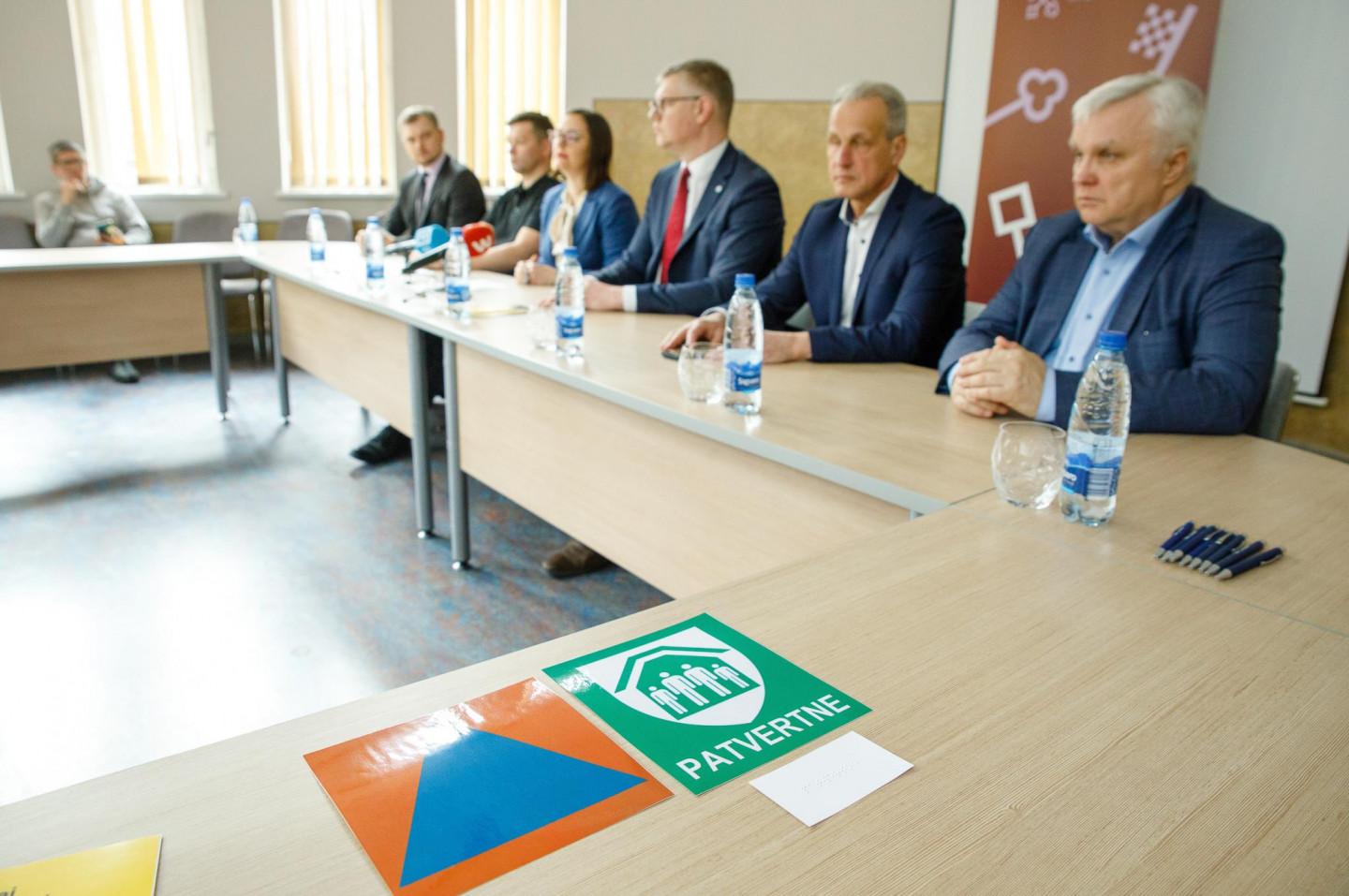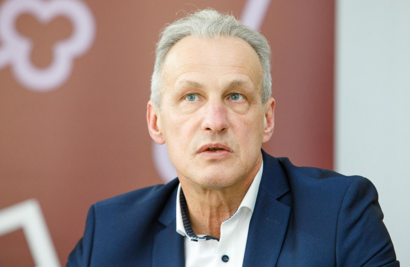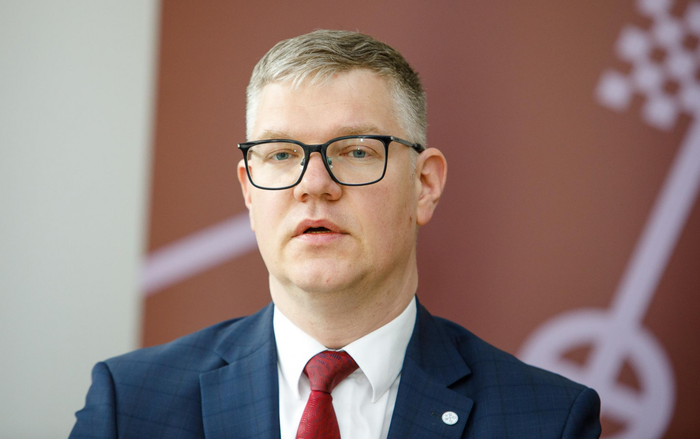 Rīgas 49.vidusskolas sporta kompleksā notiek preses konference, kurā Rīgas pašvaldības pārstāvji informē par pareizu telpu pielāgošanu drošam patvērumam.