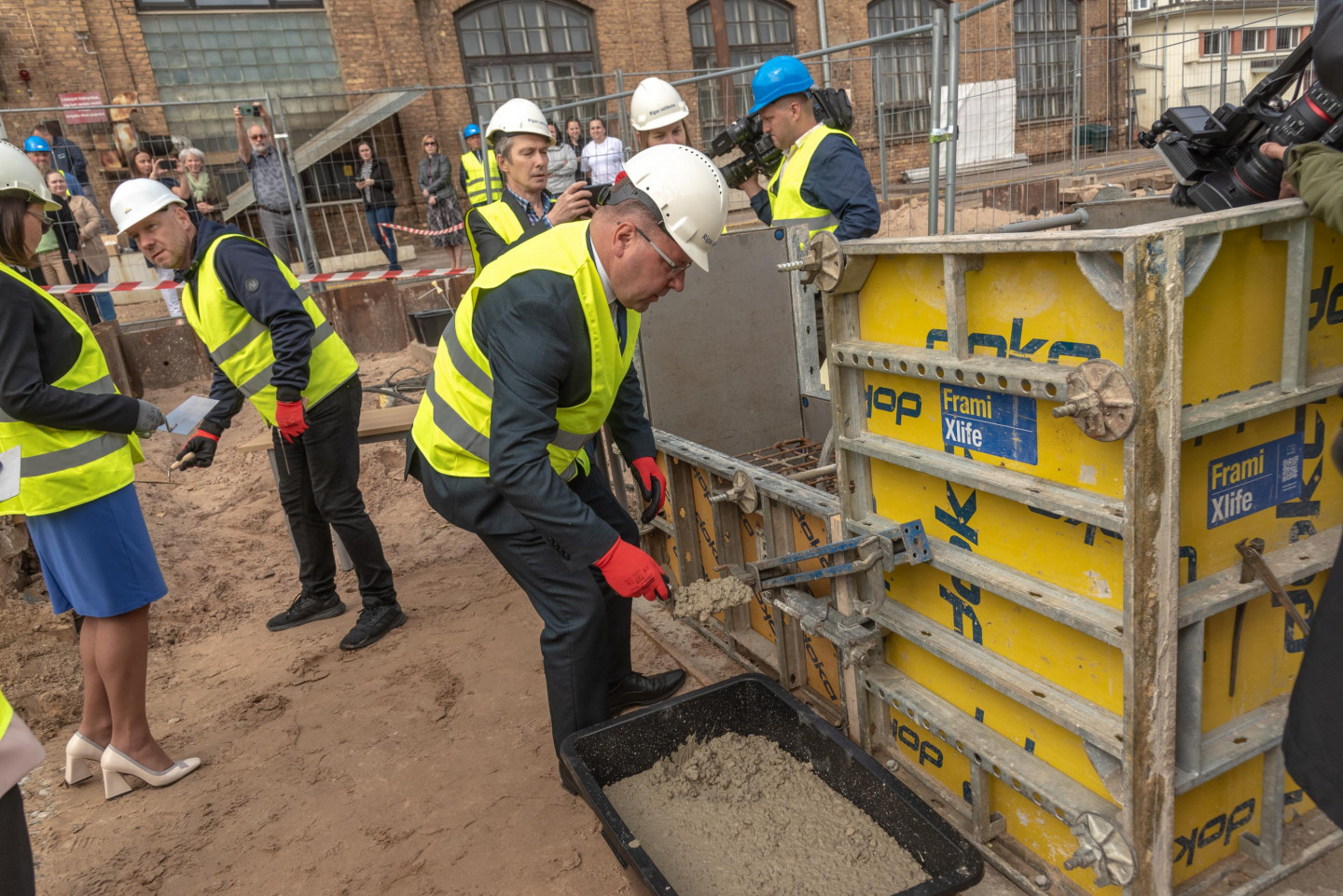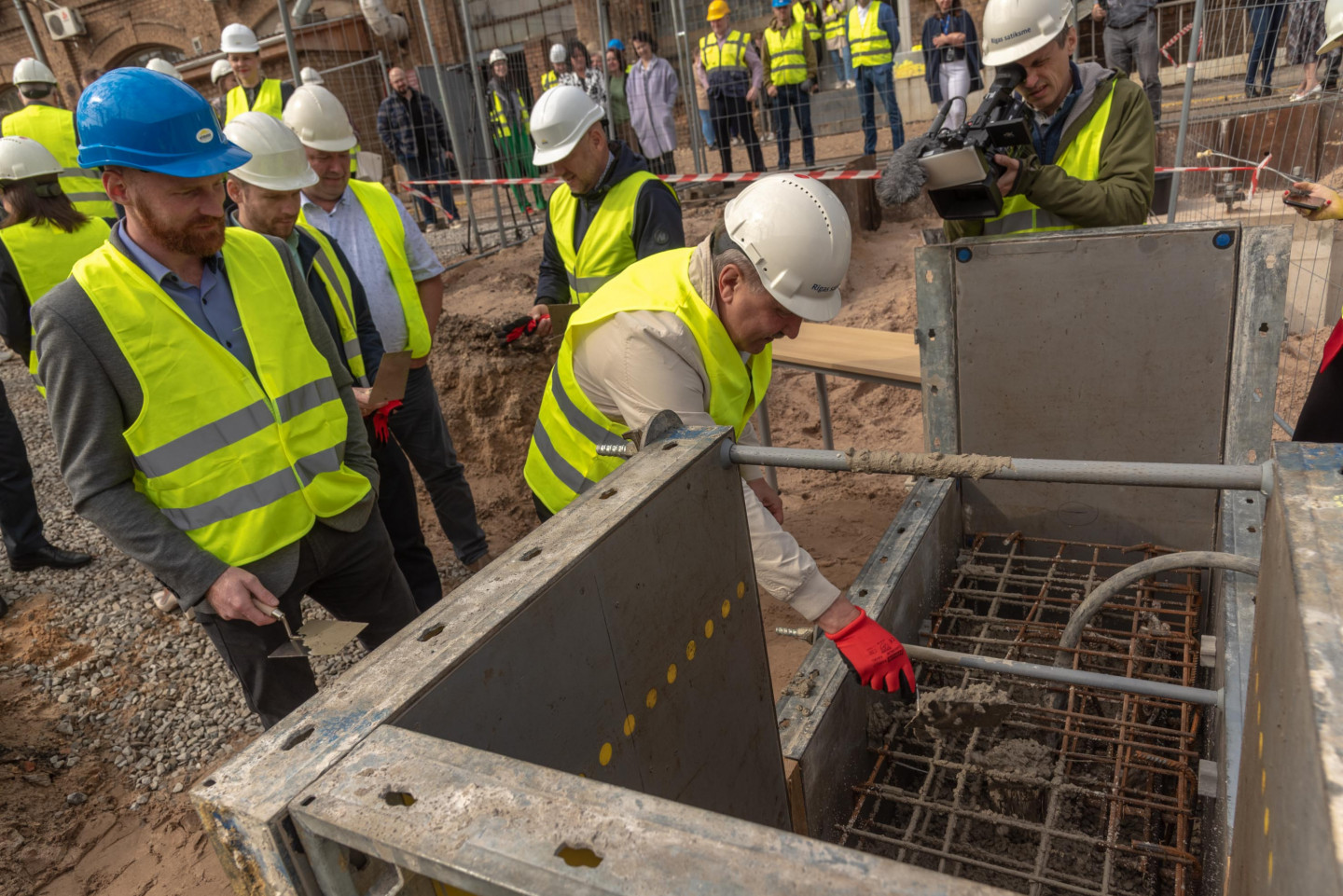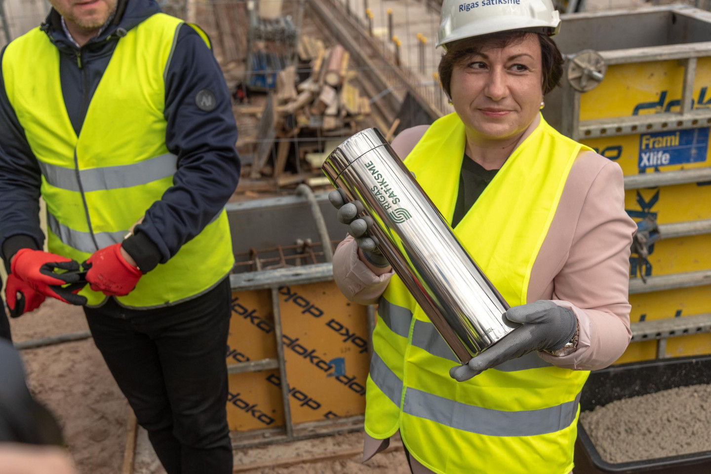 Šodien Rīgā pie 5. tramvaja depo iemūrēja laika kapsulu.