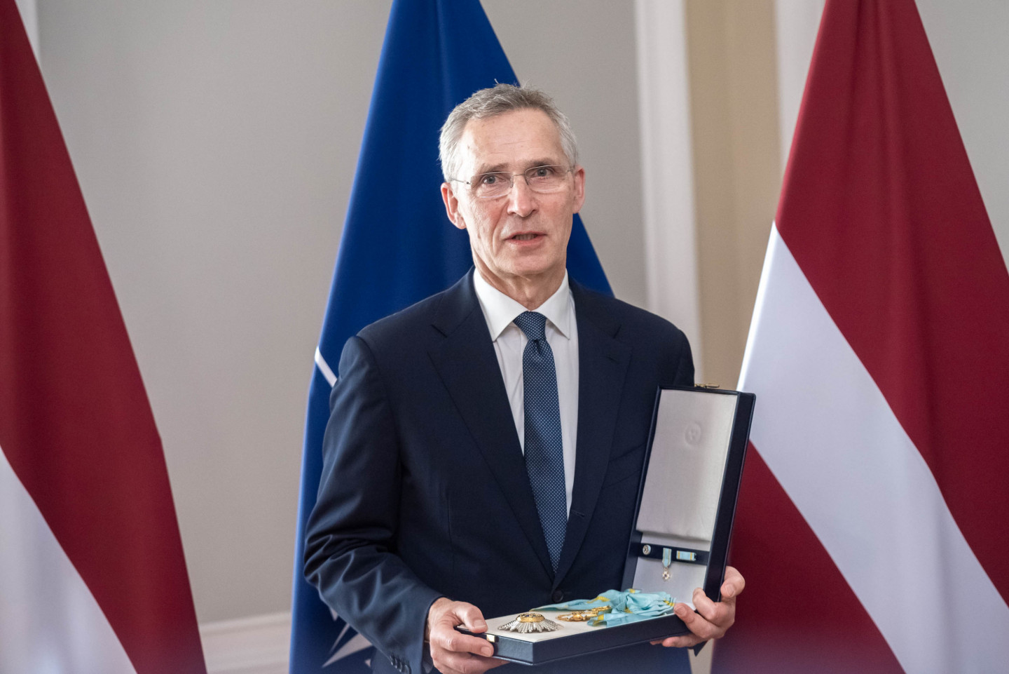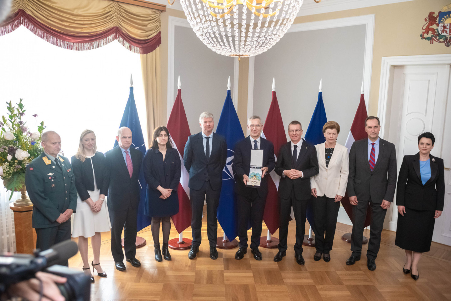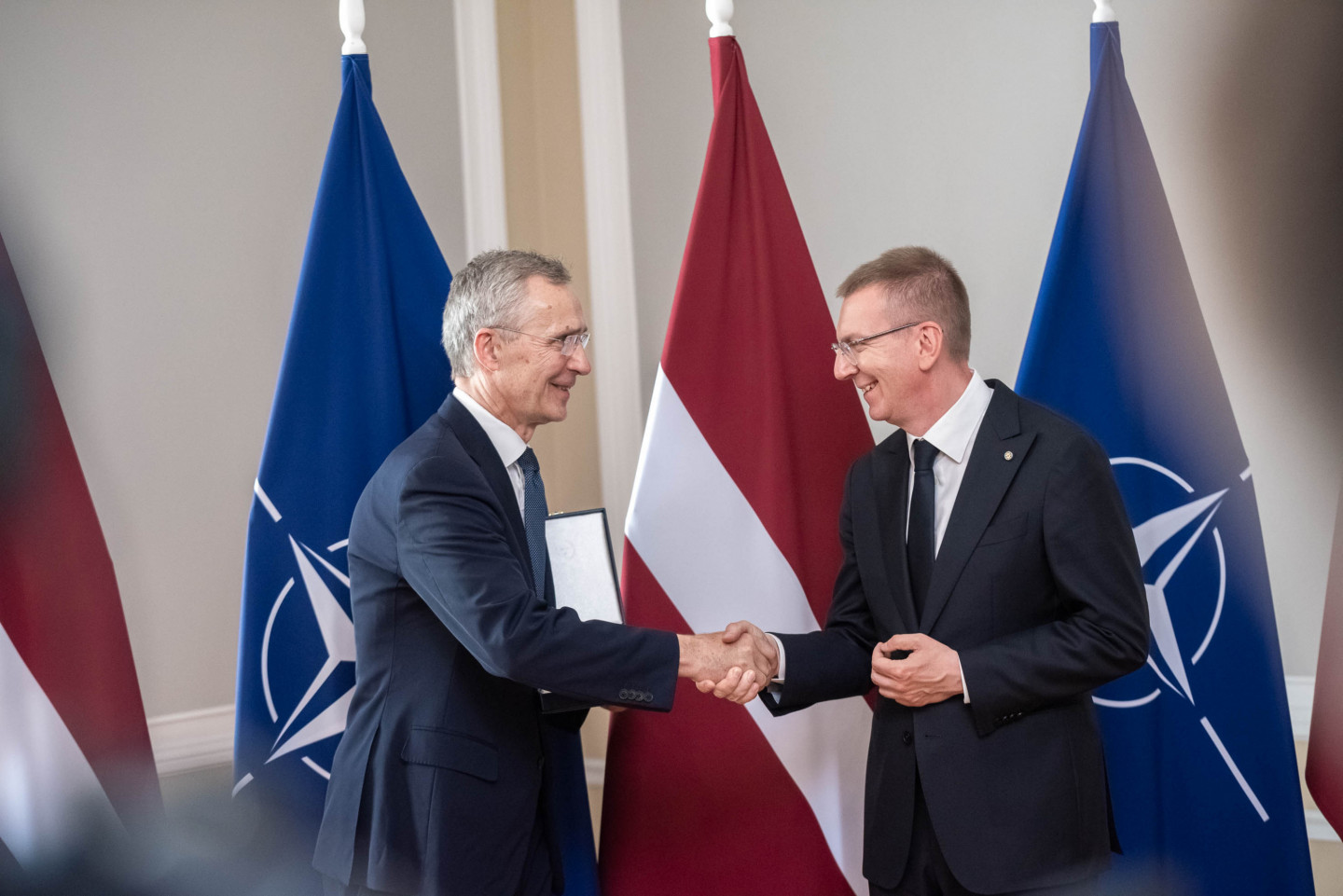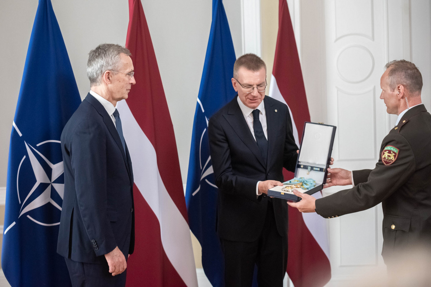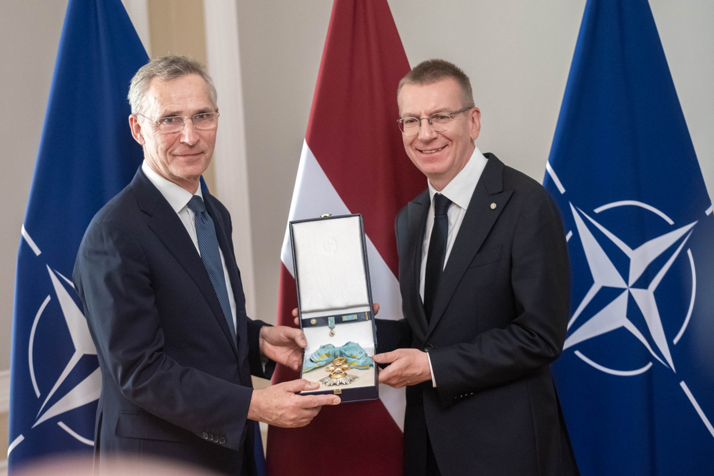 Valsts prezidents Edgars Rinkēvičs šodien pasniedza NATO ģenerālsekretāram Jensam Stoltenbergam valsts augstāko apbalvojumu - Triju Zvaigžņu ordeni.