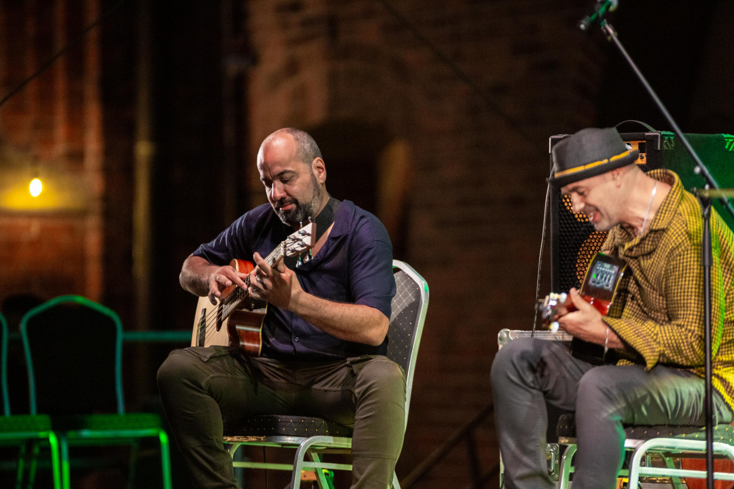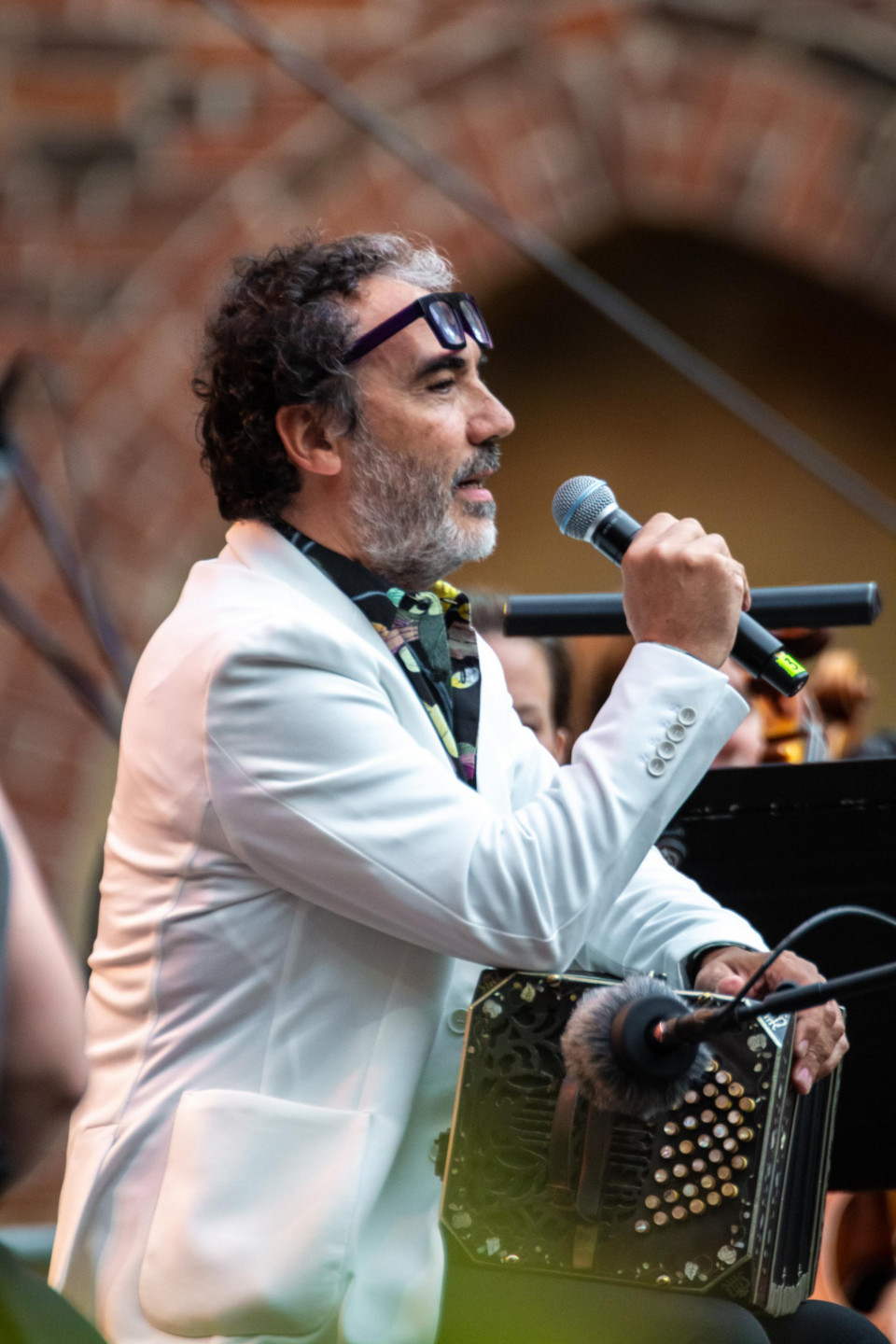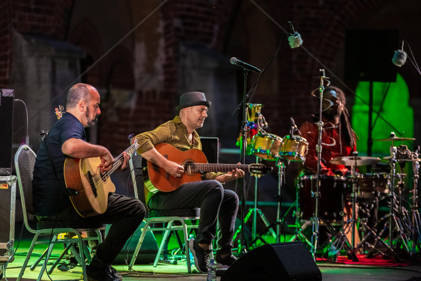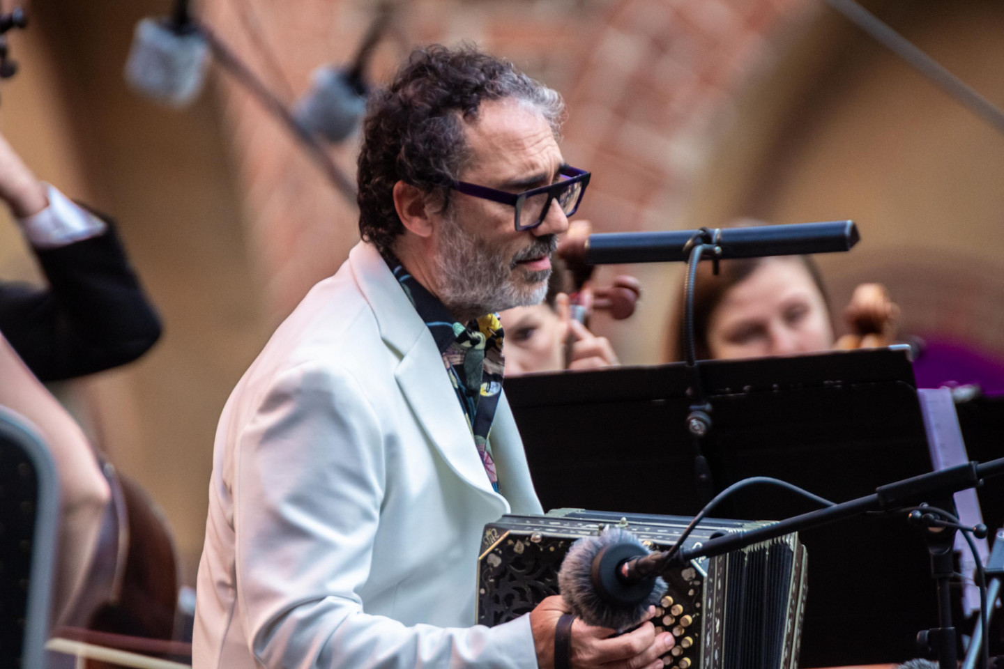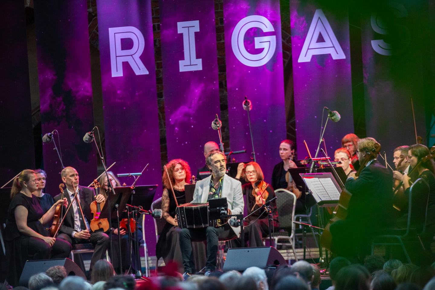 Rīgas Doma dārzā vakar, 4. jūlijā, uzstājās starptautiskā improvizācijas, džeza un globālās mūzikas festivāla "Rīgas ritmi" galvenie viesmākslinieki - Lielbritānijā dzīvojošais itāļu ģitārists Antonio Forčione, itāļu bandoneonists Daniele di Bonaventūra ar kamerorķestri "Sinfonietta Rīga".