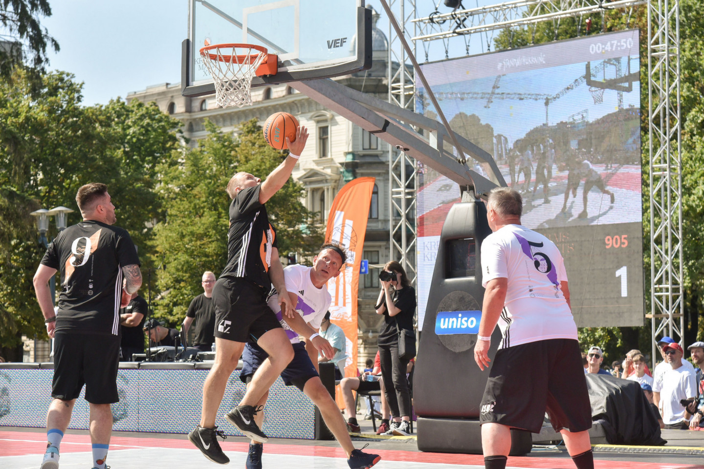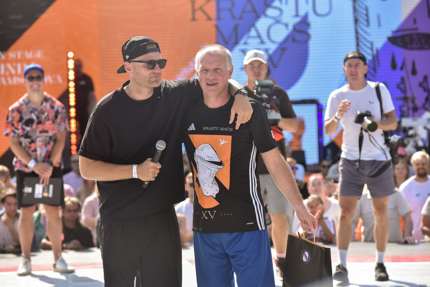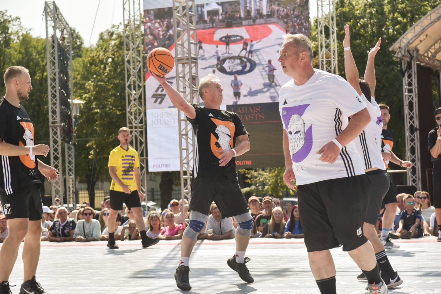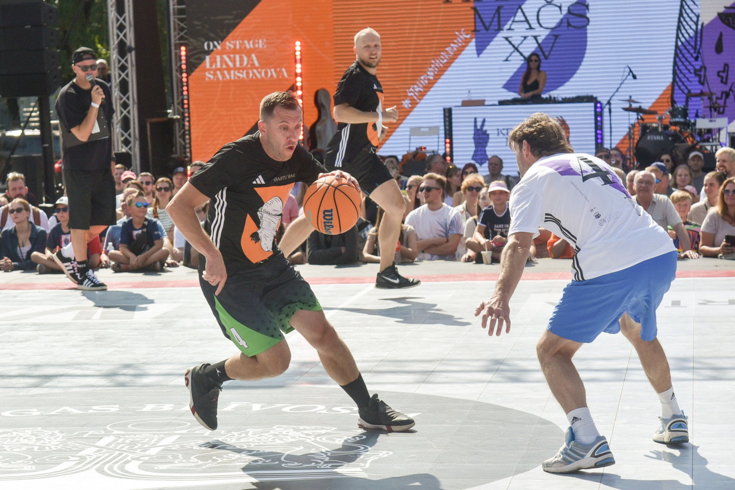 Daugavas kreisā krasta komanda svētdien svinēja uzvaru tradicionālajā diennakts basketbola spēlē "Krastu mačs". Kreisā krasta komanda labā krasta vienību uzvarēja ar 952:938, taču noslēdzošajā mačā ar 34:31 pārāki bija labā krasta basketbolisti, pēdējā sekundē no centra tālmetienu iemetot Latvijas basketbola izlases fiziskās sagatavotības trenerim Oskaram Ernšteinam.