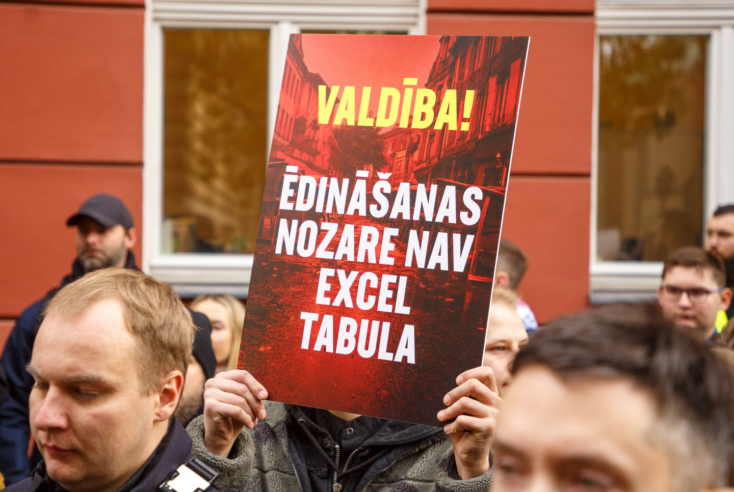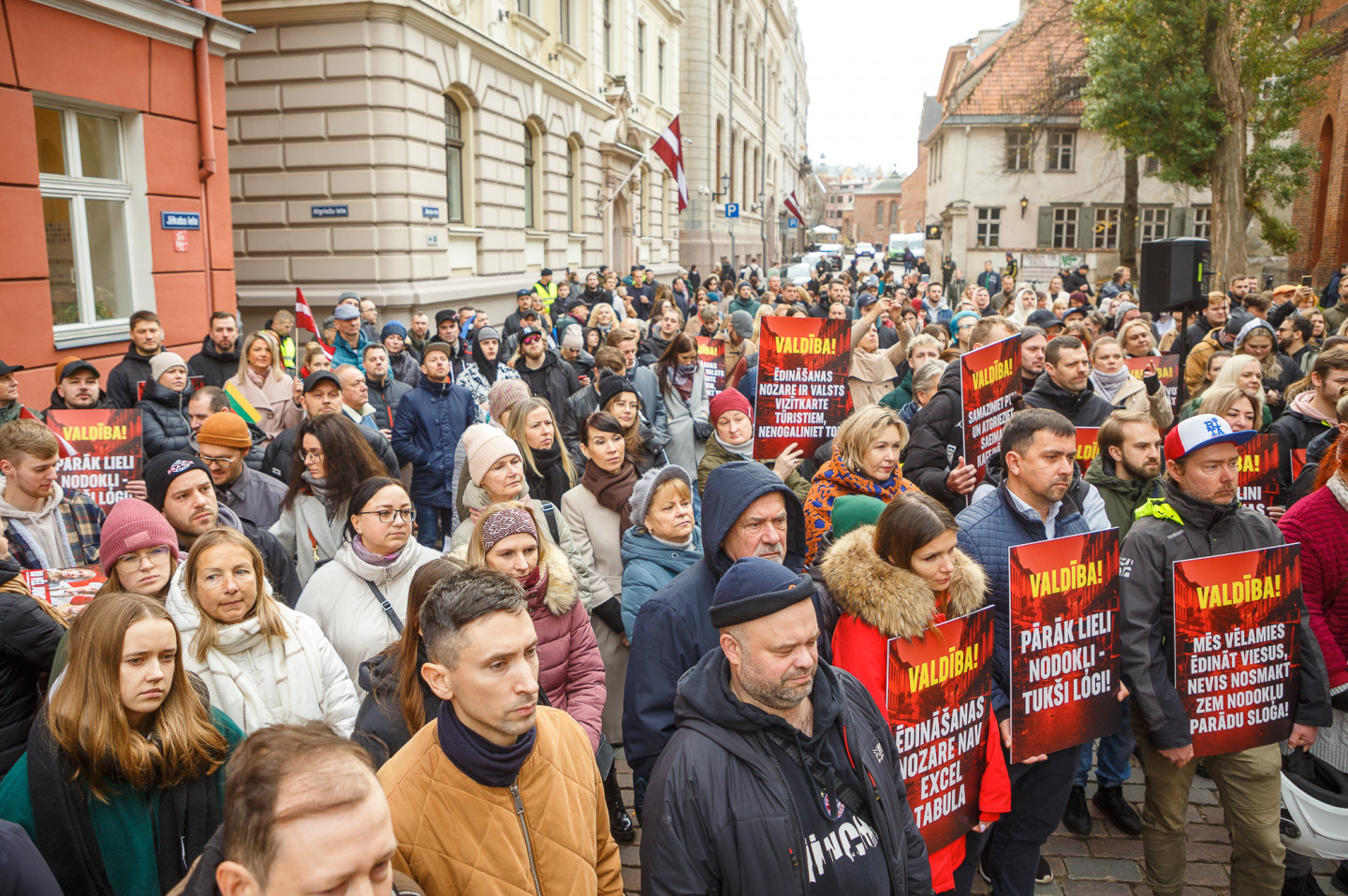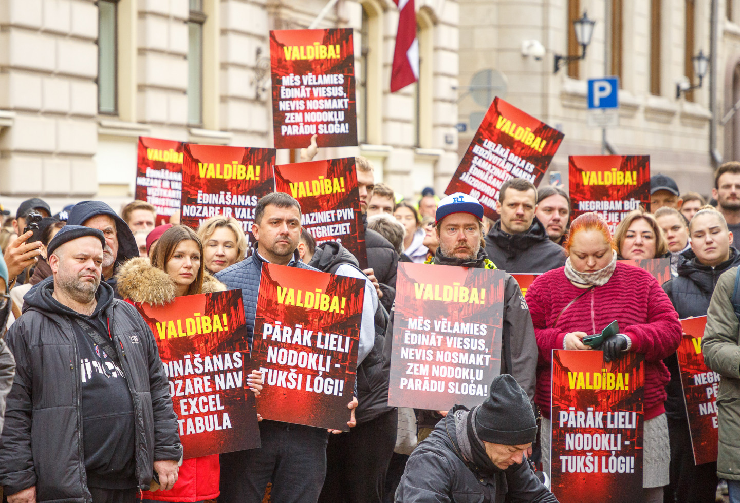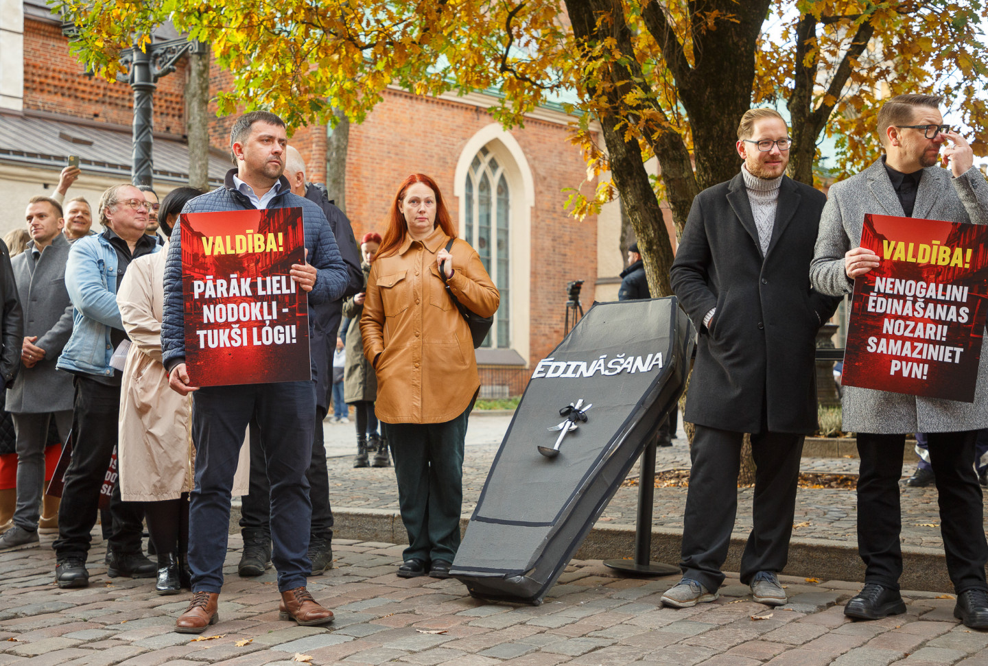 Viesmīlības nozares pārstāvju rīkots pikets pie Saeimas, lai lūgtu sabiedriskās ēdināšanas pakalpojumiem noteikt pievienotās vērtības nodokļa samazināto likmi 12% apmērā.