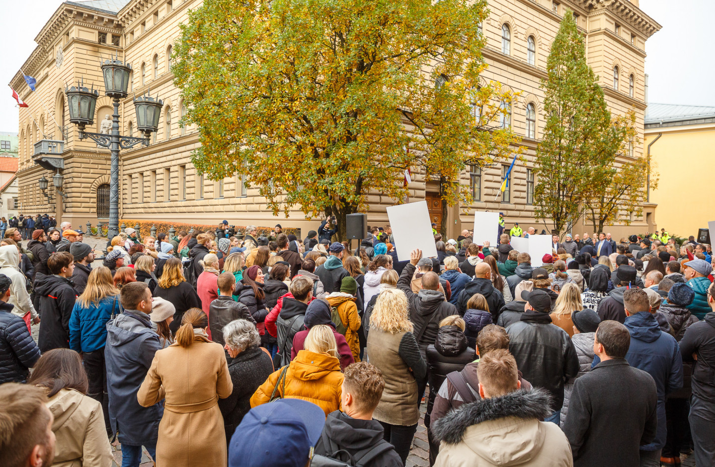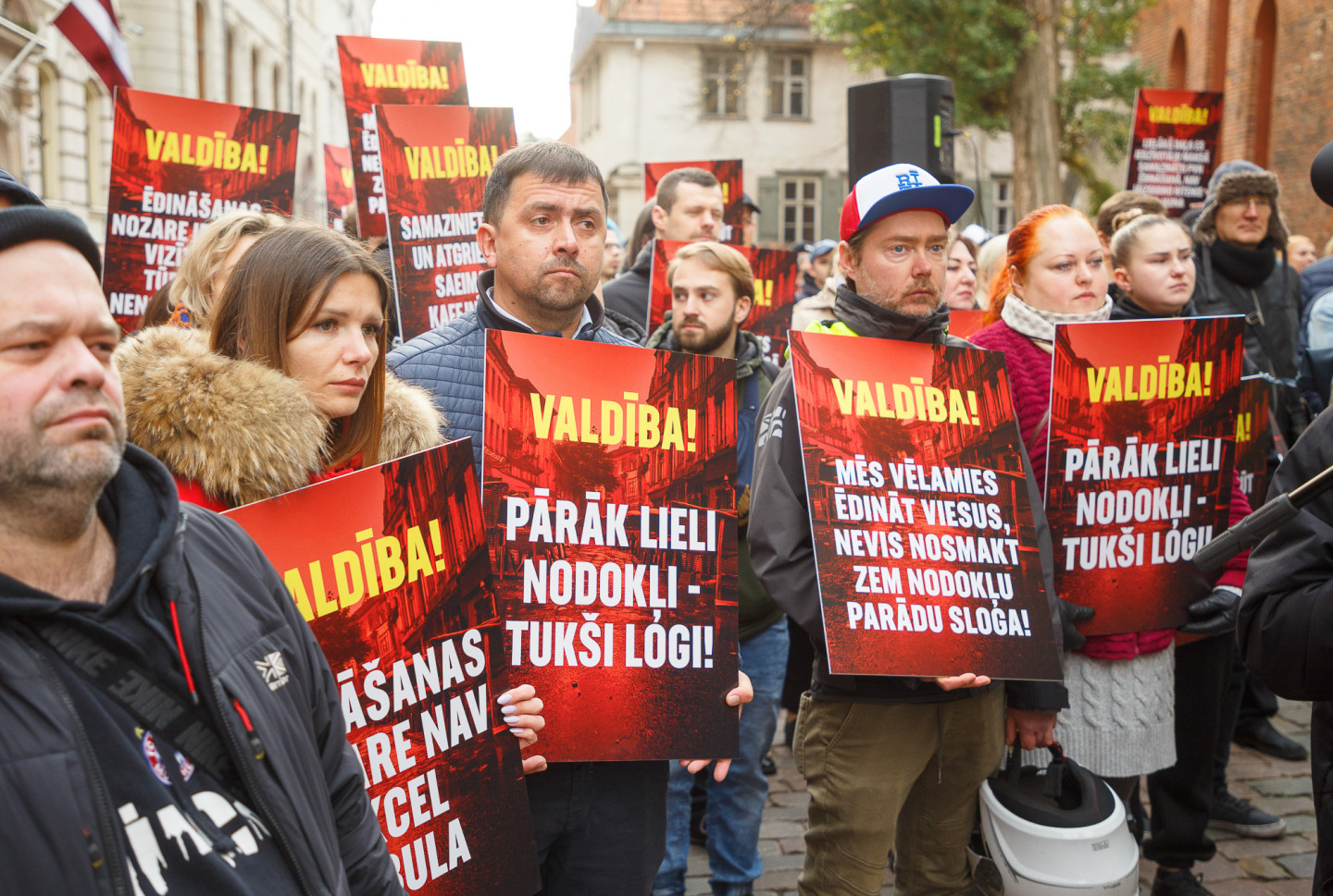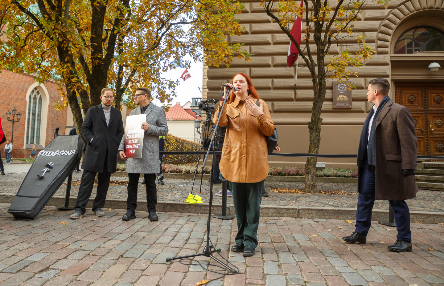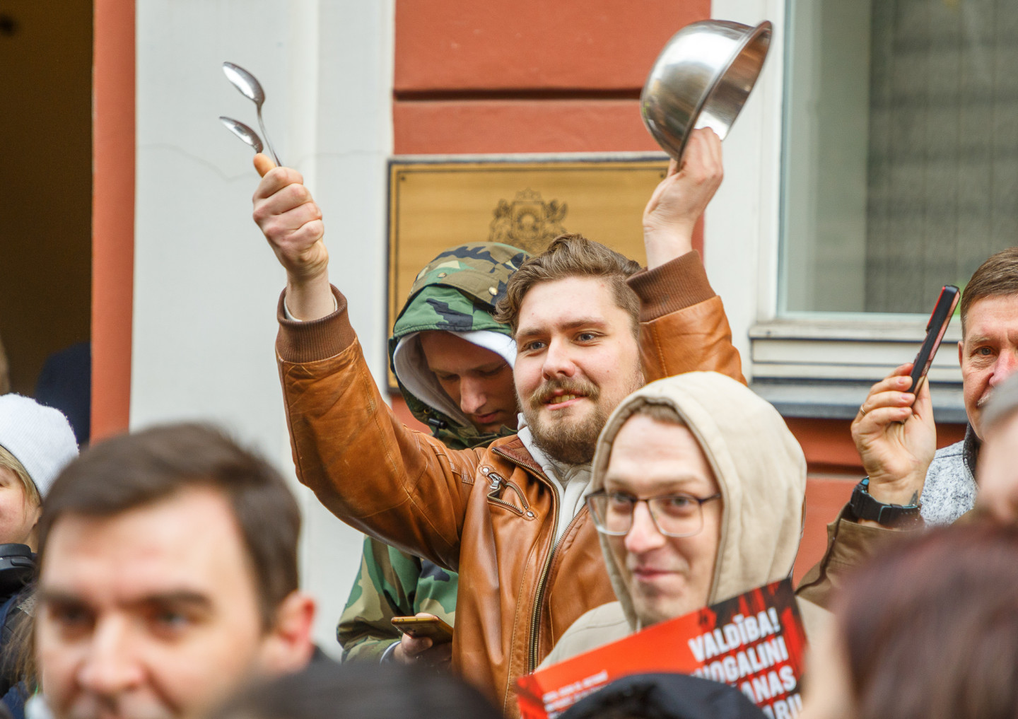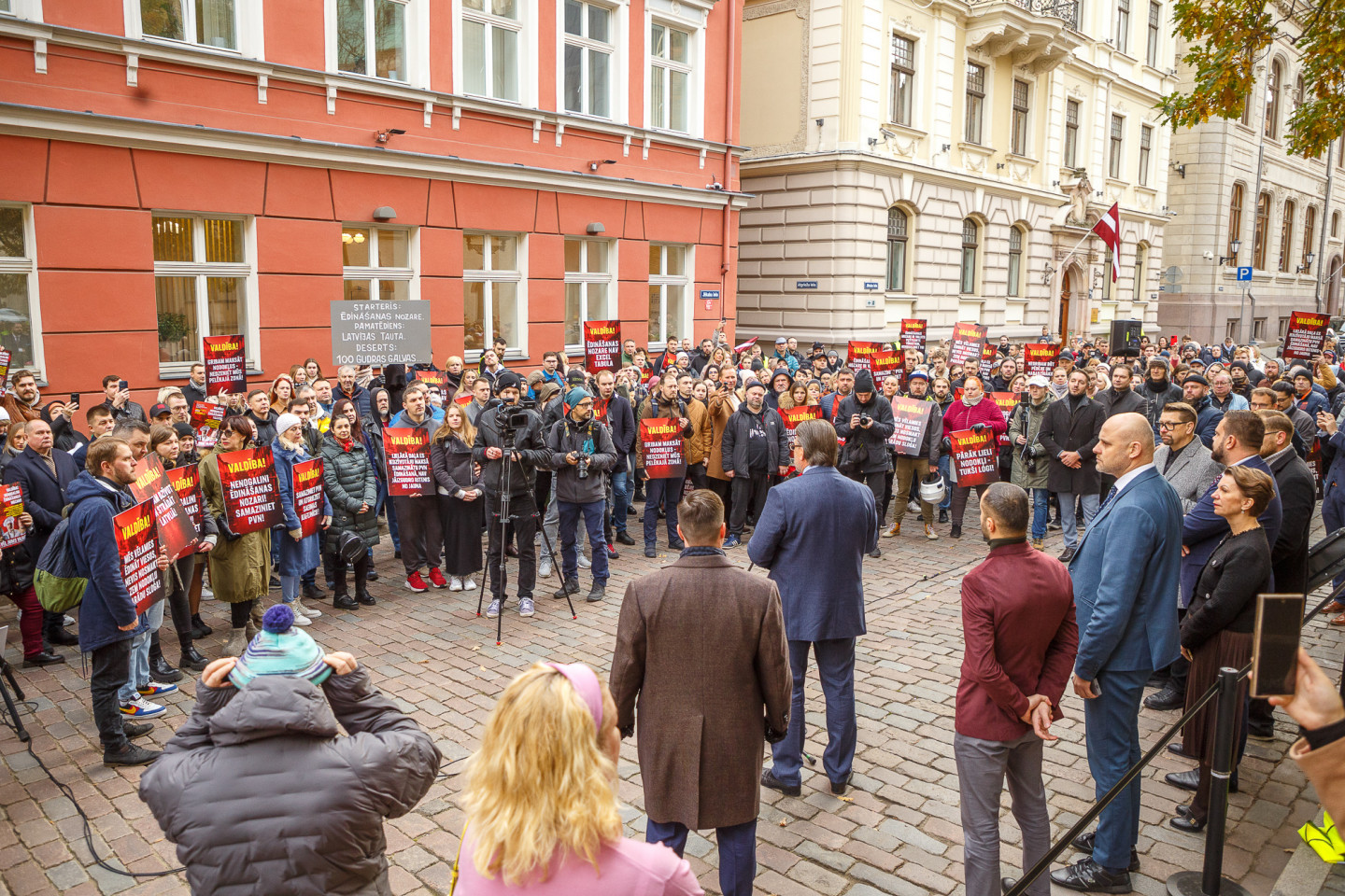 Viesmīlības nozares pārstāvju rīkots pikets pie Saeimas, lai lūgtu sabiedriskās ēdināšanas pakalpojumiem noteikt pievienotās vērtības nodokļa samazināto likmi 12% apmērā.