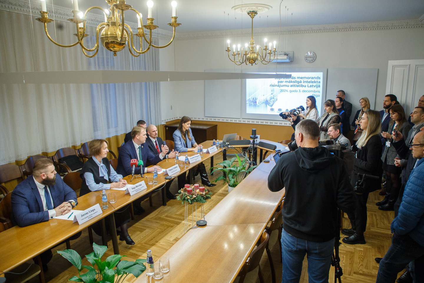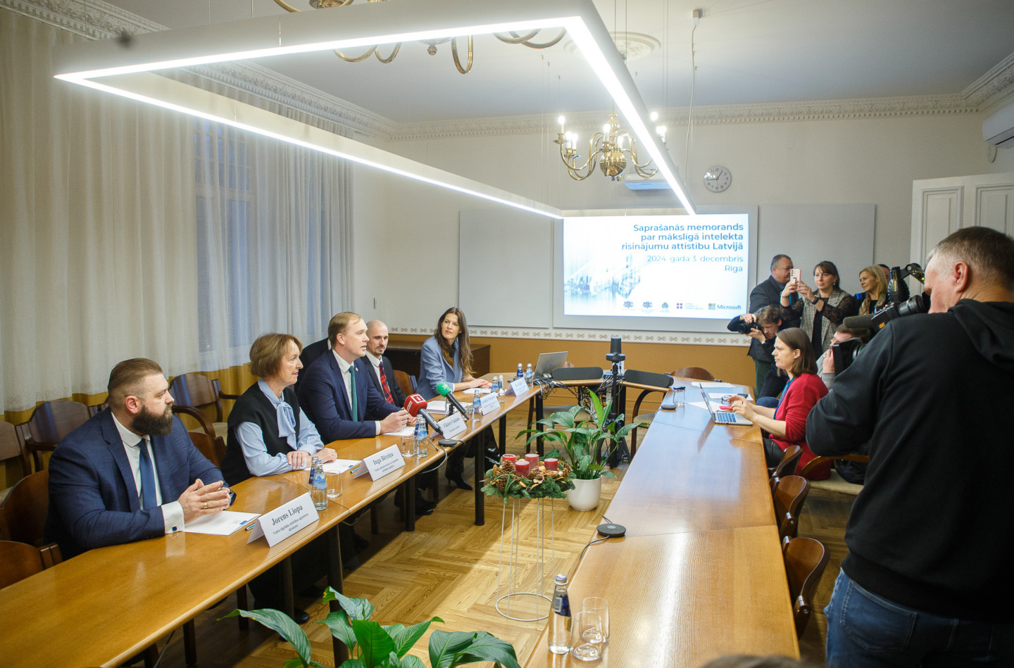 Valsts pārvaldes pārstāvji un uzņēmuma "Microsoft" pārstāvji paraksta saprašanās memorandu, kas paredz sadarbību mākslīgā intelekta izmantošanas jomā.