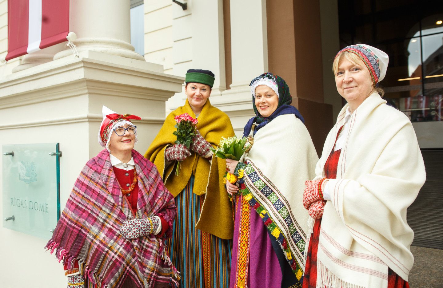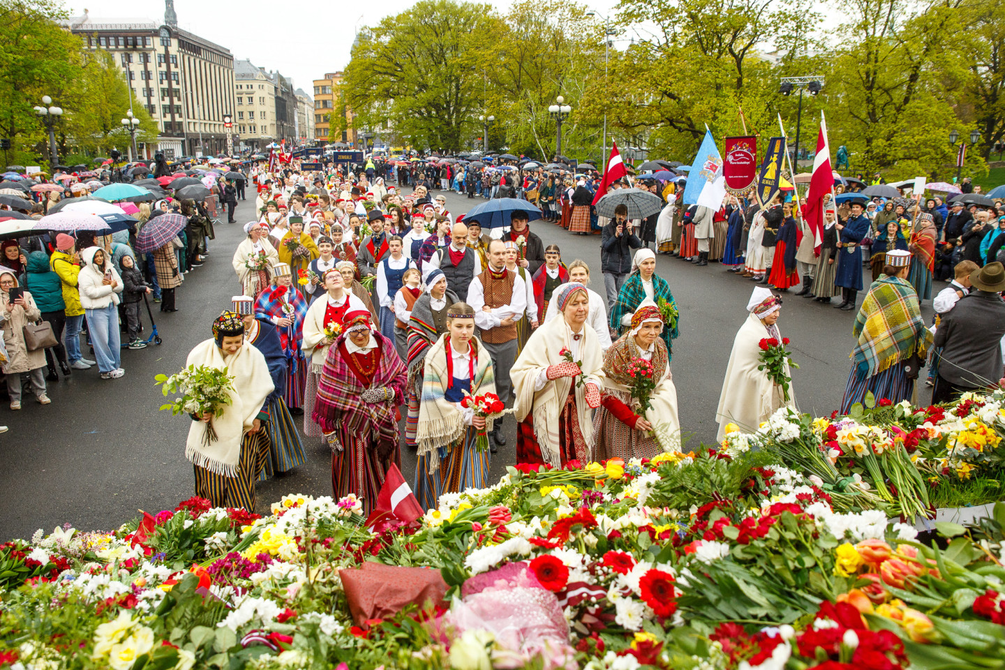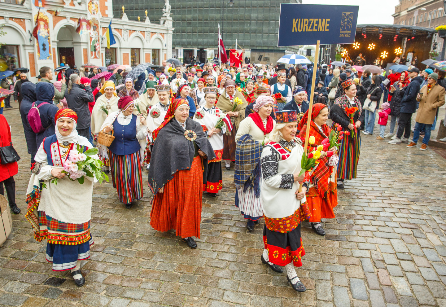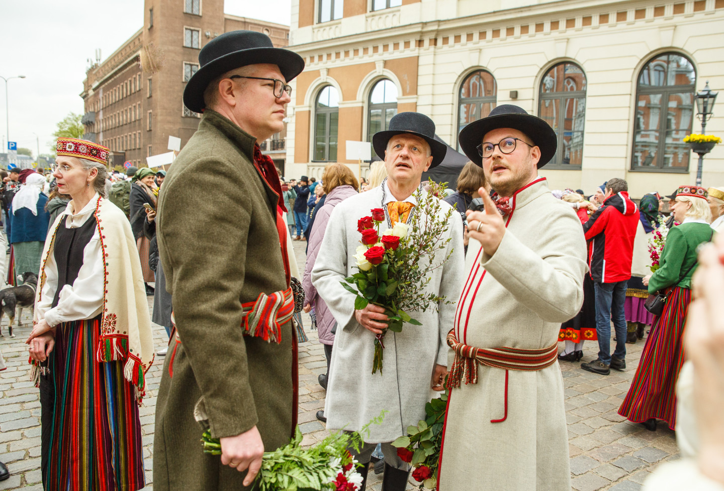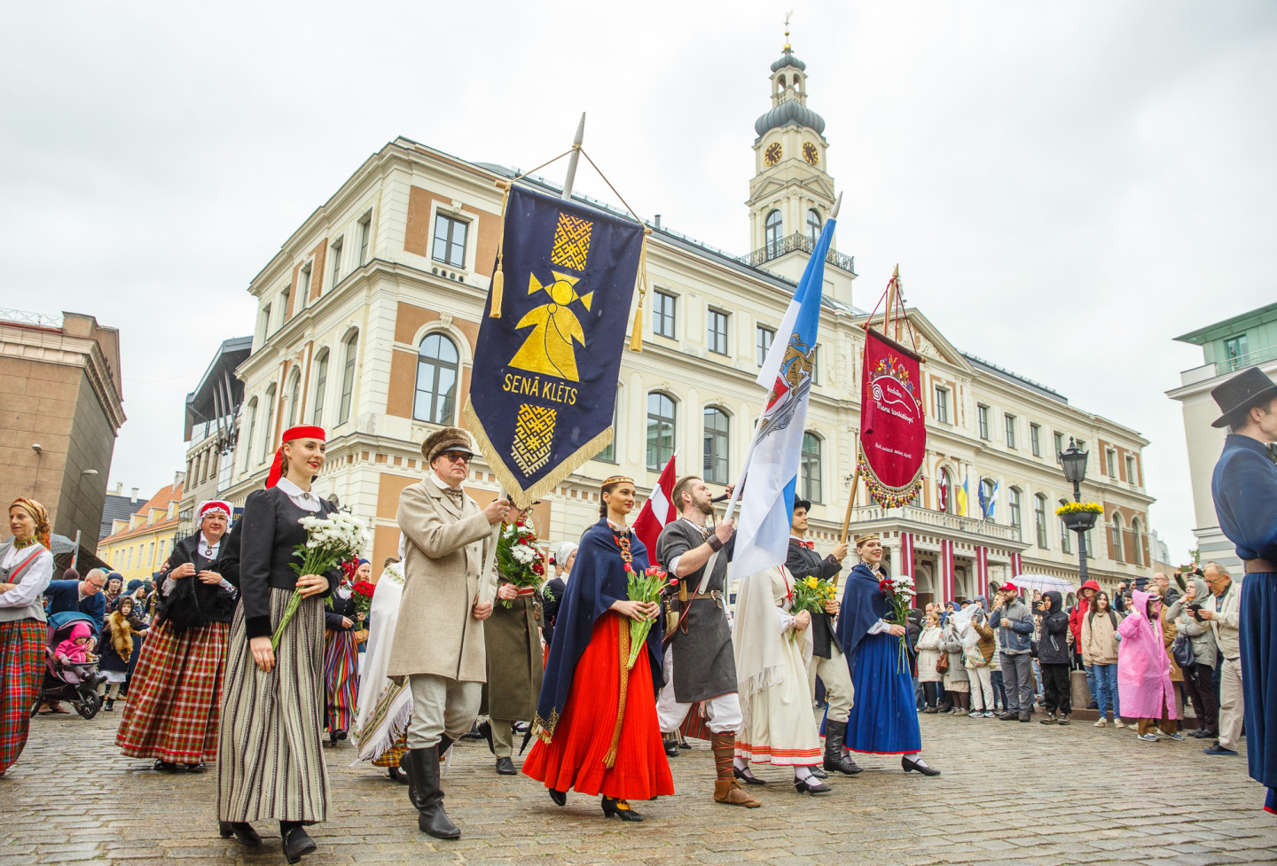 Atzīmējot Latvijas Republikas Neatkarības atjaunošanas 35. gadadienu, Rātslaukumā, Vecrīgā, notiek ikgadējā akcija "Uzvelc tautas tērpu par godu Latvijai!".
