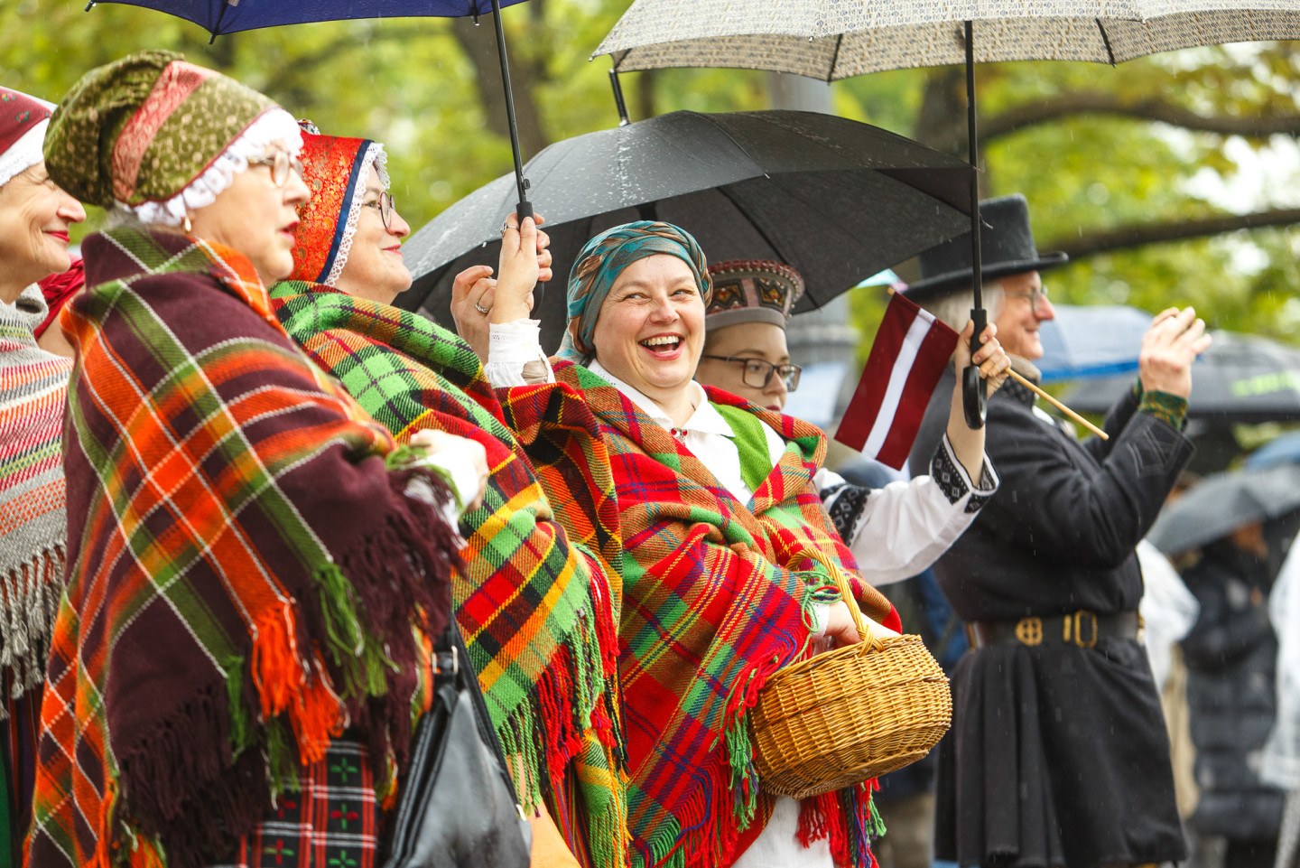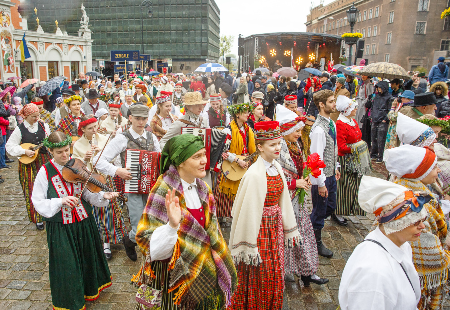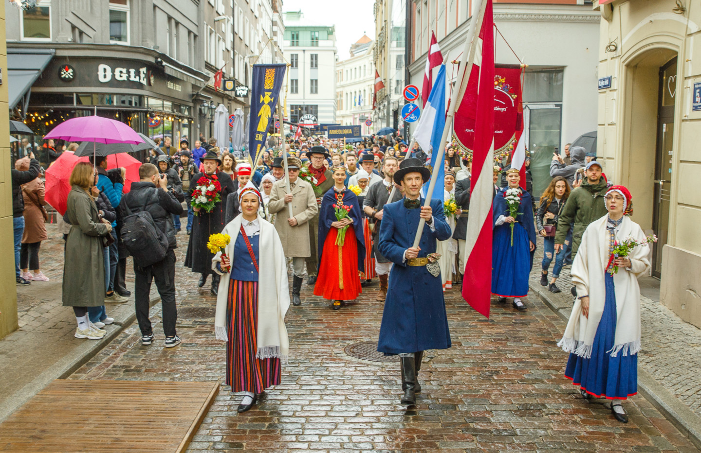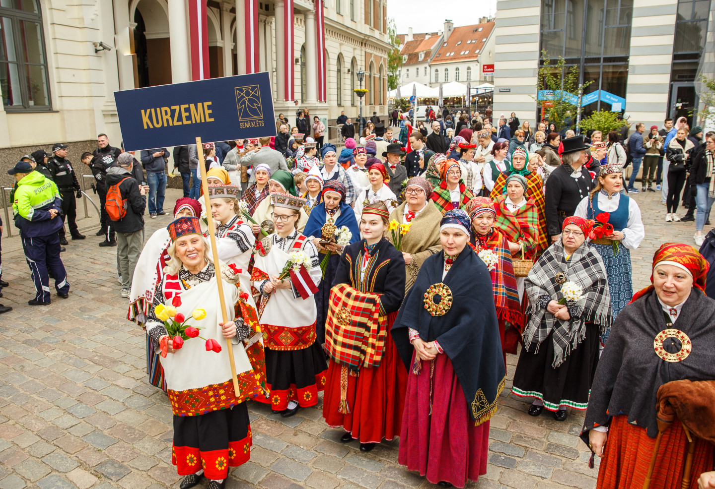 Atzīmējot Latvijas Republikas Neatkarības atjaunošanas 35. gadadienu, Rātslaukumā, Vecrīgā, notiek ikgadējā akcija "Uzvelc tautas tērpu par godu Latvijai!".