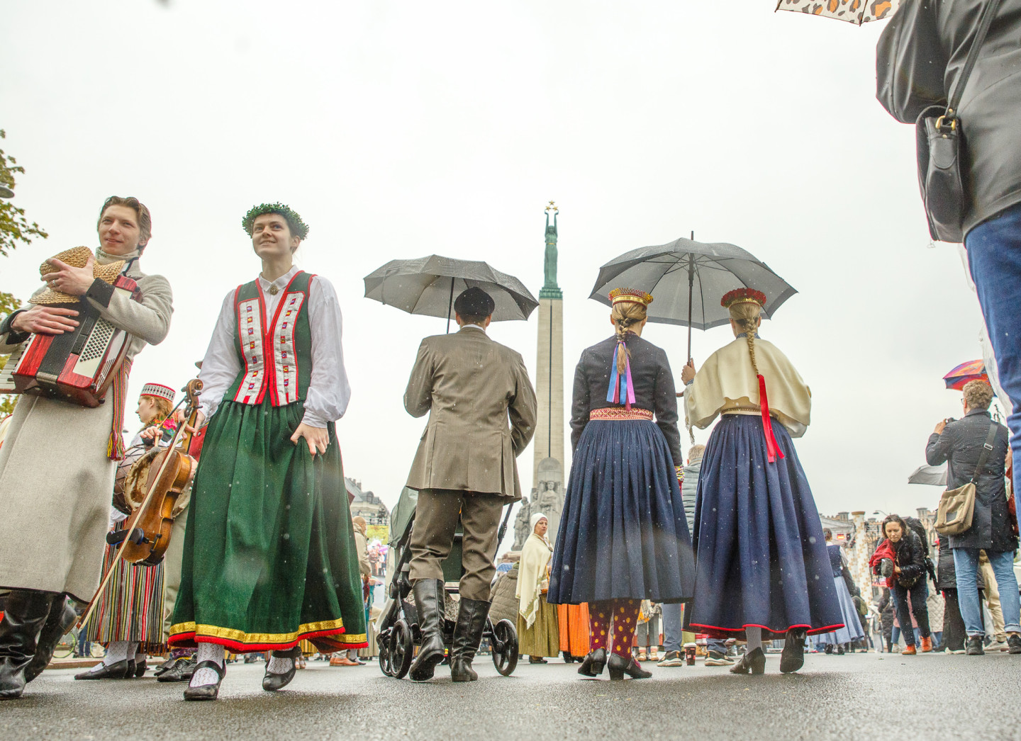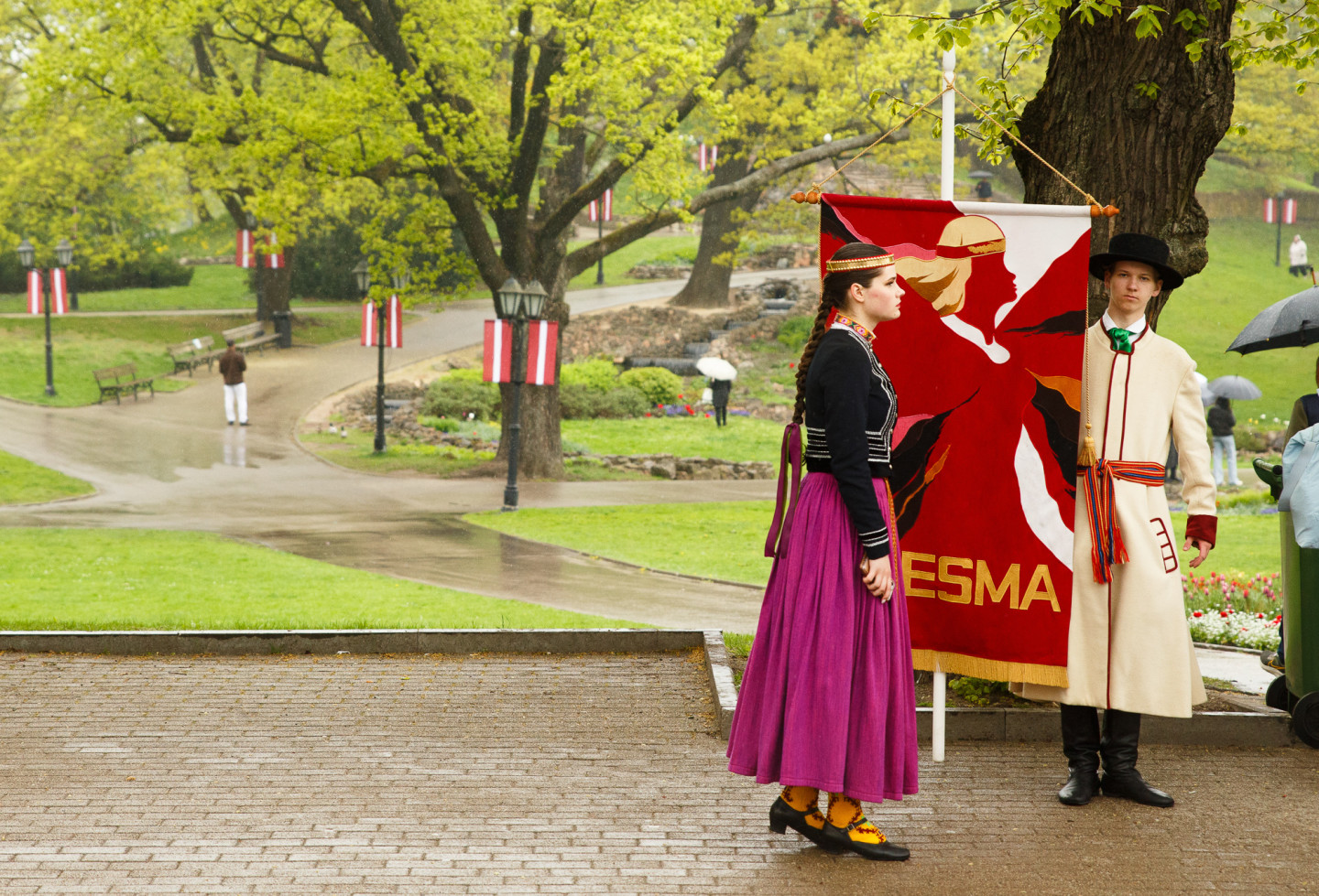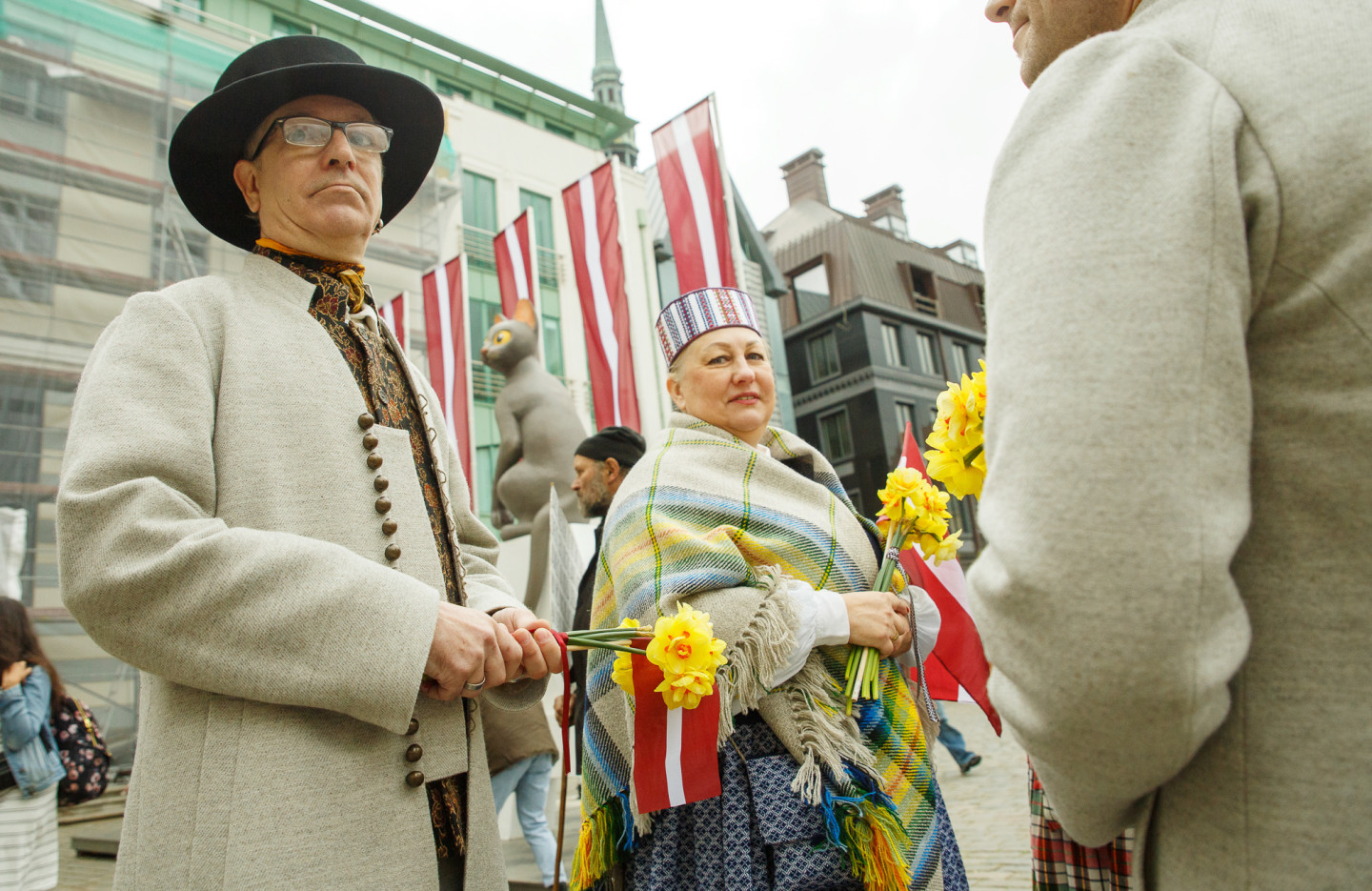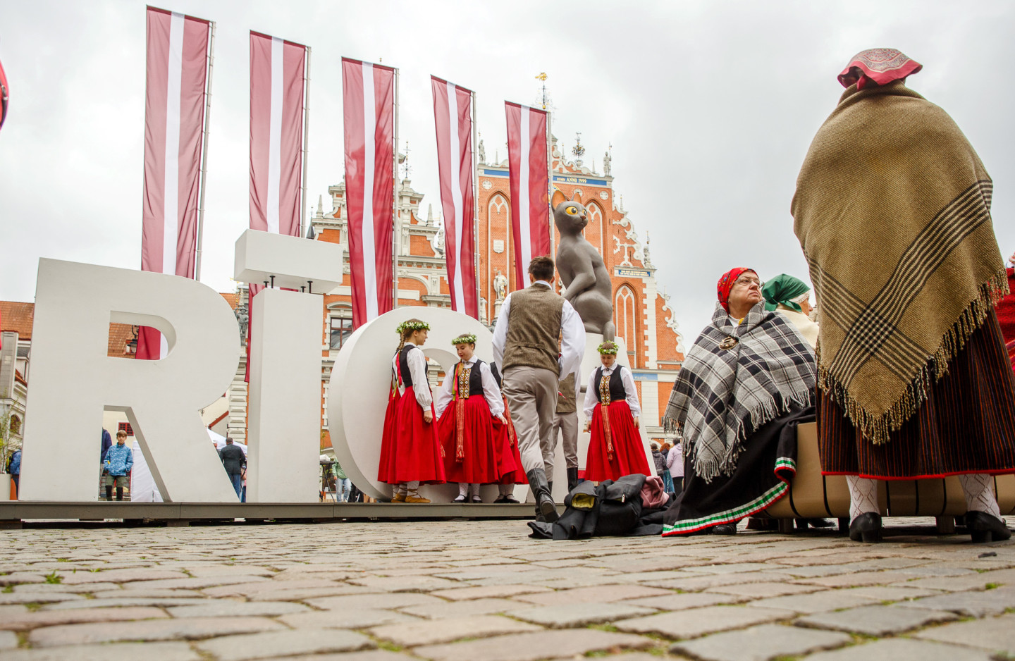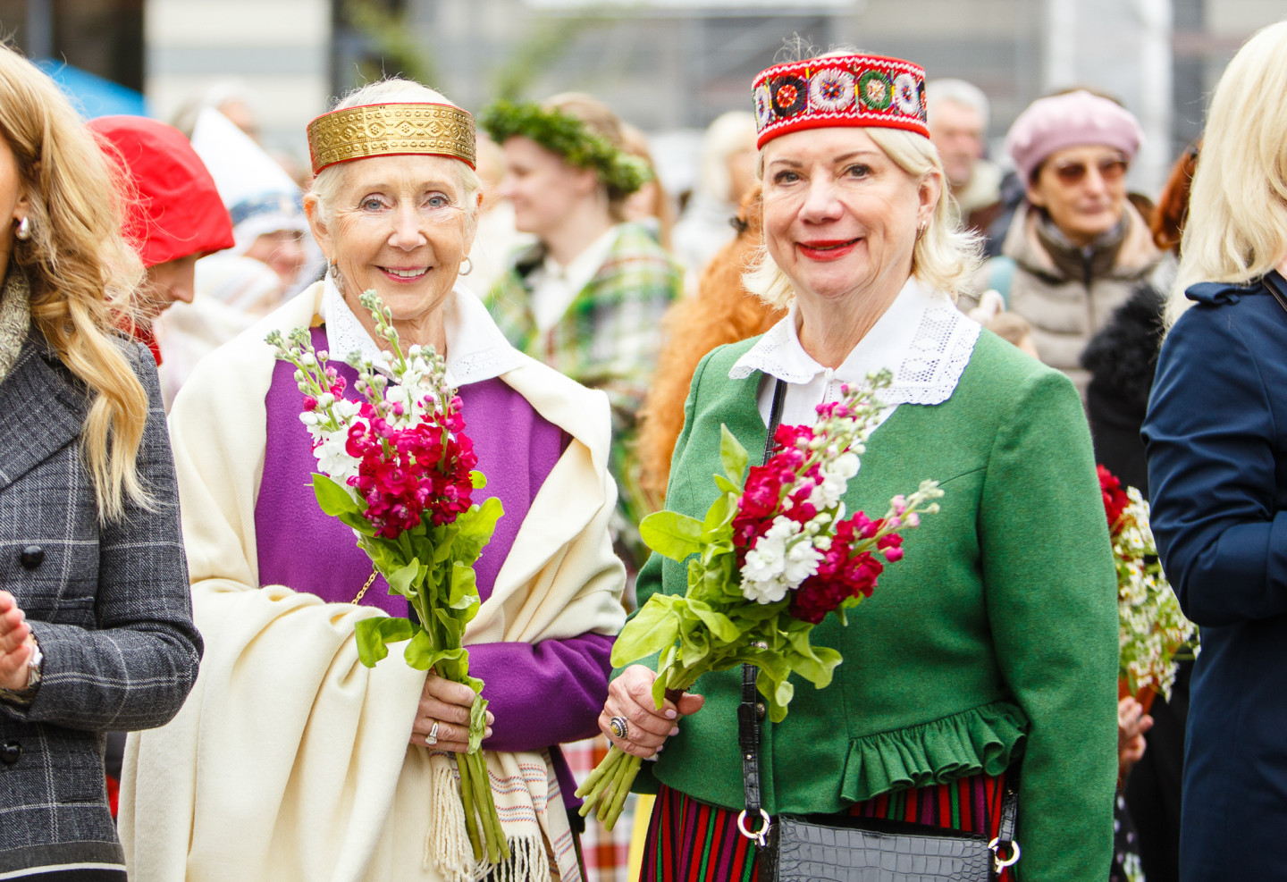 Atzīmējot Latvijas Republikas Neatkarības atjaunošanas 35. gadadienu, Rātslaukumā, Vecrīgā, notiek ikgadējā akcija "Uzvelc tautas tērpu par godu Latvijai!".