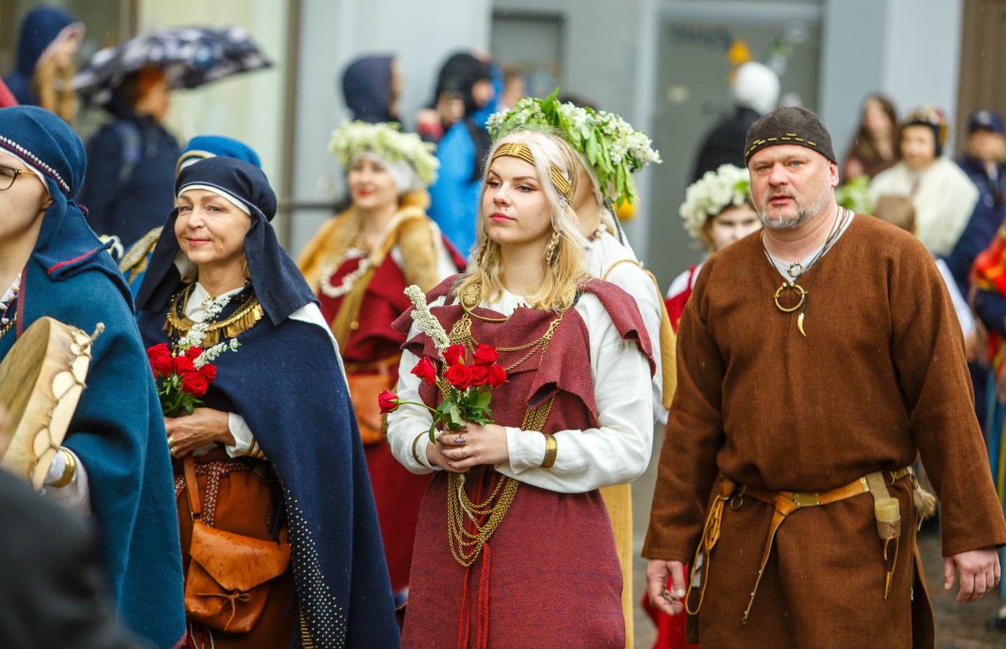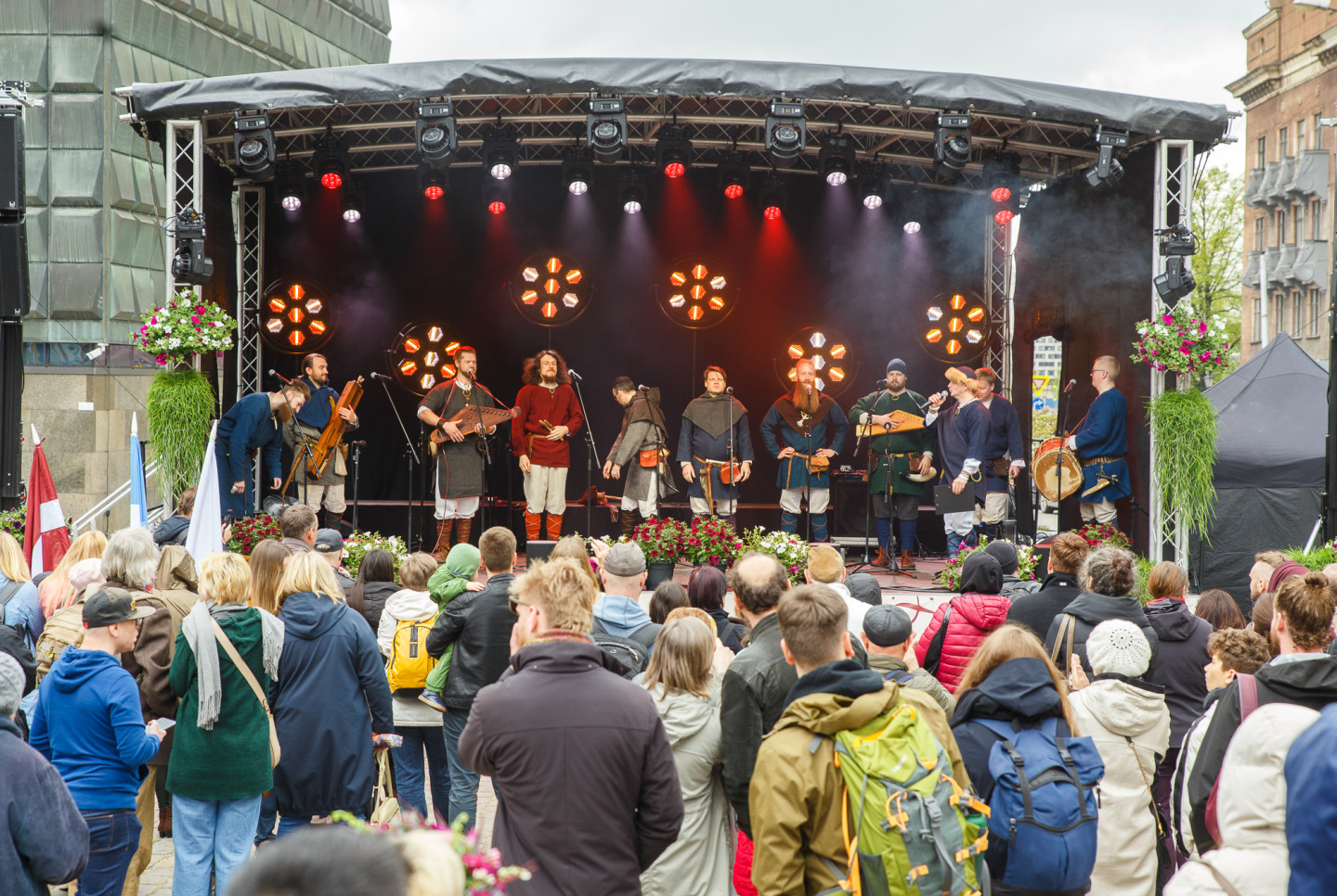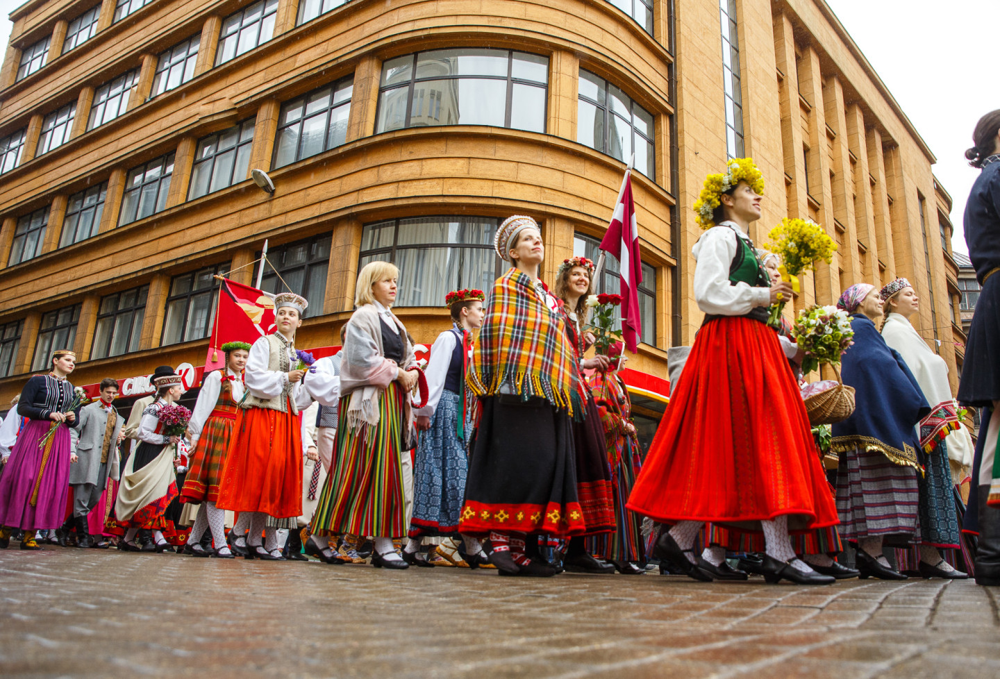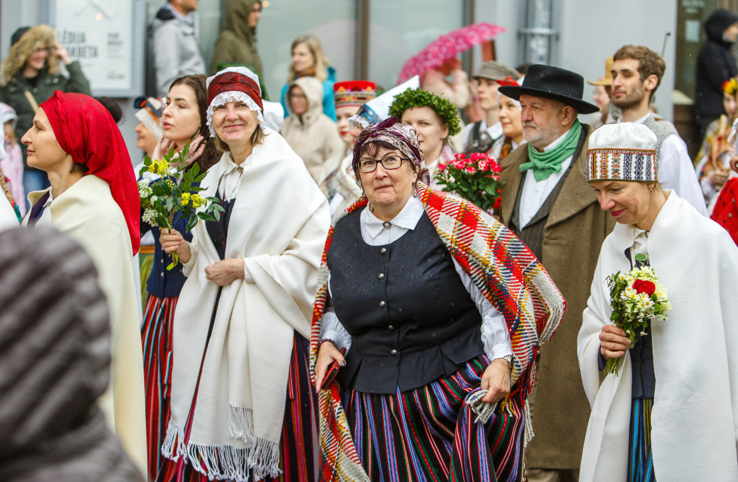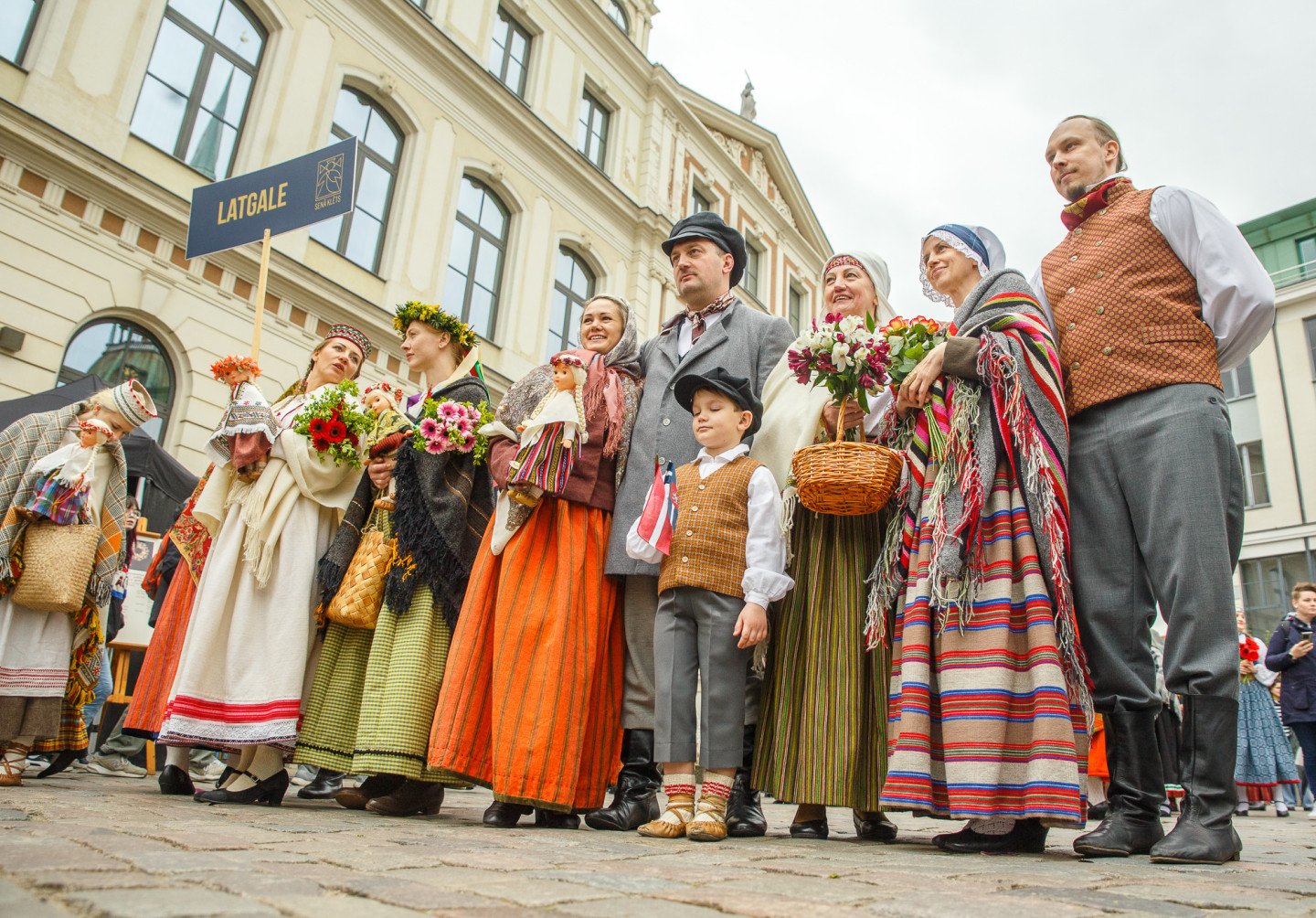 Atzīmējot Latvijas Republikas Neatkarības atjaunošanas 35. gadadienu, Rātslaukumā, Vecrīgā, notiek ikgadējā akcija "Uzvelc tautas tērpu par godu Latvijai!".