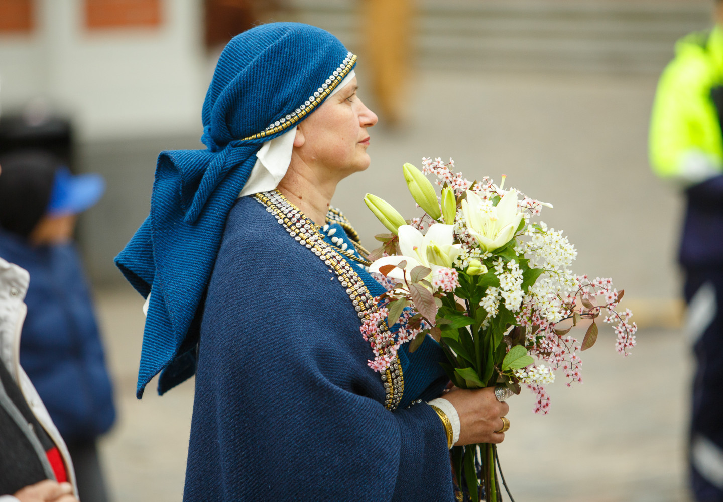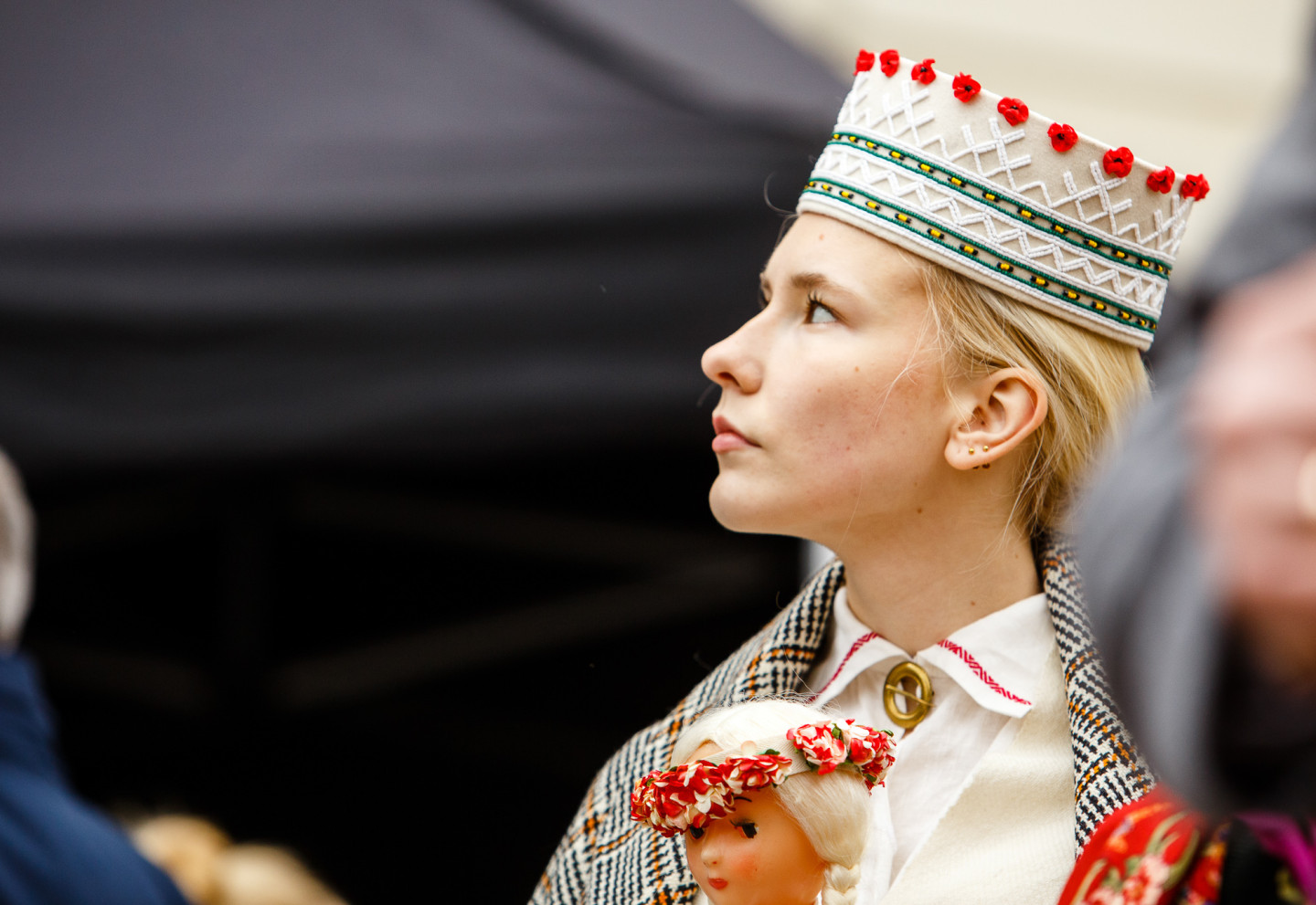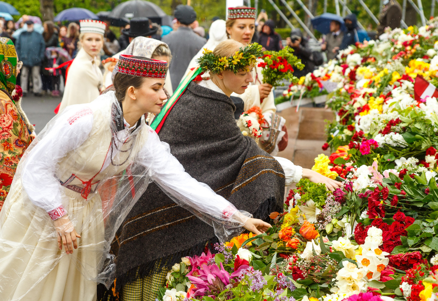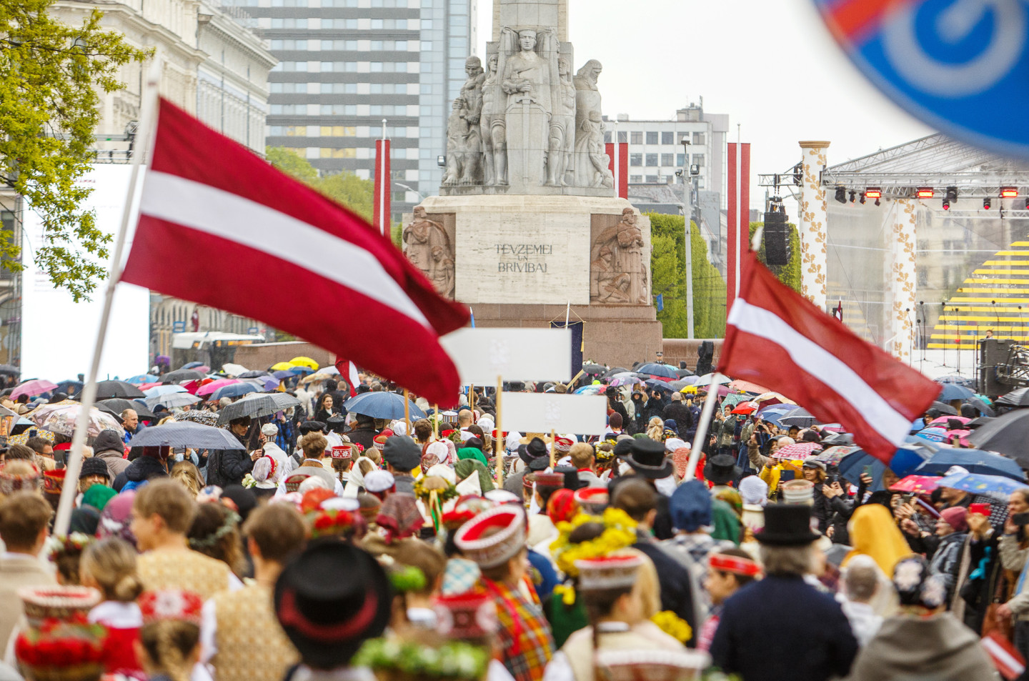 Atzīmējot Latvijas Republikas Neatkarības atjaunošanas 35. gadadienu, Rātslaukumā, Vecrīgā, notiek ikgadējā akcija "Uzvelc tautas tērpu par godu Latvijai!".