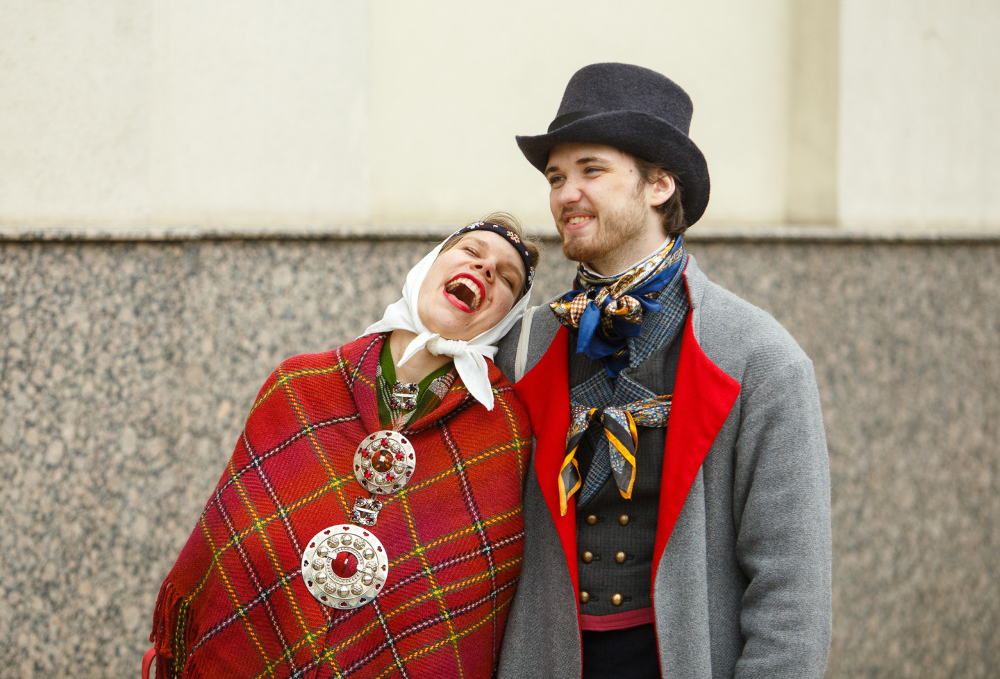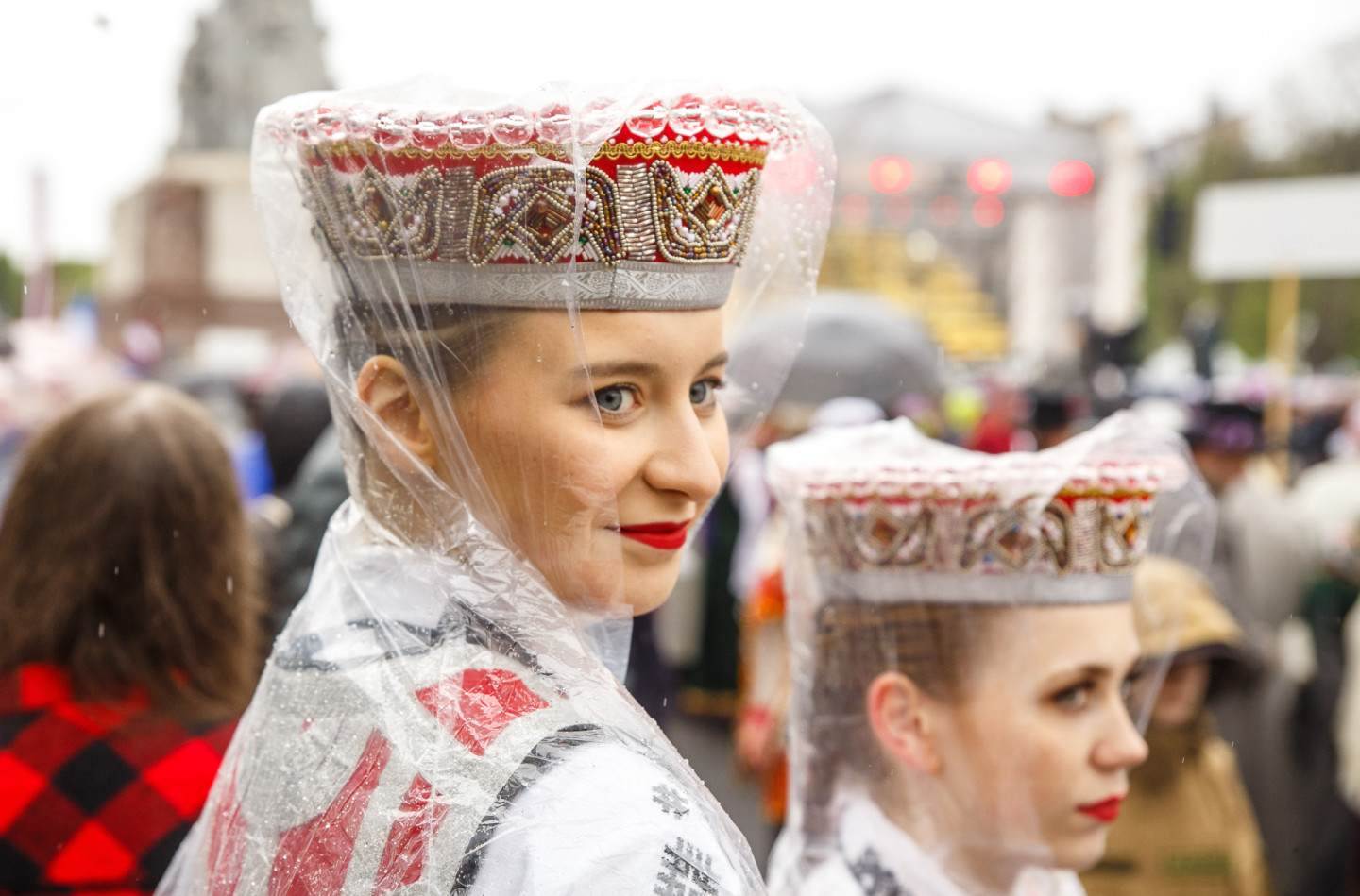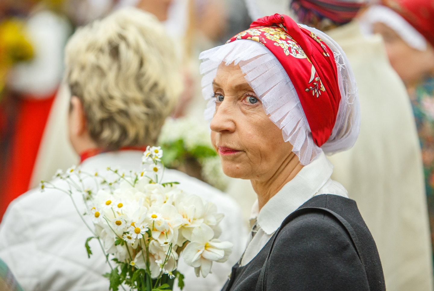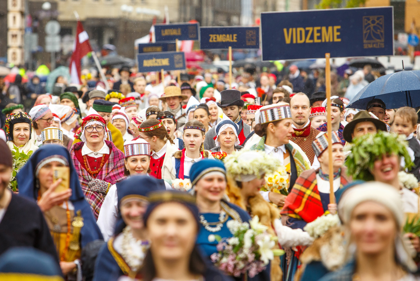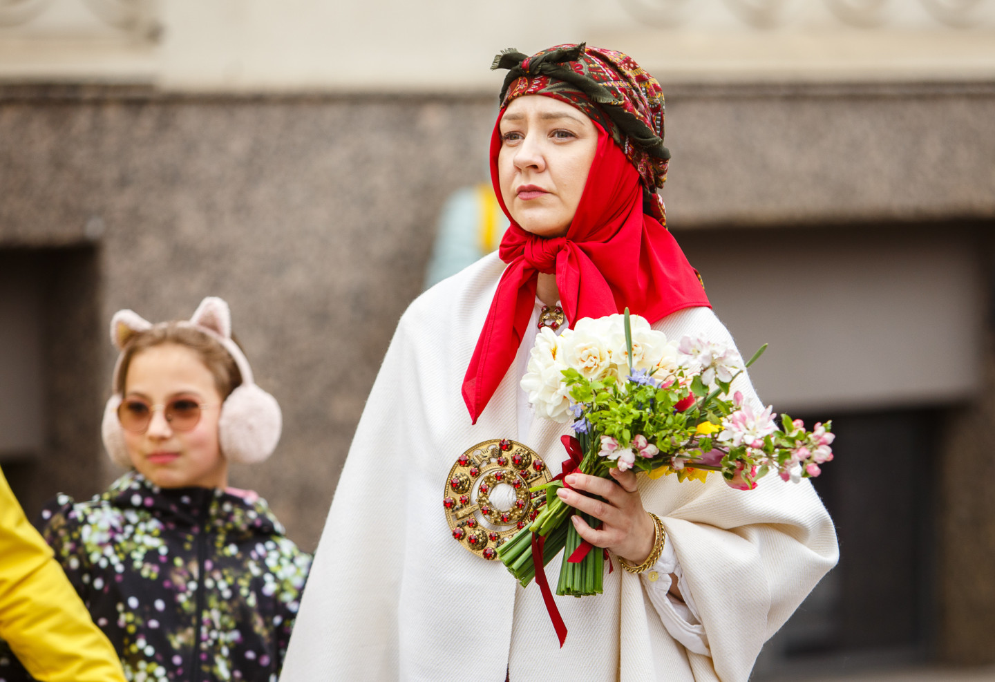 Atzīmējot Latvijas Republikas Neatkarības atjaunošanas 35. gadadienu, Rātslaukumā, Vecrīgā, notiek ikgadējā akcija "Uzvelc tautas tērpu par godu Latvijai!".
