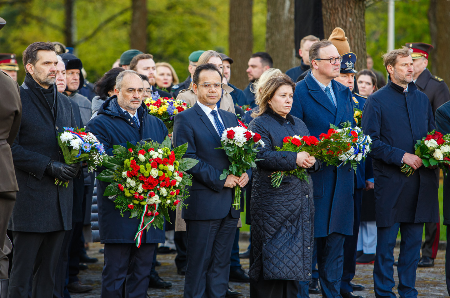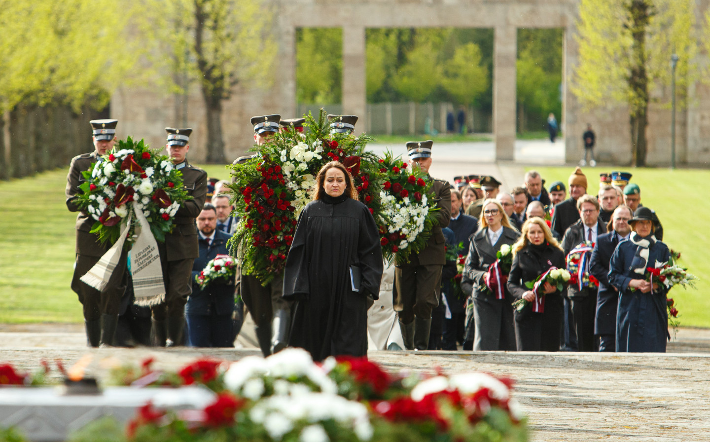 Valsts augstākās amatpersonas godina Nacisma sagrāves un Otrā pasaules kara upuru piemiņu