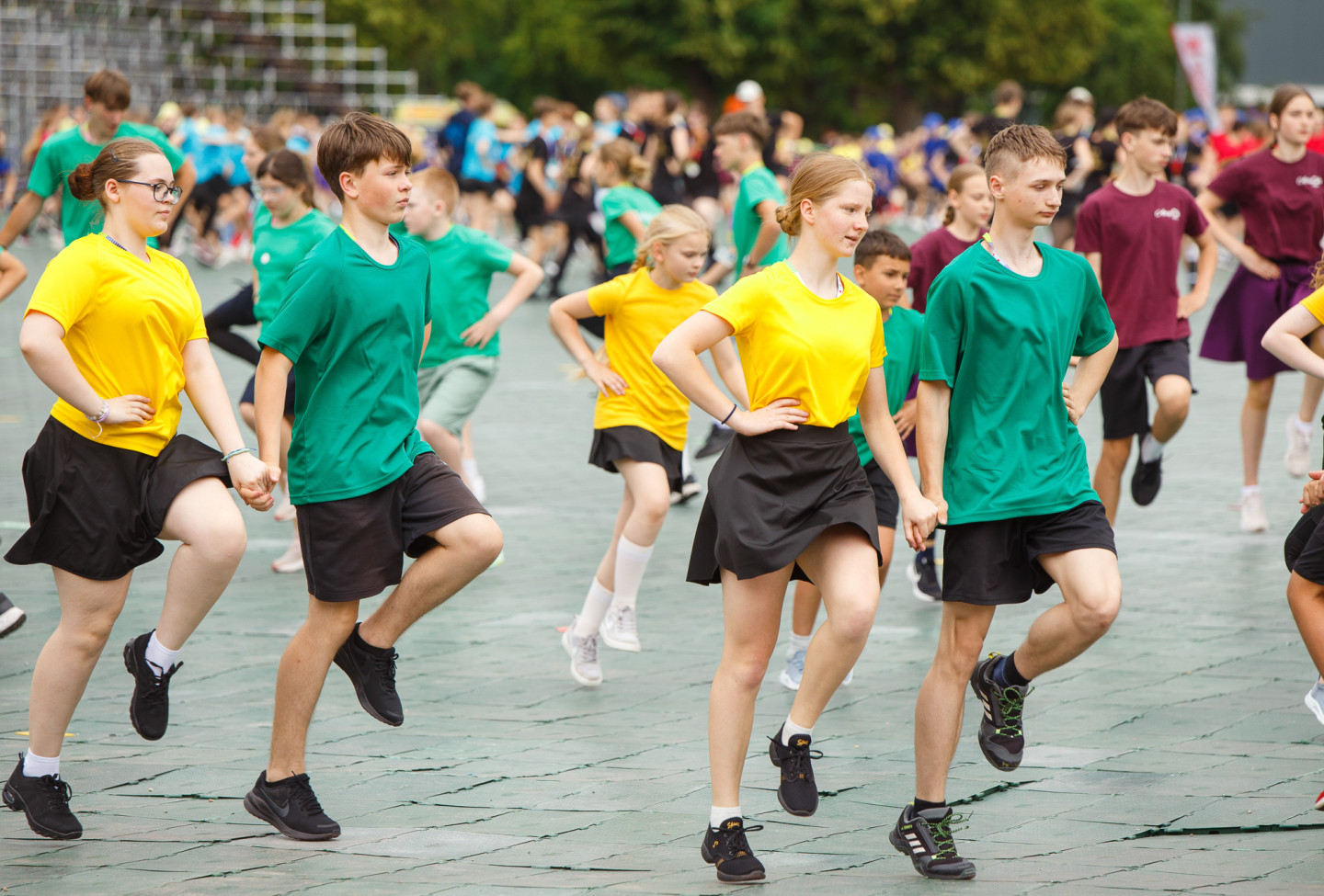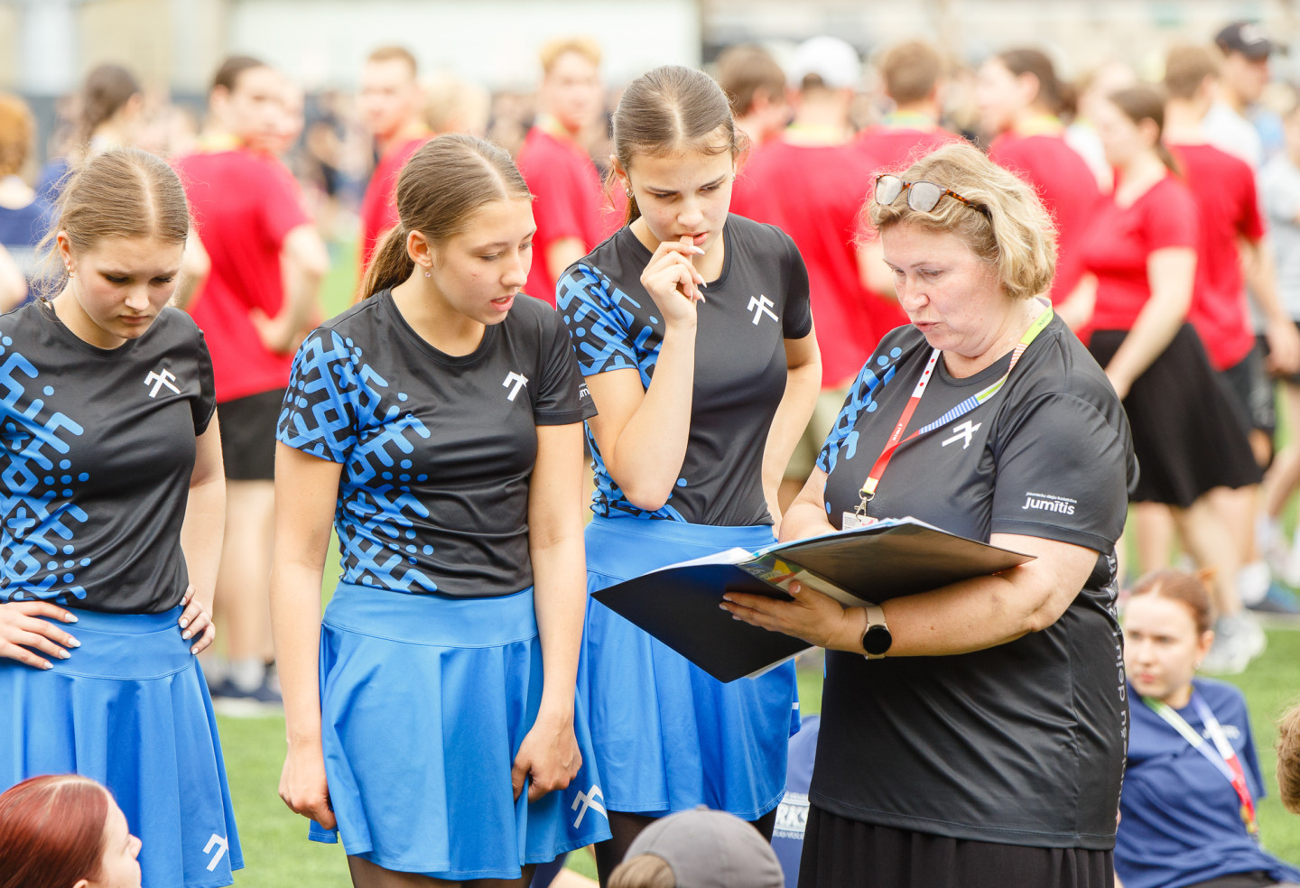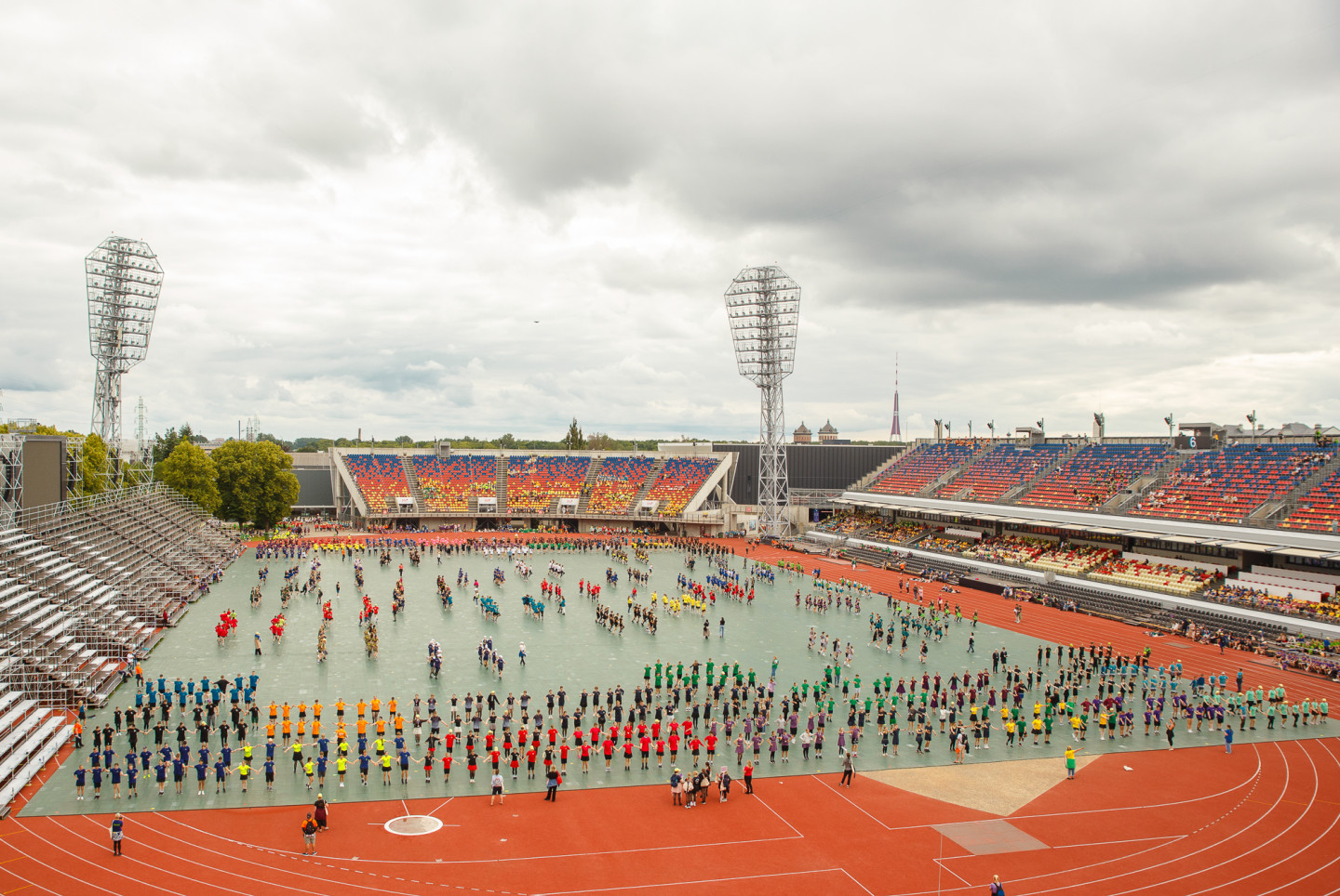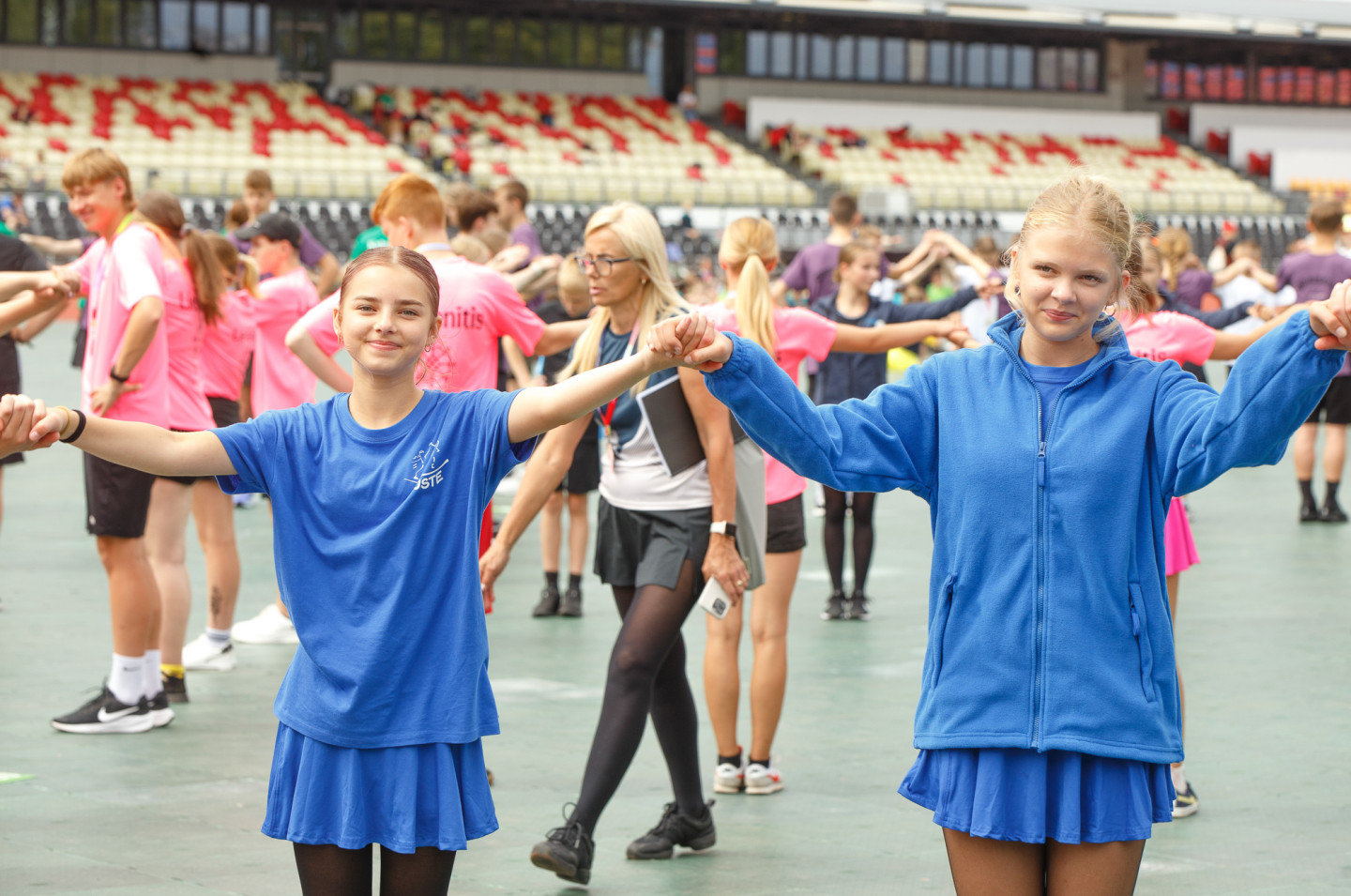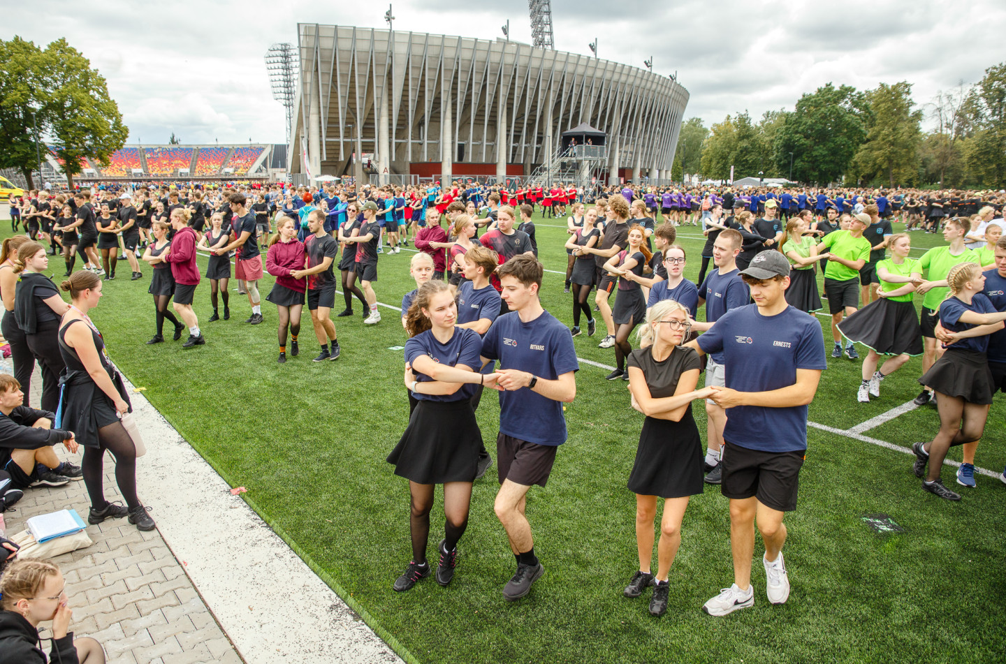 XIII Latvijas Skolu jaunatnes dziesmu un deju svētku Deju lielkoncerta mēģinājums Daugavas stadionā.