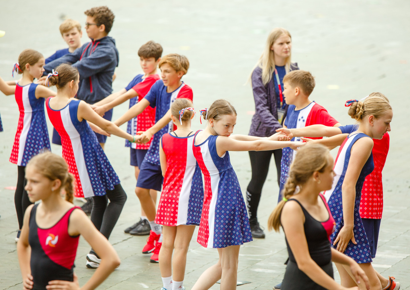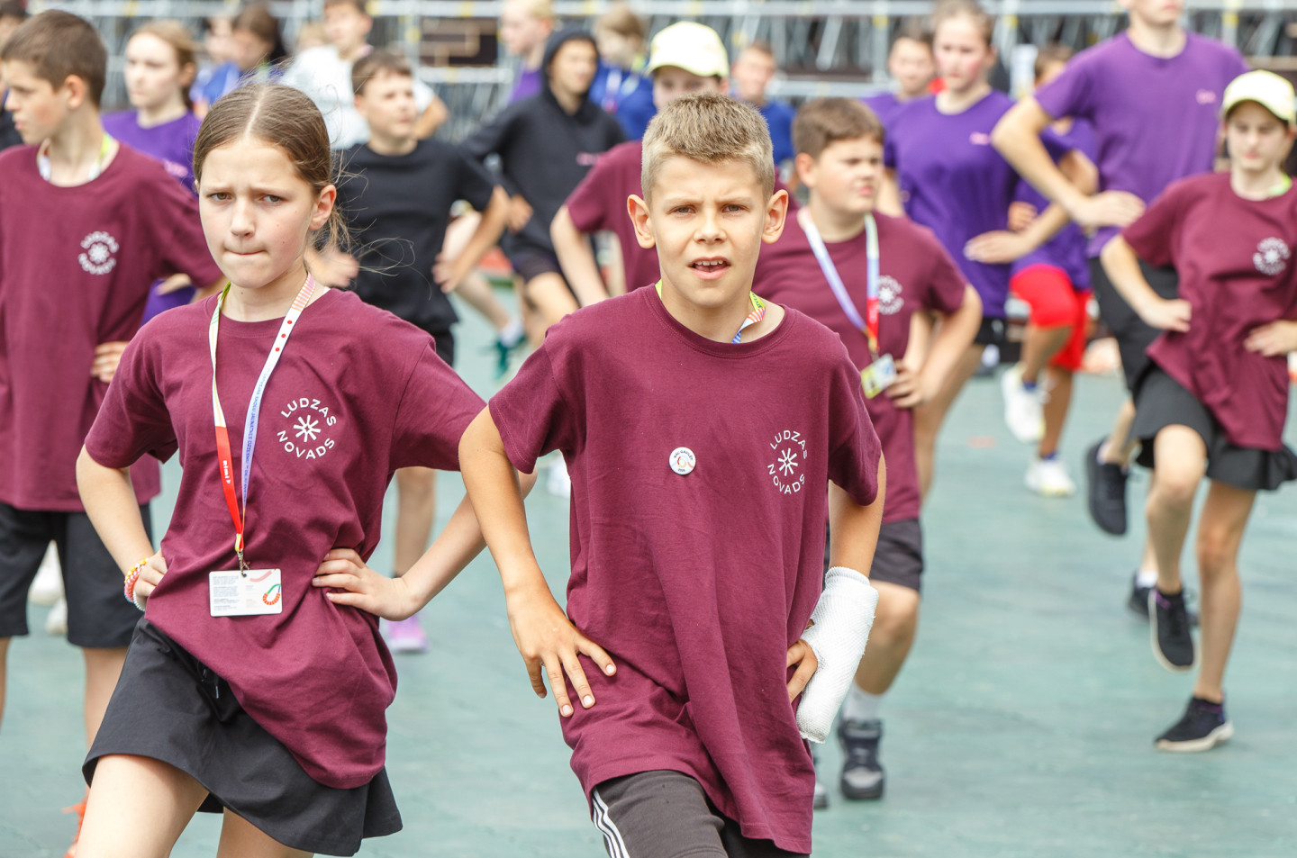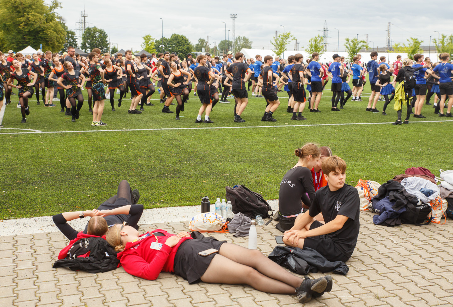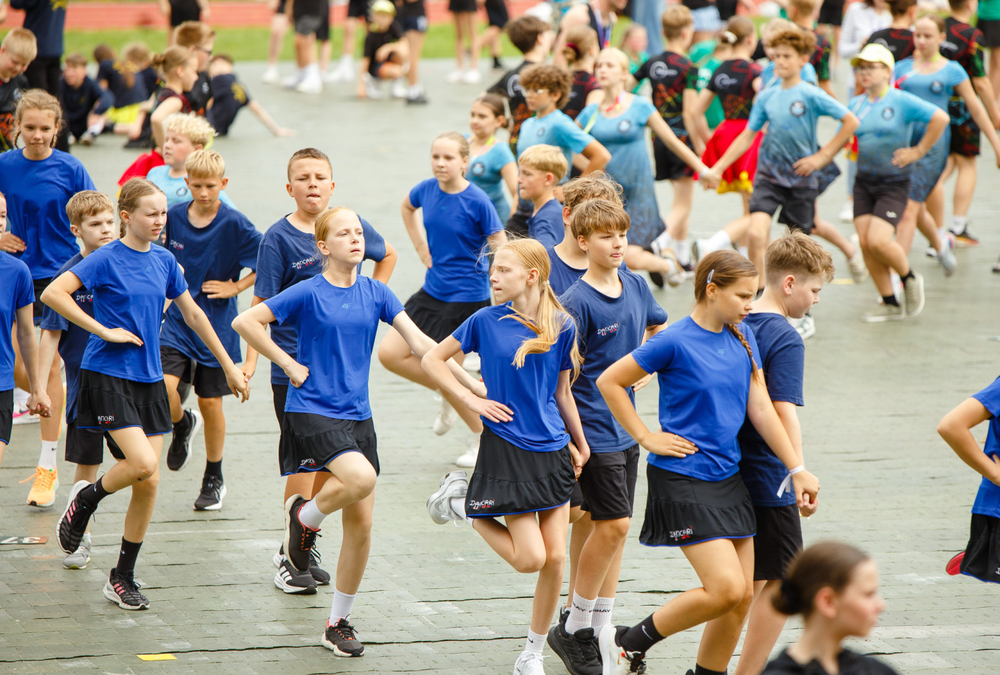 XIII Latvijas Skolu jaunatnes dziesmu un deju svētku Deju lielkoncerta mēģinājums Daugavas stadionā.