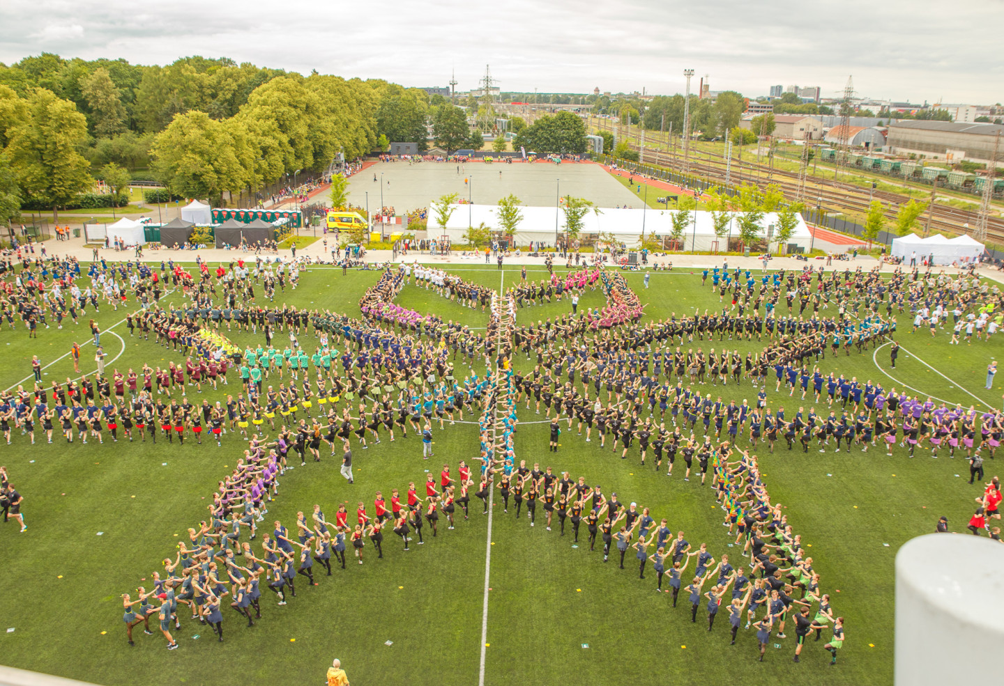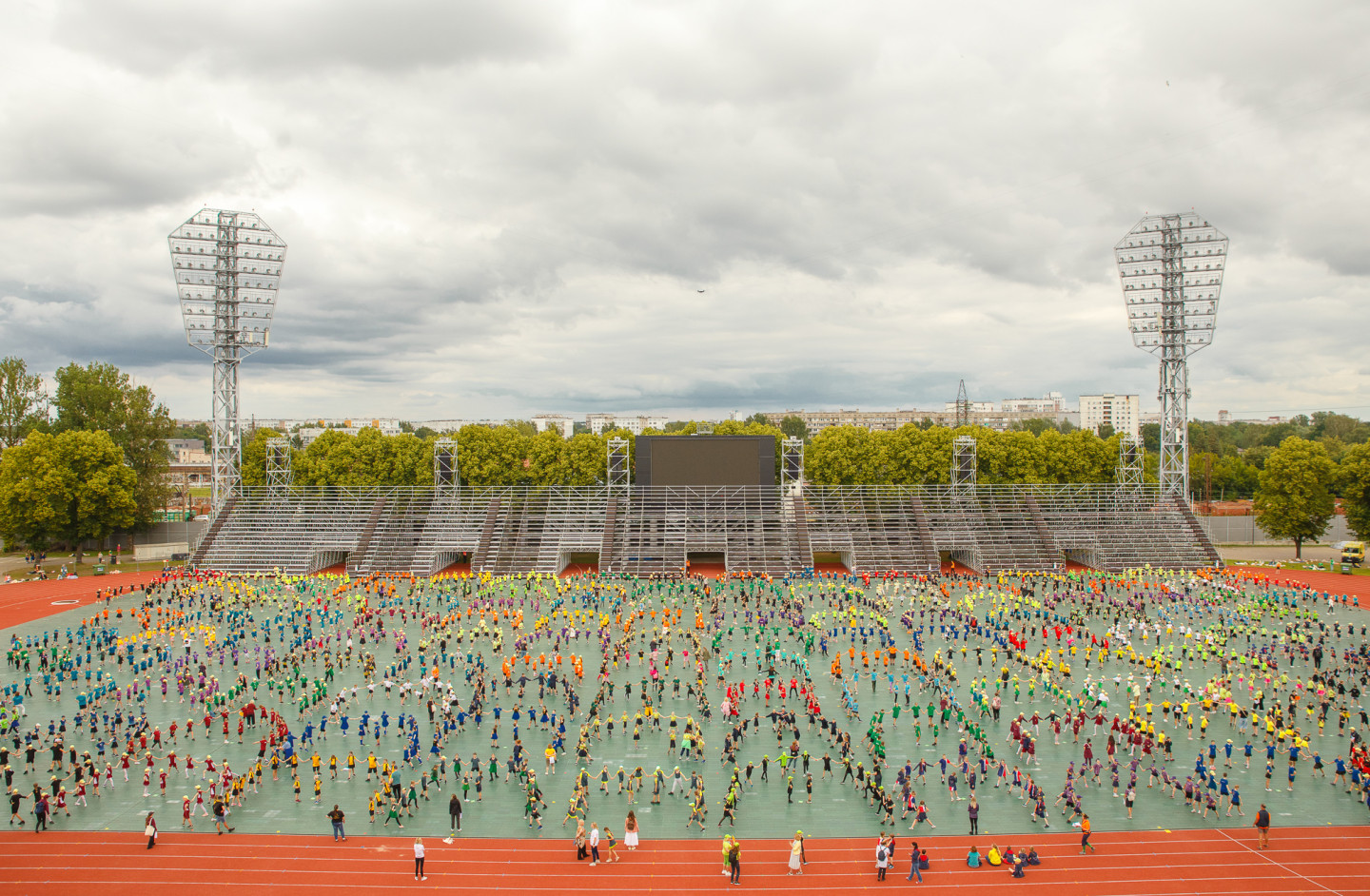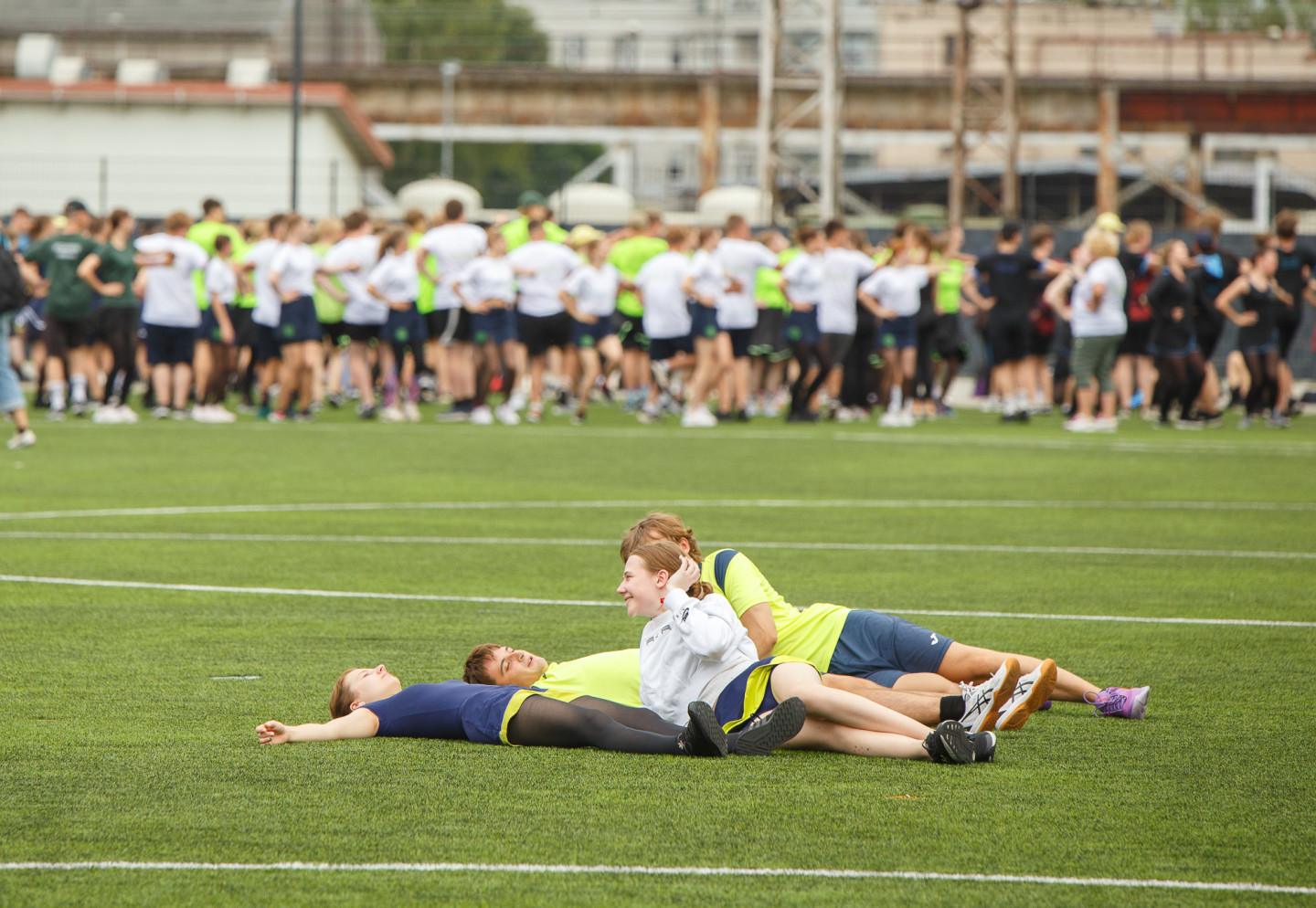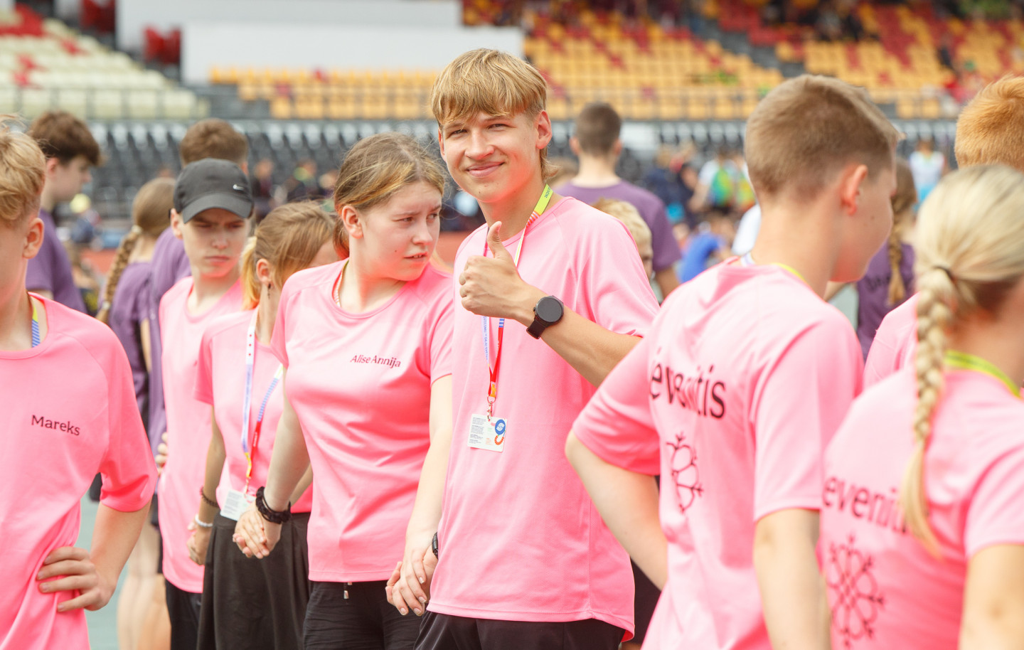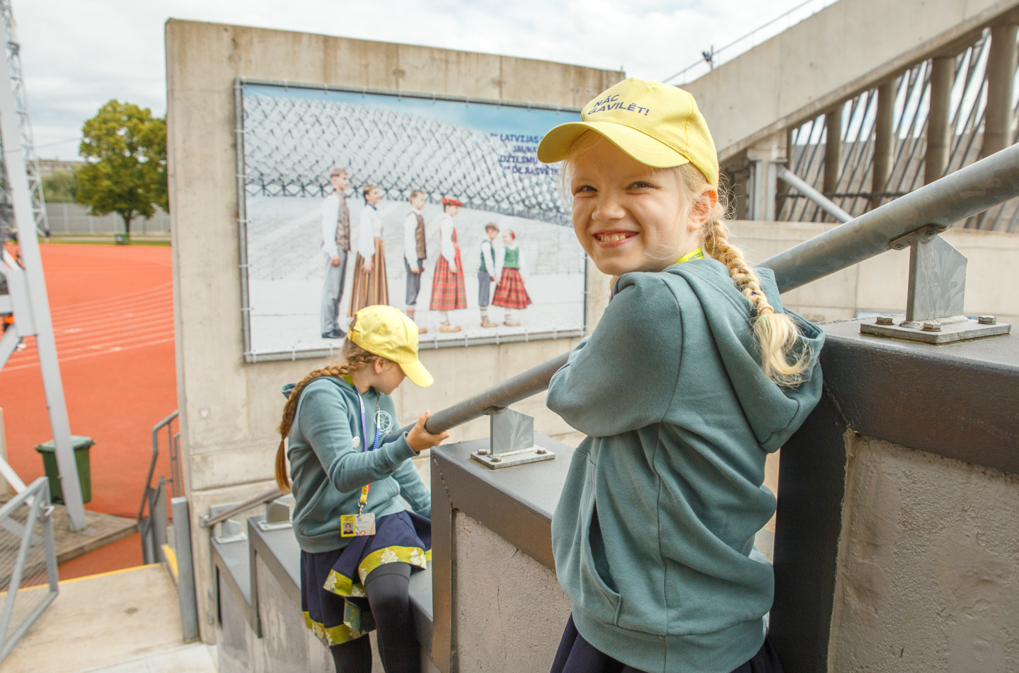 XIII Latvijas Skolu jaunatnes dziesmu un deju svētku Deju lielkoncerta mēģinājums Daugavas stadionā.