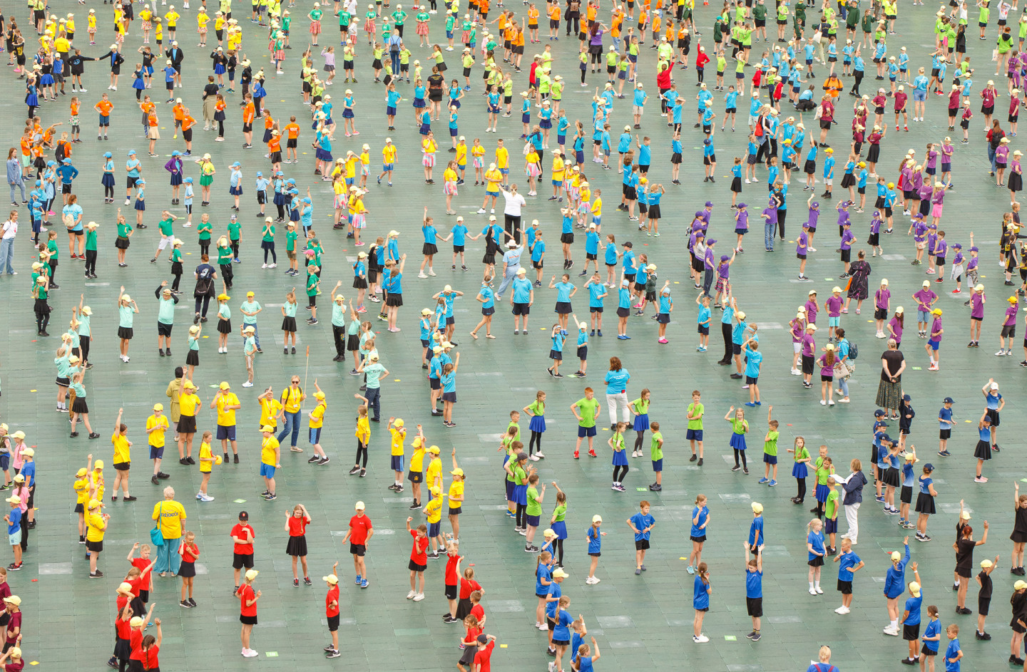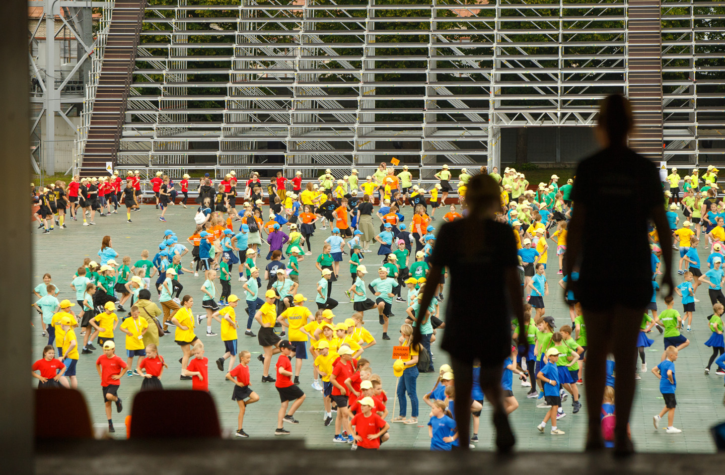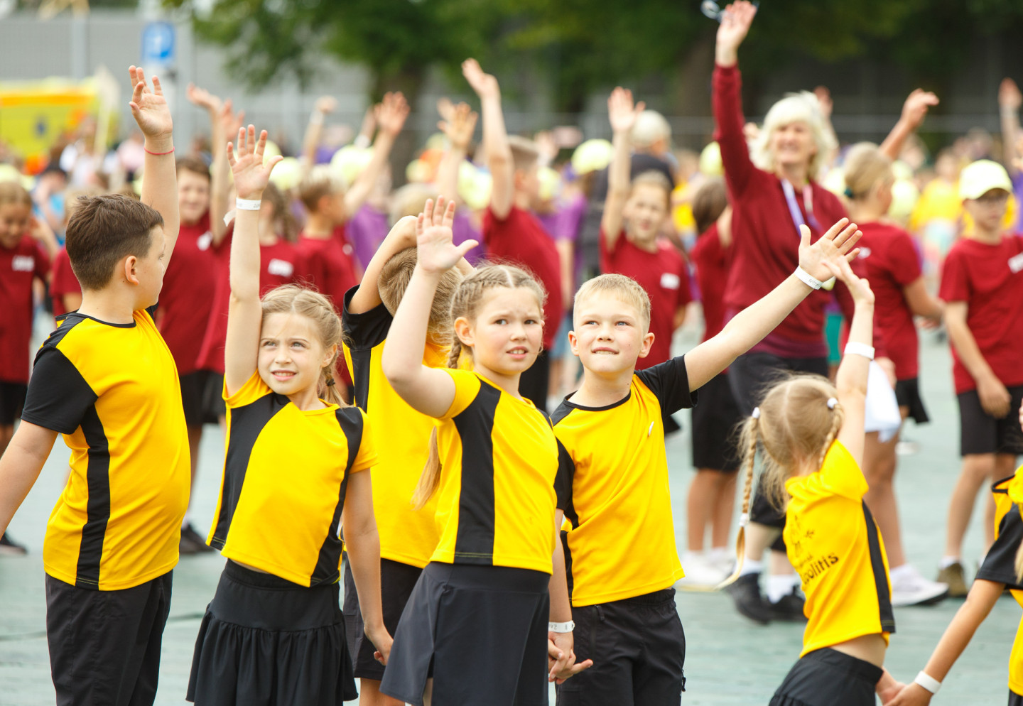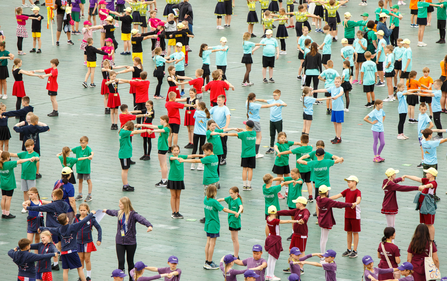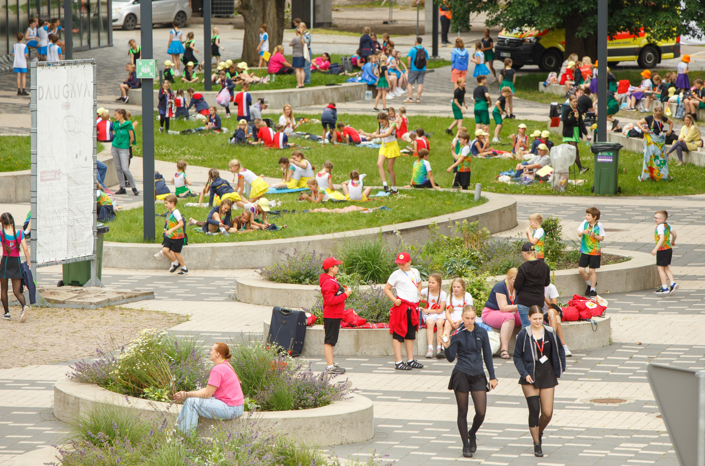 XIII Latvijas Skolu jaunatnes dziesmu un deju svētku Deju lielkoncerta mēģinājums Daugavas stadionā.