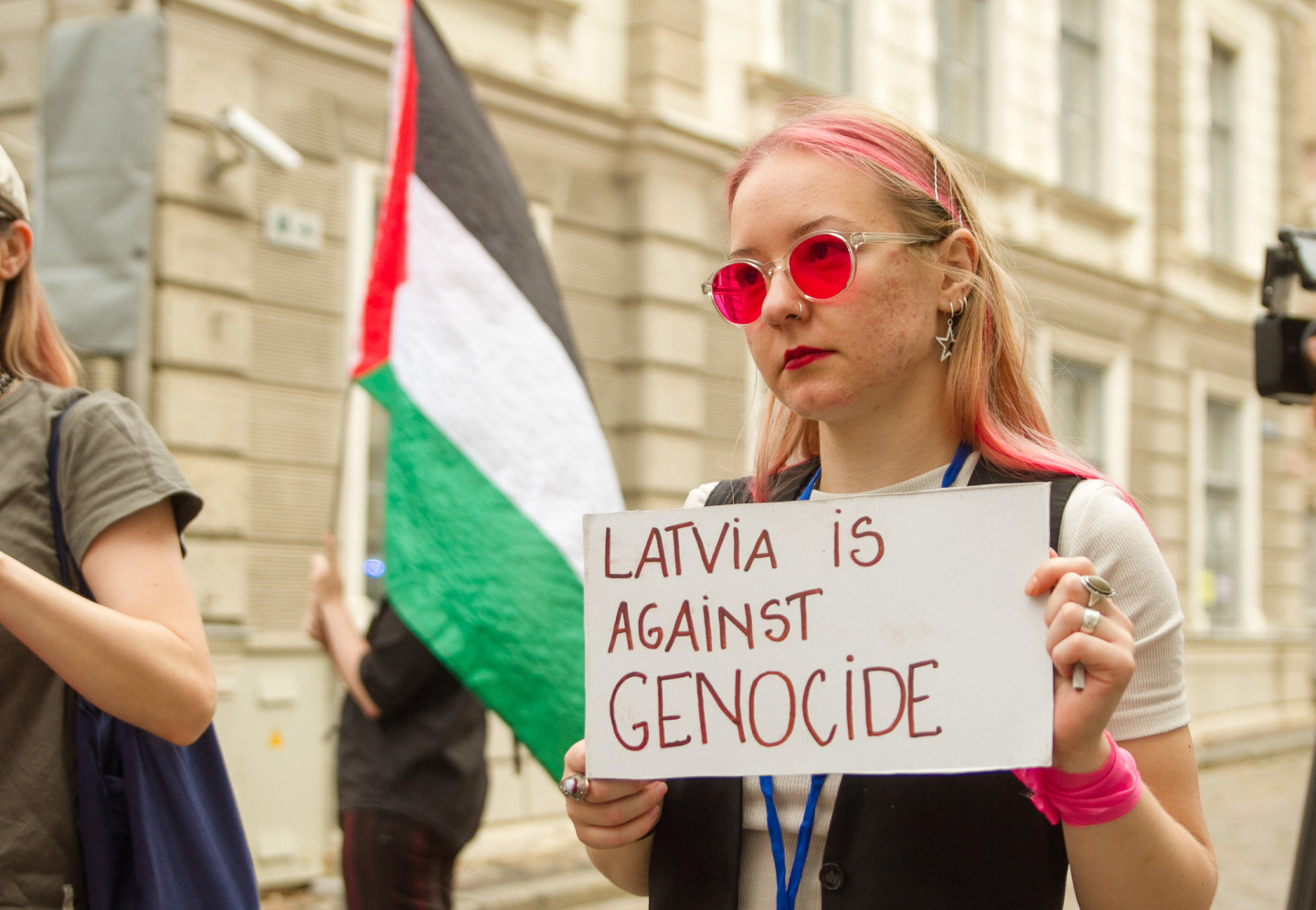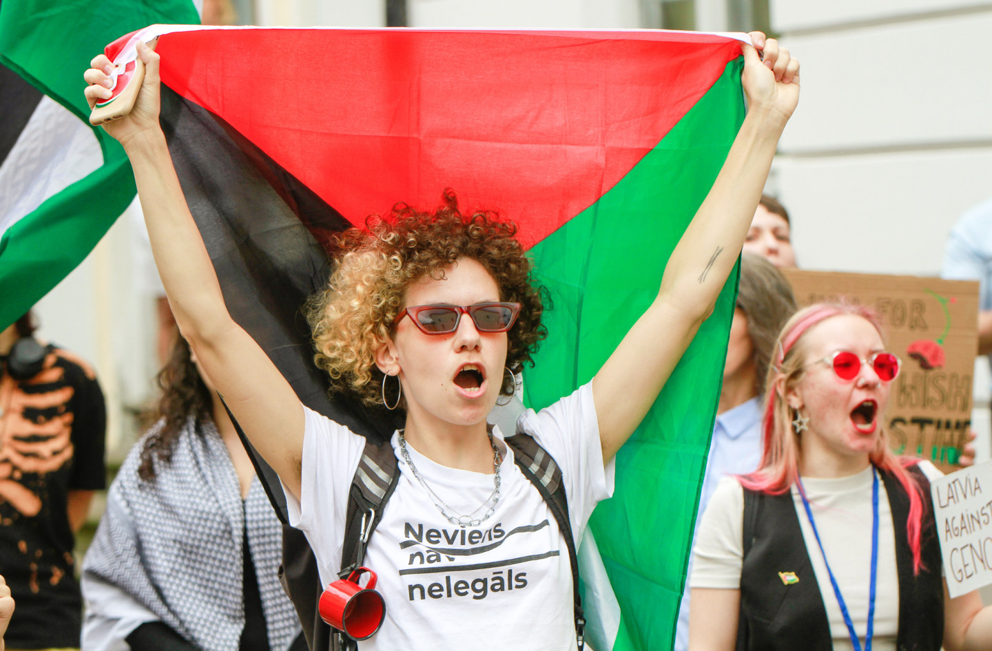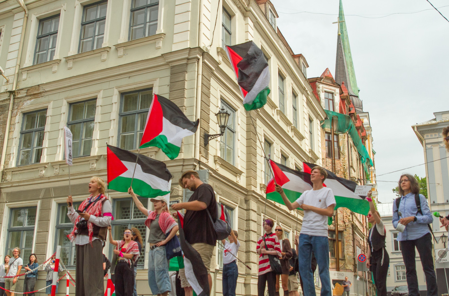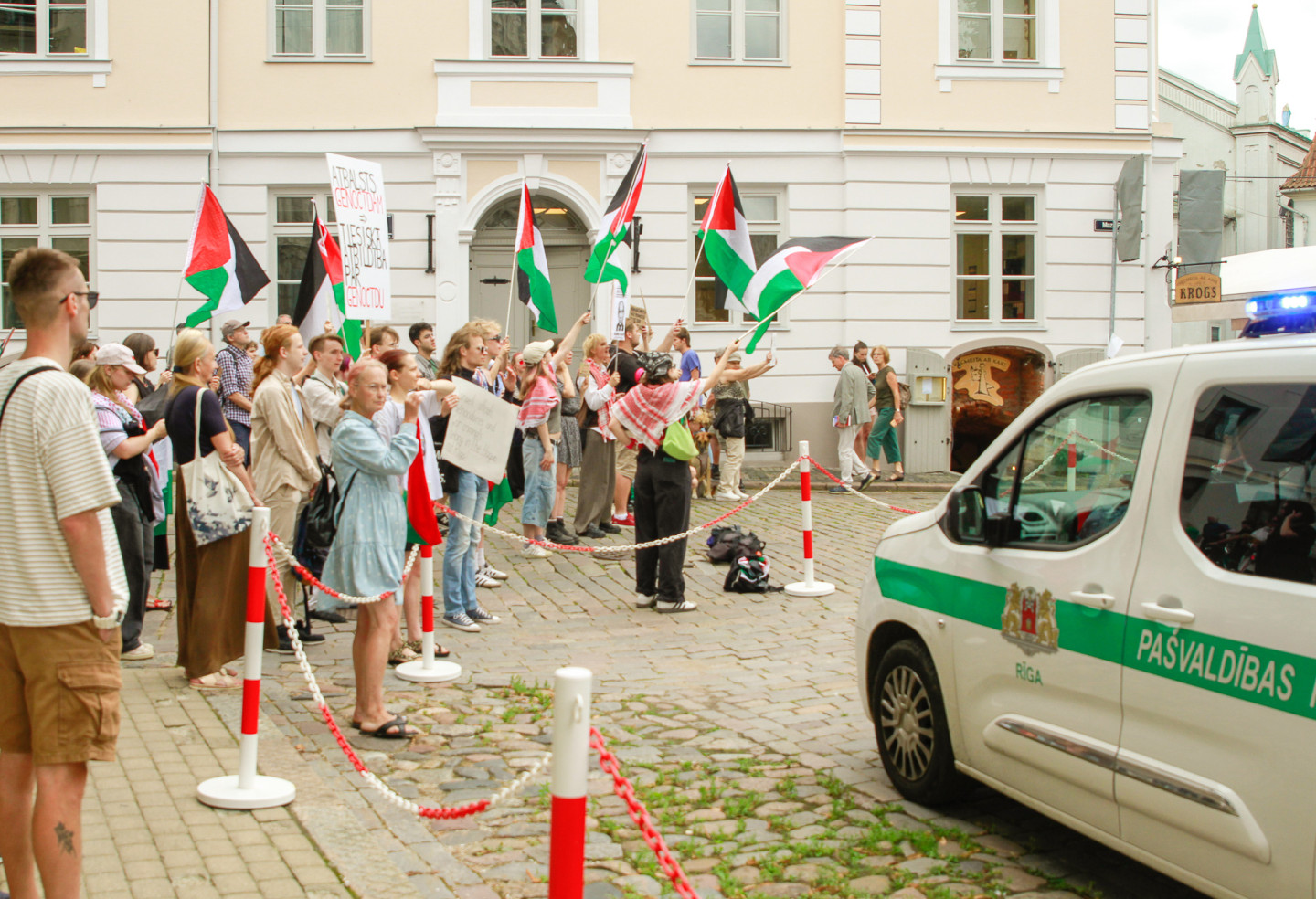 Protestanti Rīgā izsaka nostāju pret sadarbību ar Izraēlu