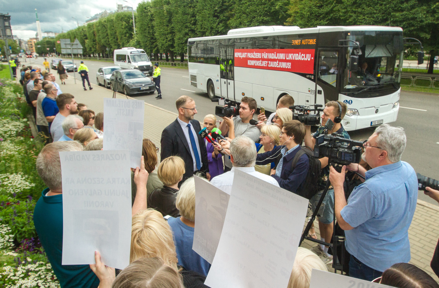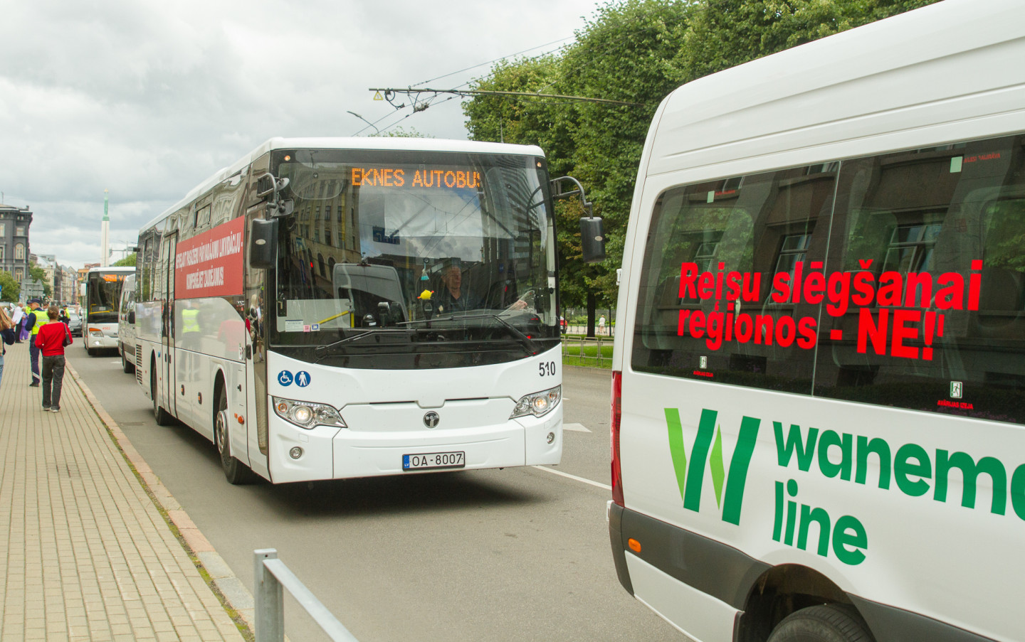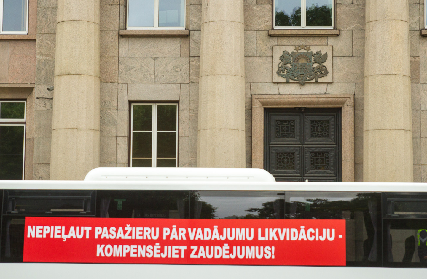 Pie Ministru kabineta reģionālās nozīmes sabiedriskā transporta pasažieru pārvadātāji rīko protesta akciju saistībā ar ilgtermiņa līgumu cenu pārskatīšanu.