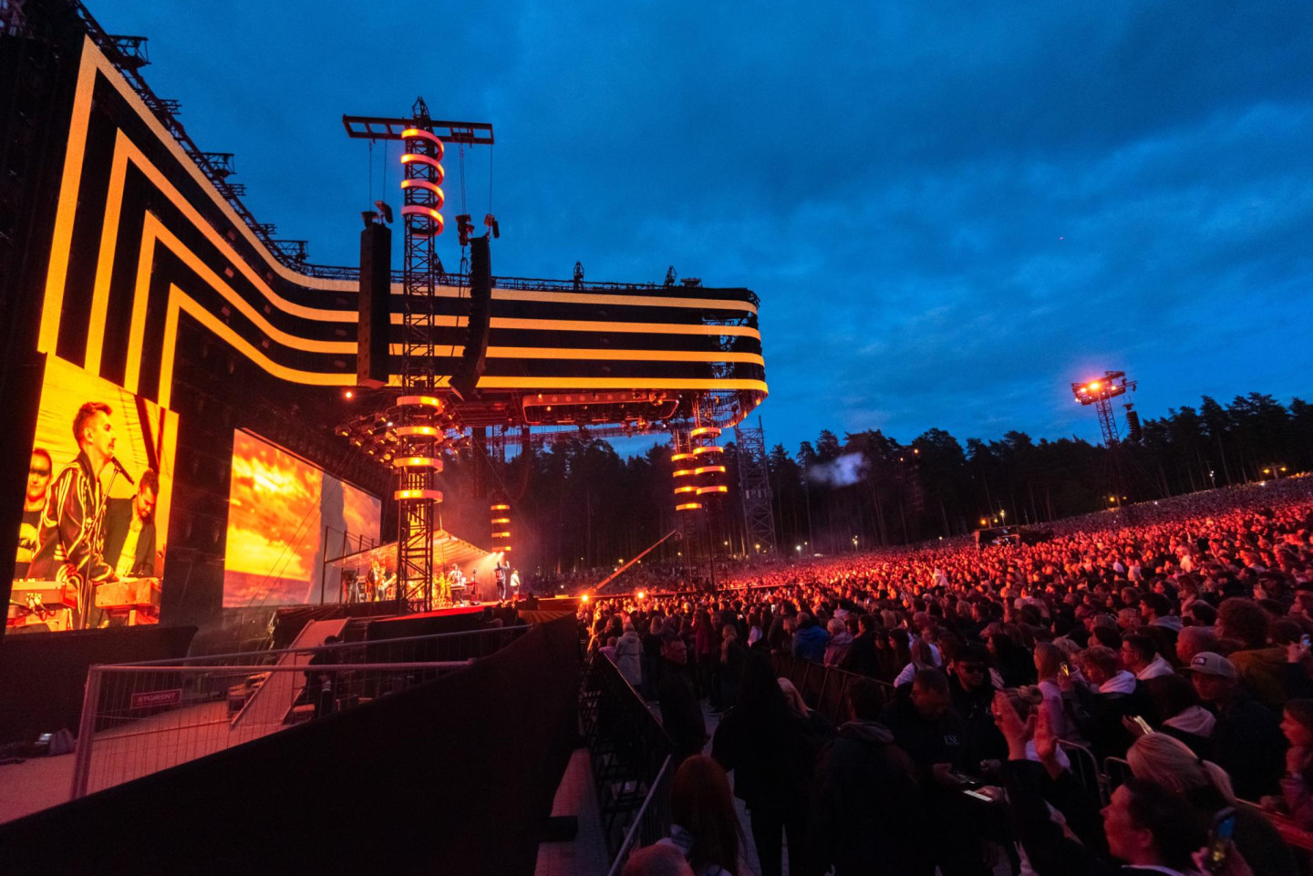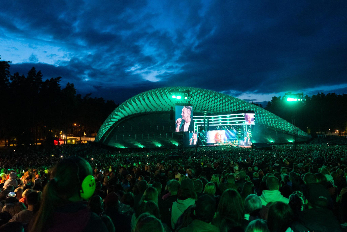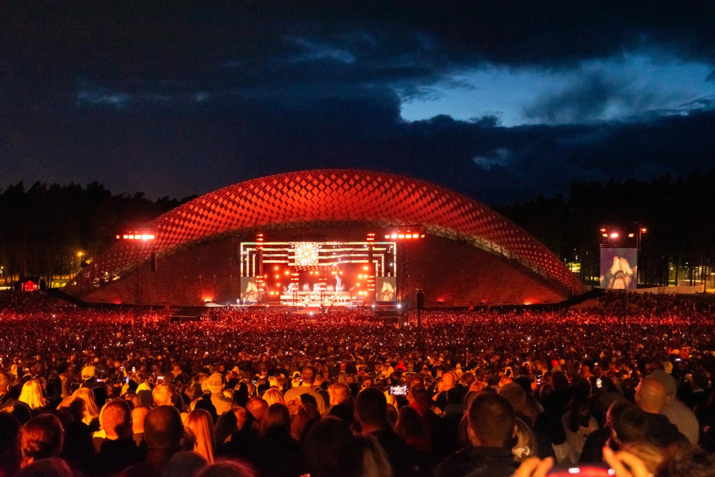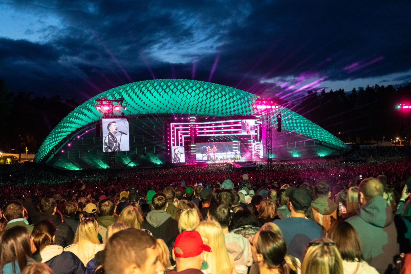 Mežaparka Lielajā estrādē ar vērienu izskanējis grupas Prāta Vētra "Pirmās dienas tūres" noslēguma koncerts.
