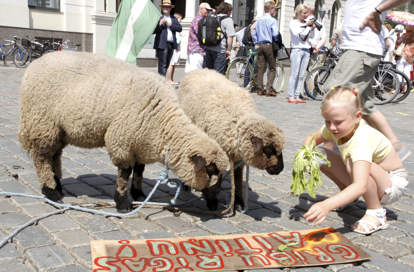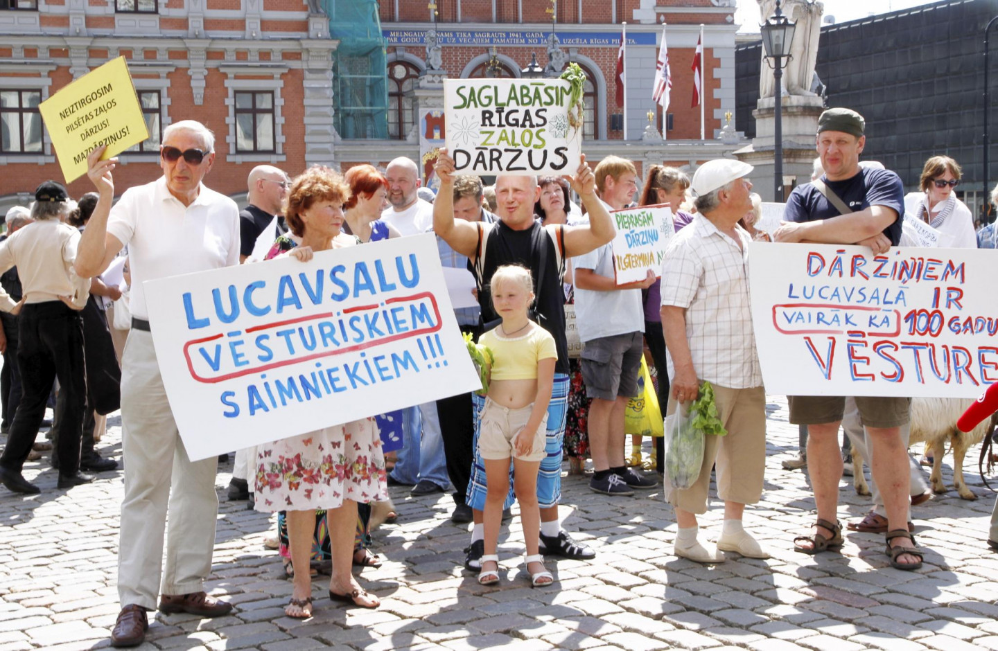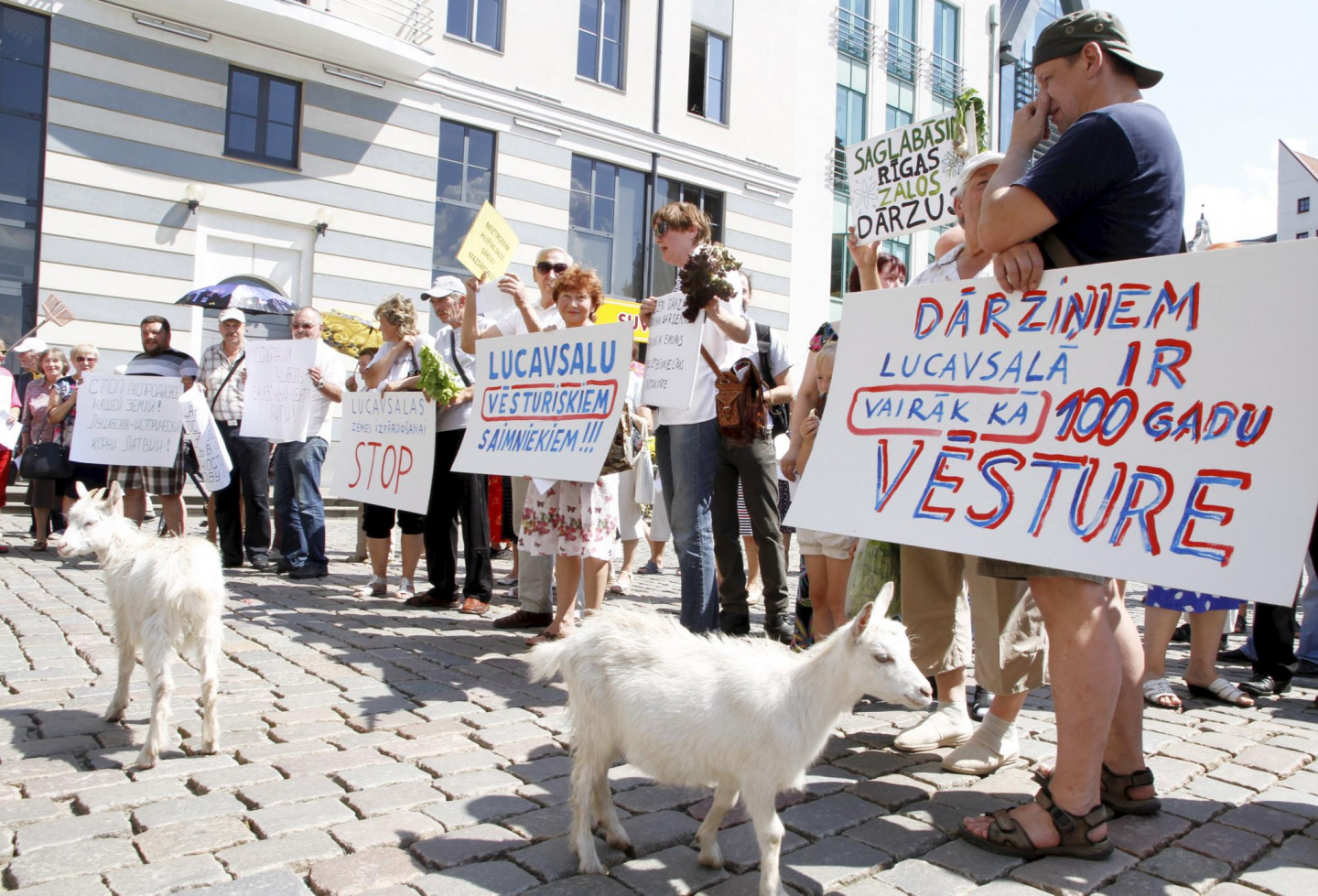 Otrdien pie Rīgas Domes pulcējās desmitiem cilvēku, lai protestētu pret Lucavsalas pārdošanu. Protestētāji uz pasākumu bija ieradušies ne tikai ar plakātiem, bet arī aitām un kazām.