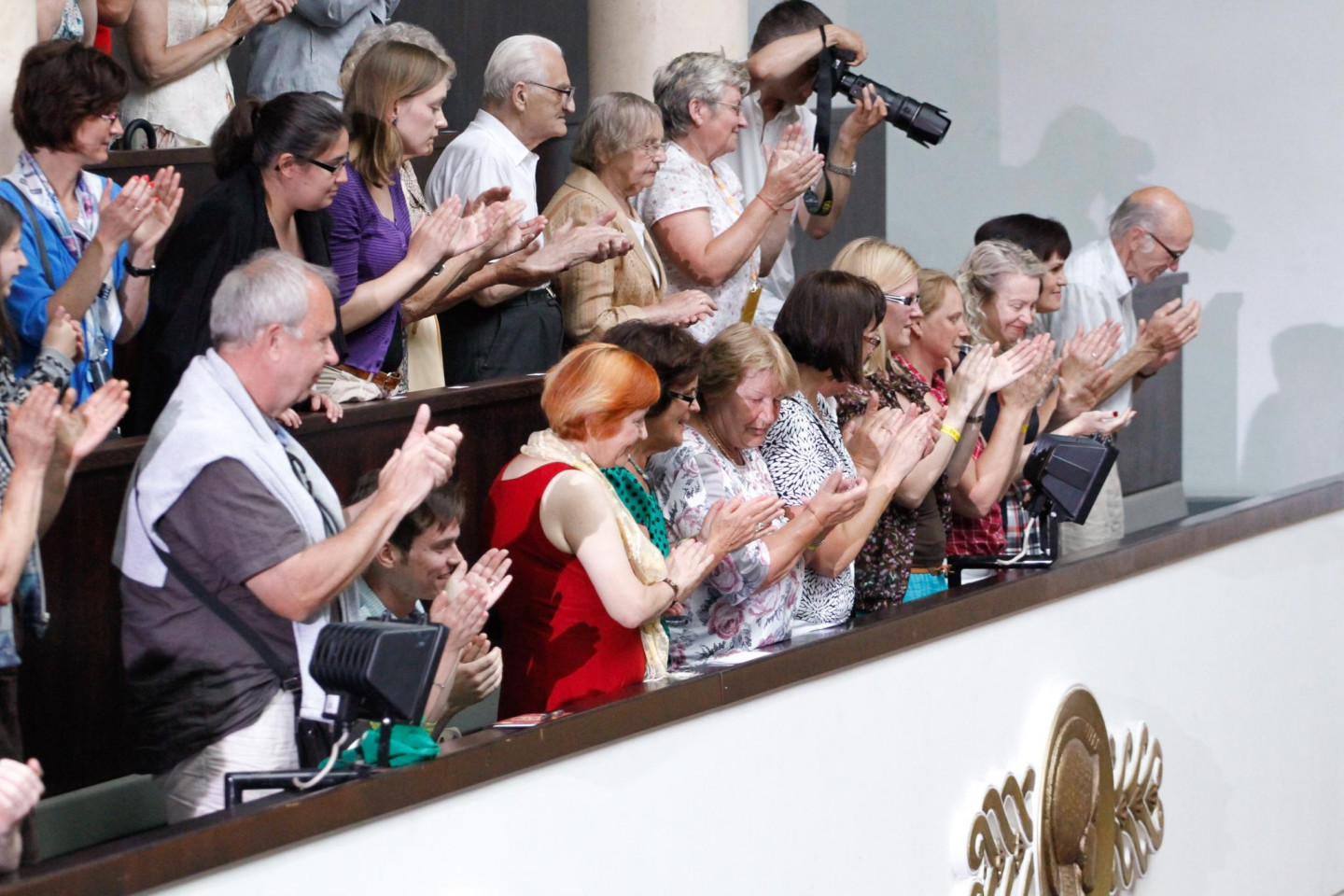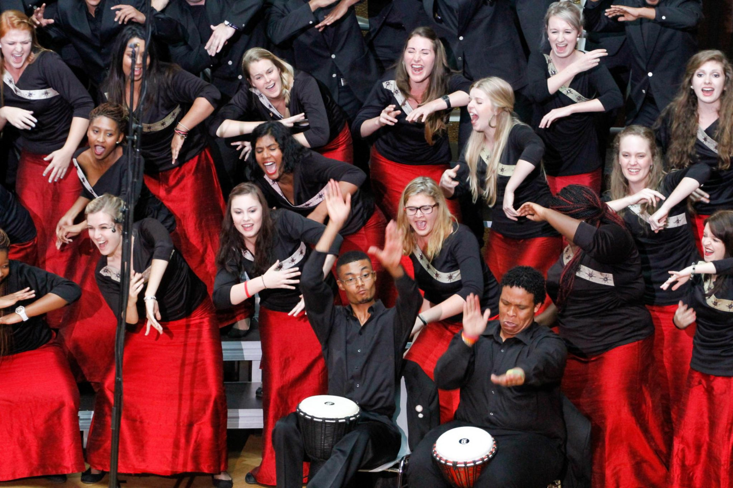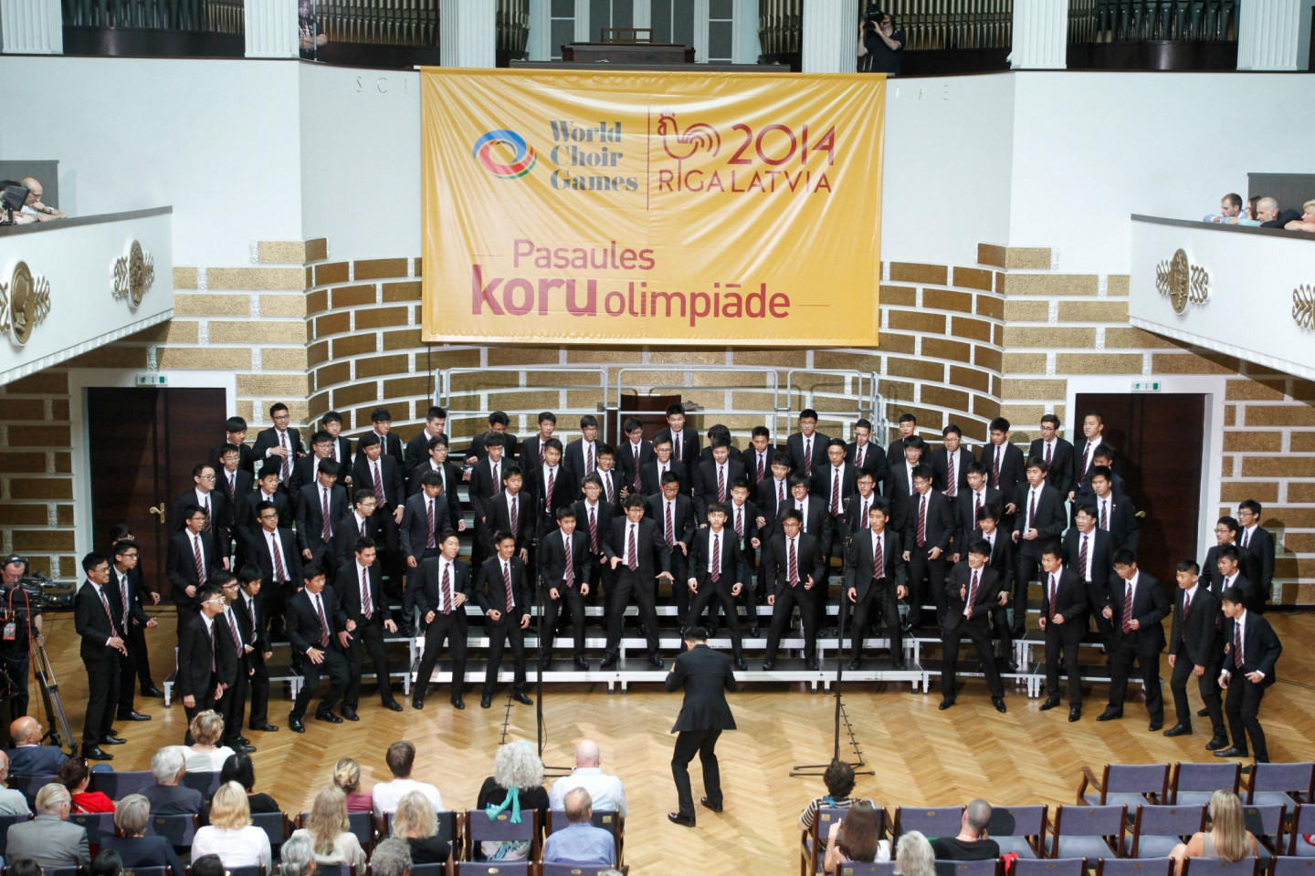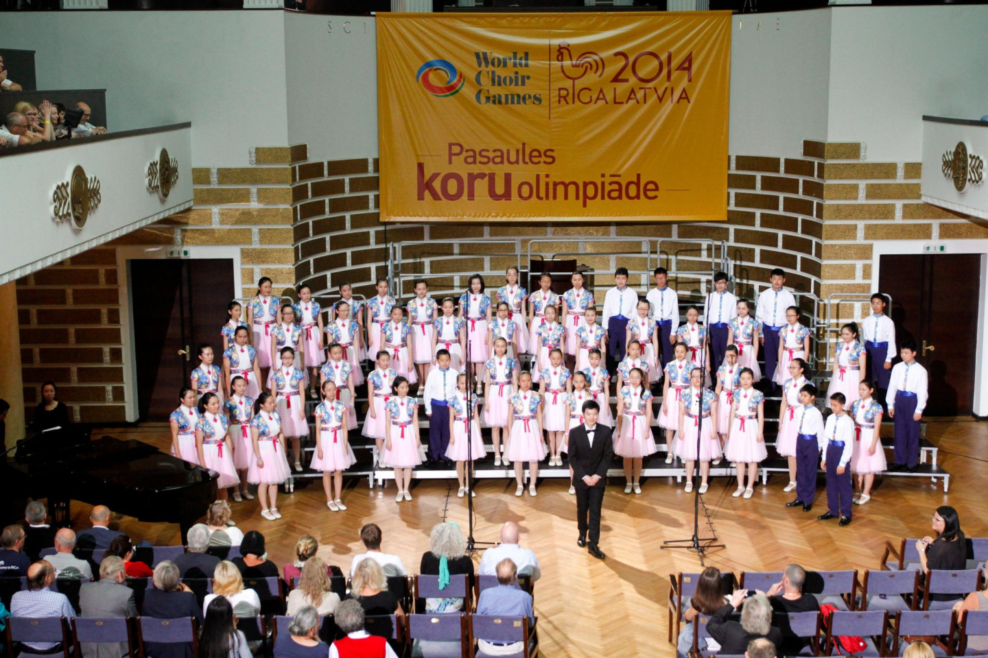 Pasaules koru olimpiādes čempionu koru koncerts Latvijas Universitātes Lielajā aulā.