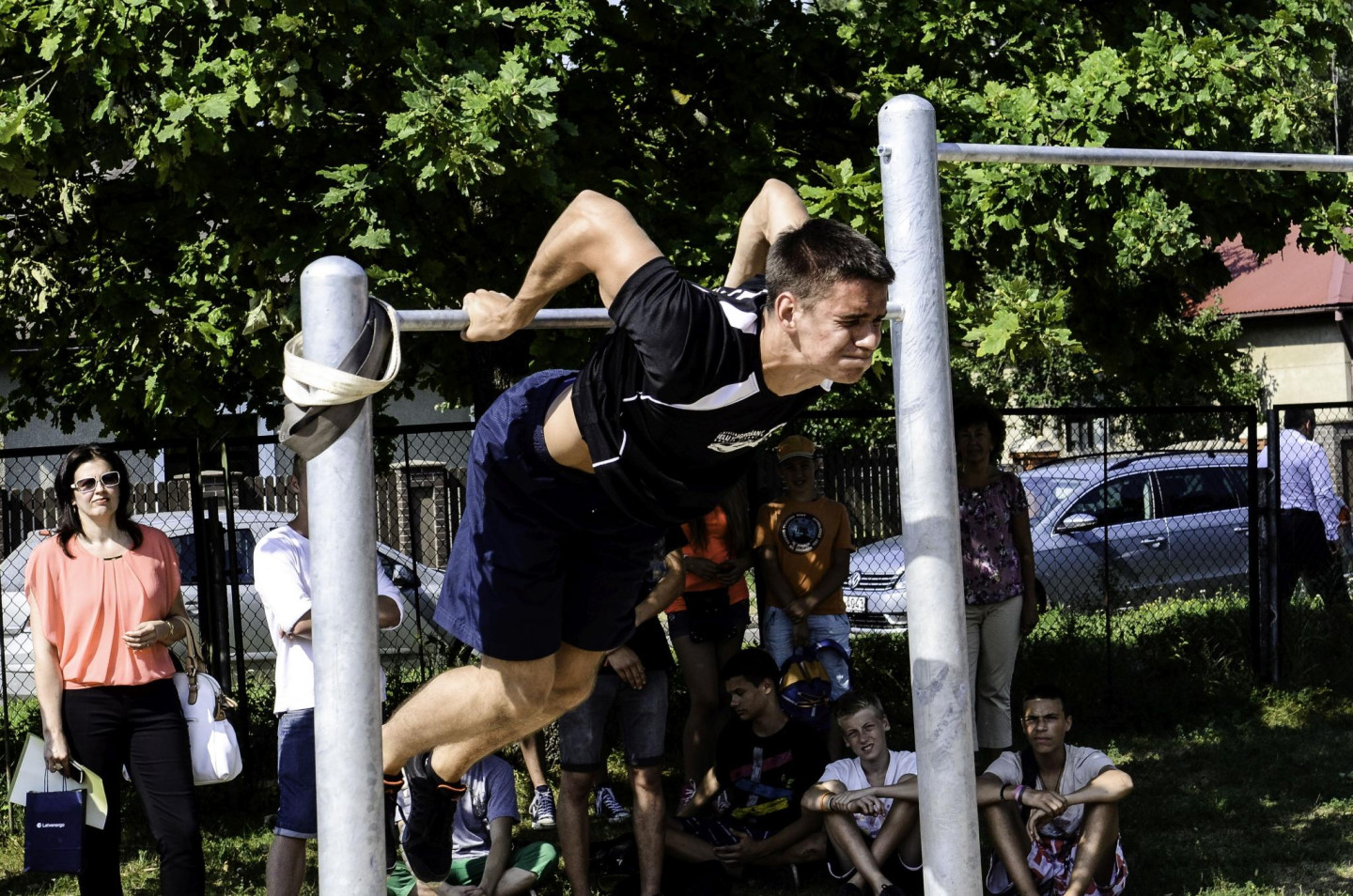 Ar Latvijas labāko ielu vingrotāju paraugdemonstrējumiem atklāj jaunu ielu vingrošanas laukumu. Rīgas Pārdaugavas pamatskolas teritorijā.
