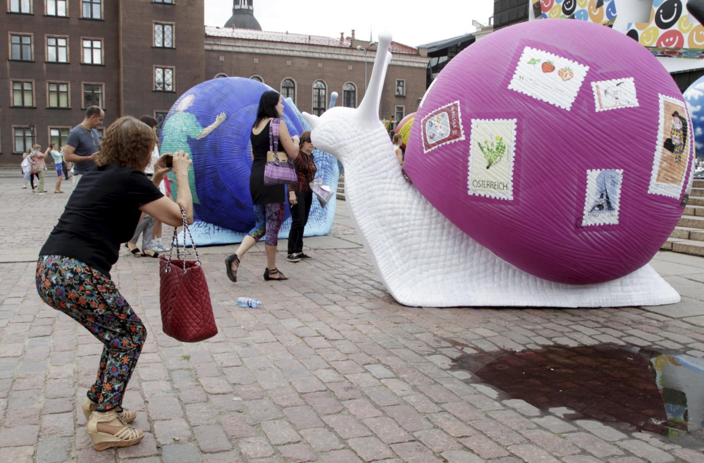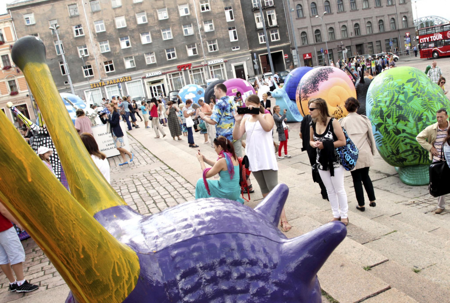 "Mākslai vajag telpu" (MVT) aicina uz grandiozu Gliemežu parādi Rīgā, Strēlnieku laukumā.