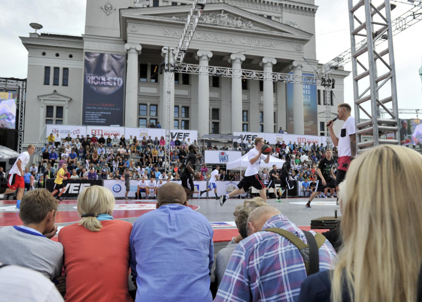 16. un 17. augustā laukumā pie Latvijas Nacionālās operas notiek ikgadējais, Baltijā vērienīgākais brīvdabas diennakts basketbola turnīrs "Krastu mačs".