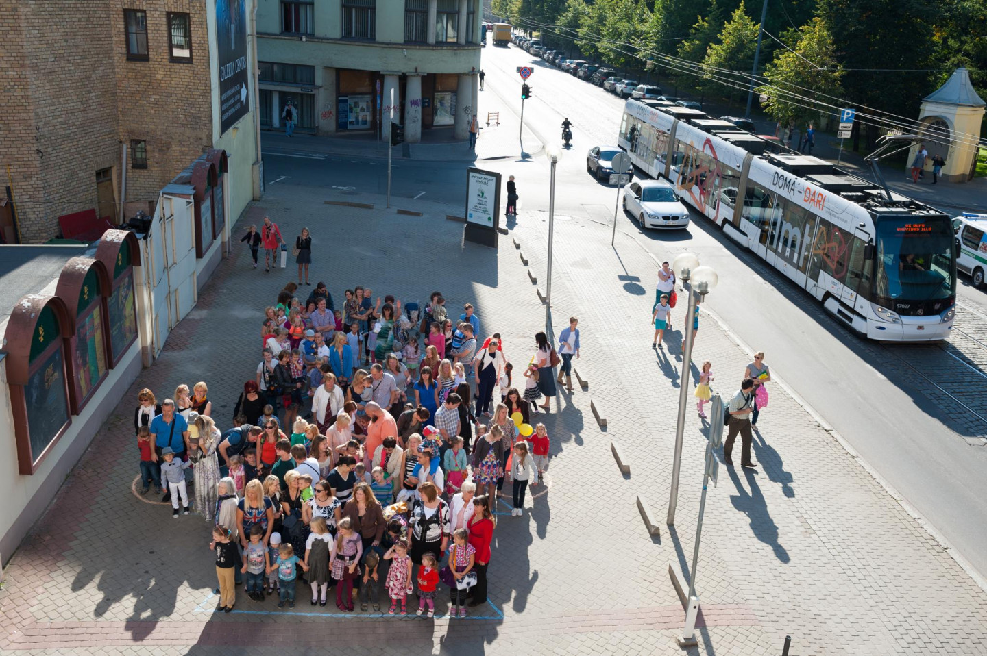 Latvijas Leļļu teātris atzīmēja 70.jubilejas sezonas atklāšanu, aicinot bērnus ar vecākiem piedalīties lielā fotologo un milzu apsveikuma kartītes radīšanā.