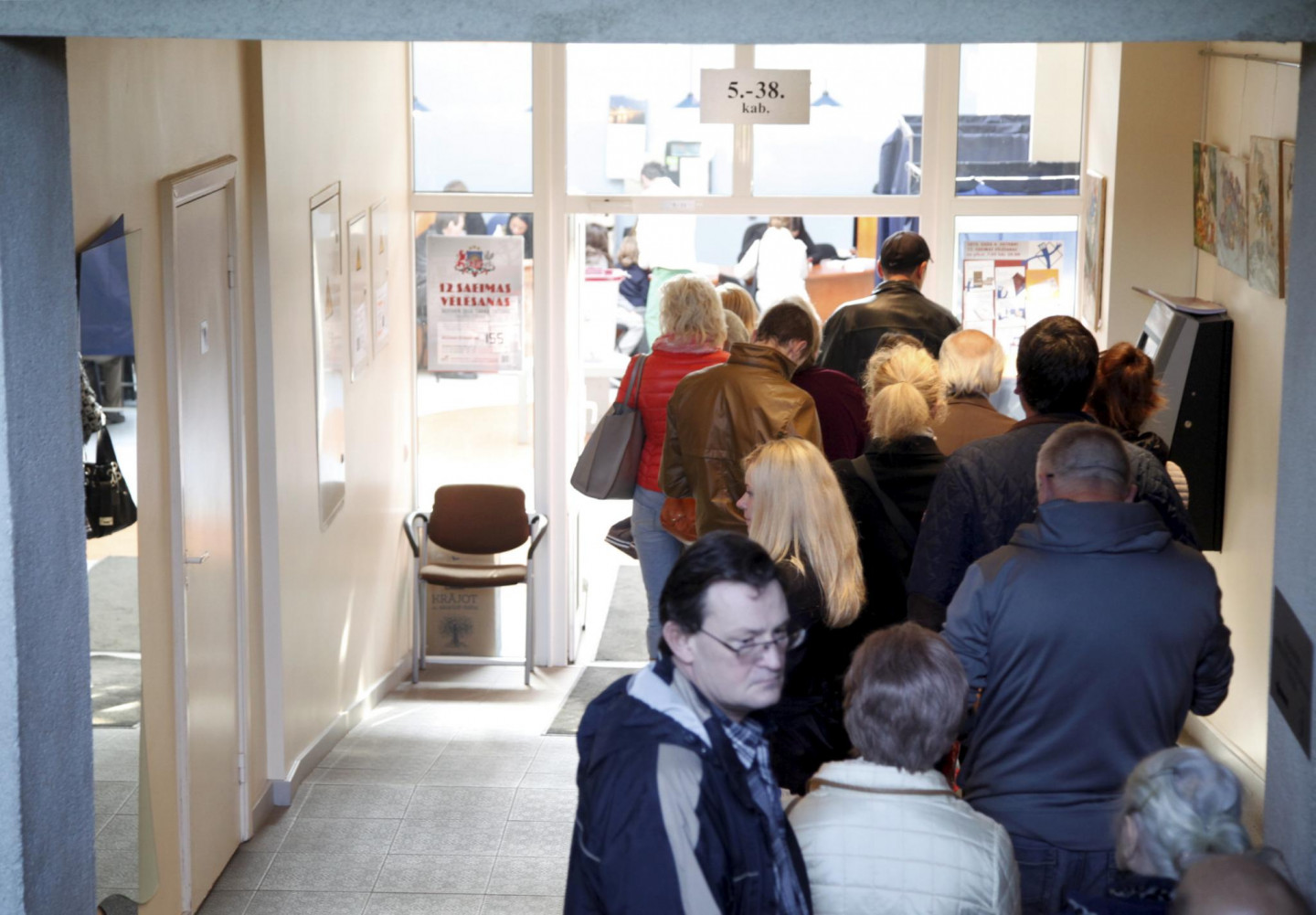 Vēlētāju rindas Rīgas vēlēšanu iecirkņos