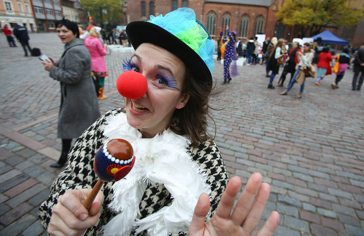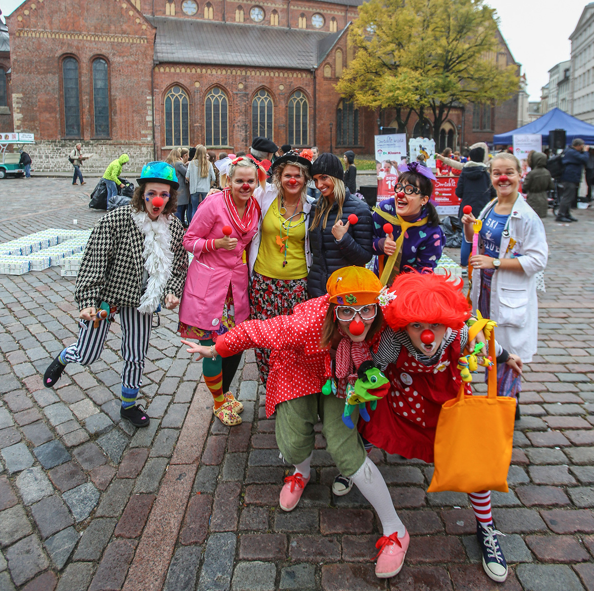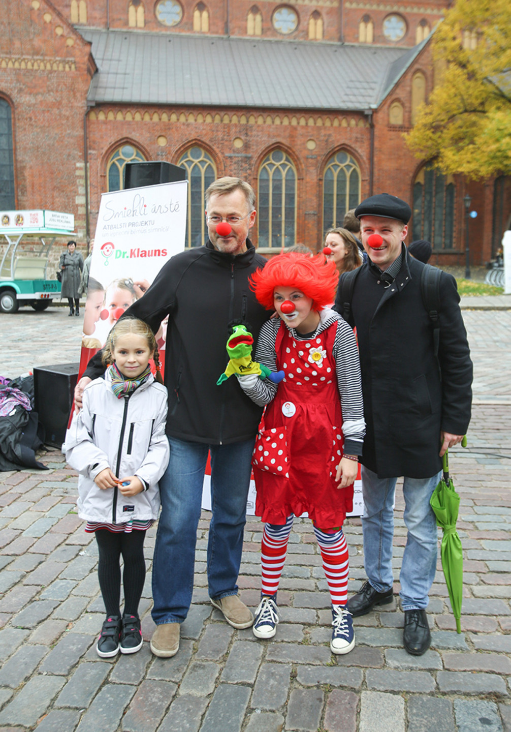 Doma laukumā notika Bērnu klīniskās universitātes slimnīcas Rīgā un reģionālo slimnīcu visā Latvijā mazo pacientu atveseļošanās projekta Dr.Klauns akcijas “Smiekli ārstē!” noslēgums.