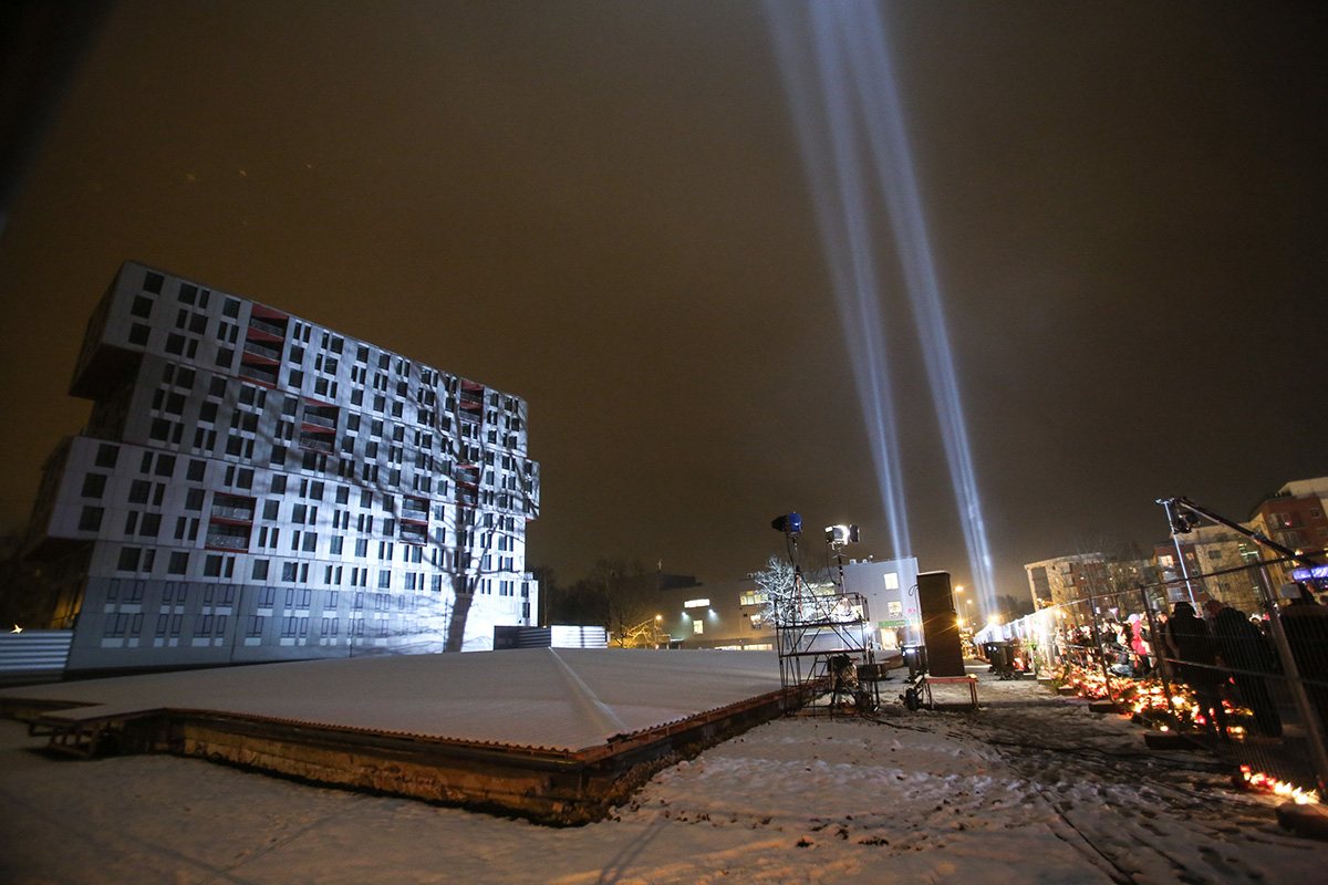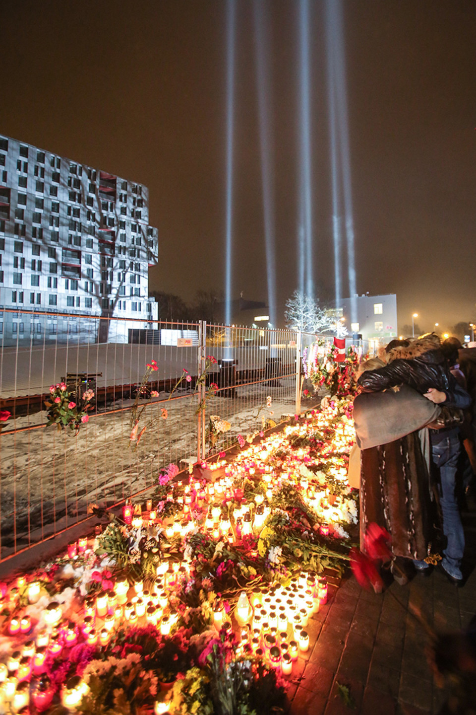 Piemiņas pasākumā Zolitūdes traģēdijas vietā 21. novembrī sapulcējušies vairāki simti cilvēku Daudziem cilvēkiem rokās sveces un ziedi, kas vēlāk novietoti pie nožogojuma traģēdijas vietā. Pieminēt traģēdijā bojāgājušos ieradās arī Ministru prezidente Laimdota Straujuma (V), iekšlietu ministrs Rihards Kozlovskis (V), tiesībsargājošo institūciju pārstāvji, kā arī Valsts ugunsdzēsības un glābšanas dienesta (VUGD) pārstāvji. Tāpat upurus pieminēt ieradās "Re&Re" pārstāvji. Sākoties piemiņas pasākumam, klātesošie vienojās kopīgā lūgšanā, aizlūdzot par traģēdijā bojāgājušajiem. Lūgšanu vadīja pareizticīgo baznīcas mācītājs, katru upuri nosaucot vārdā.