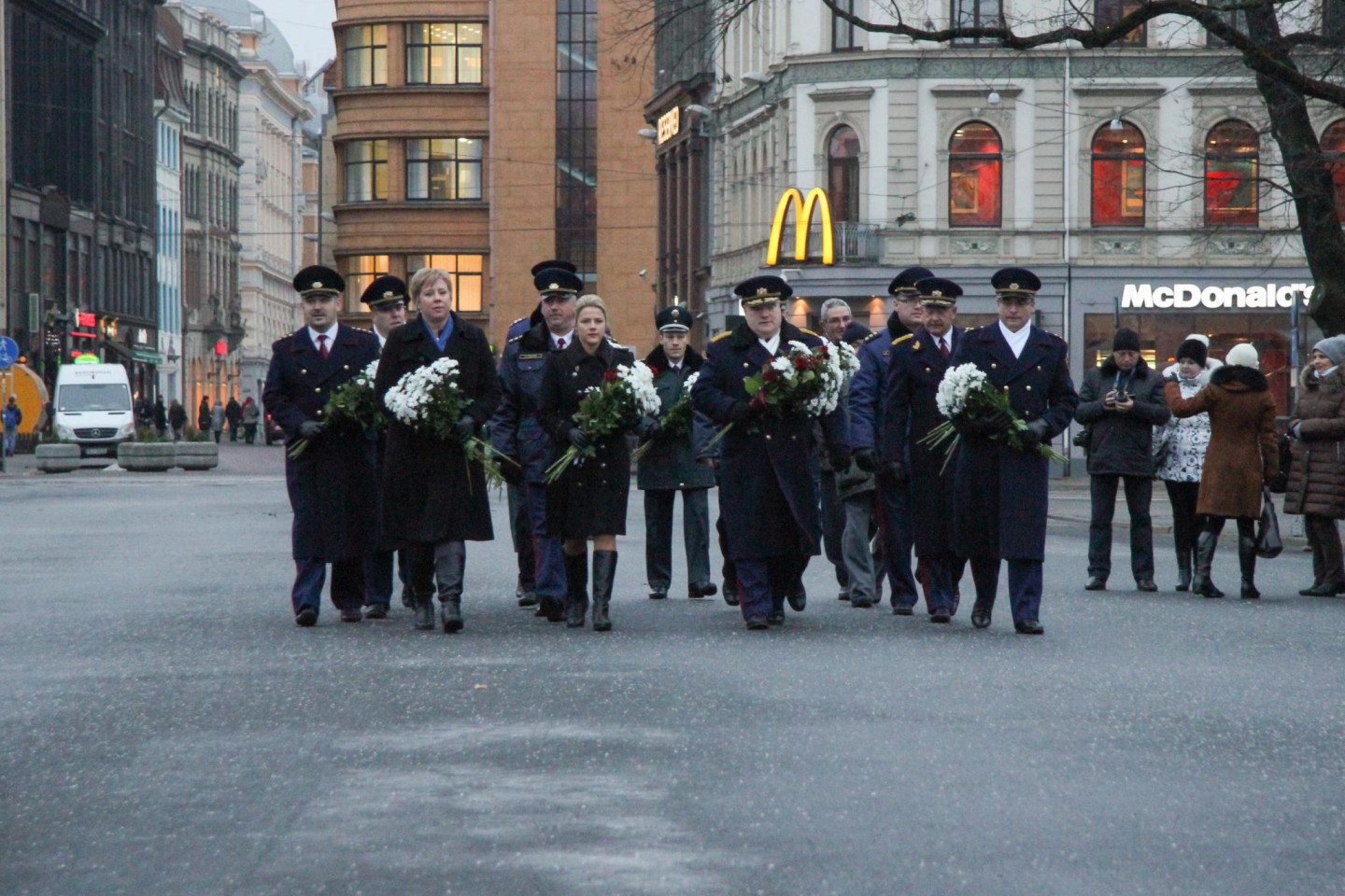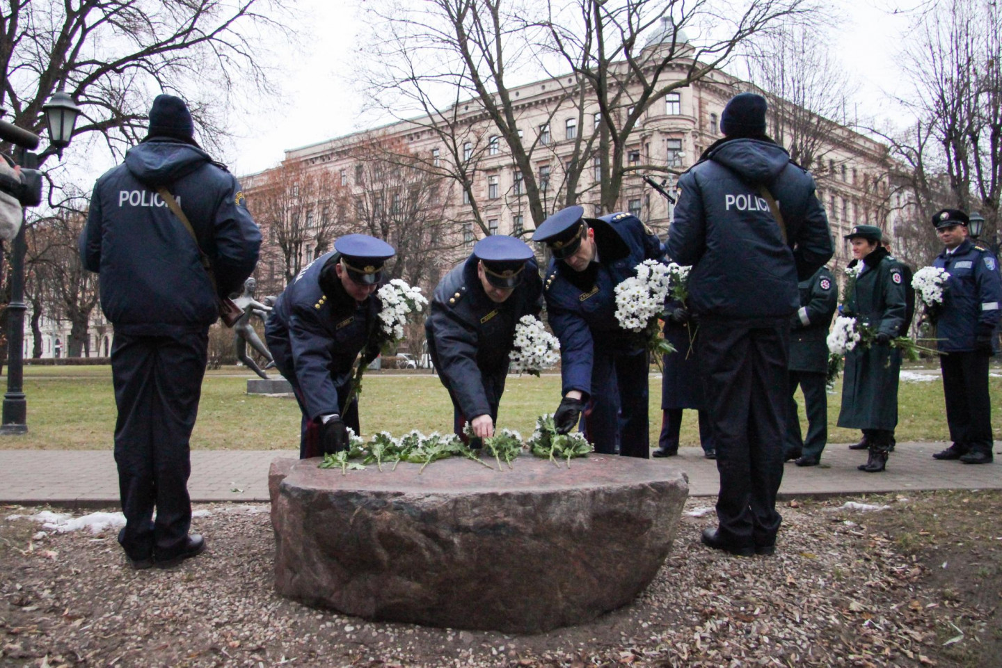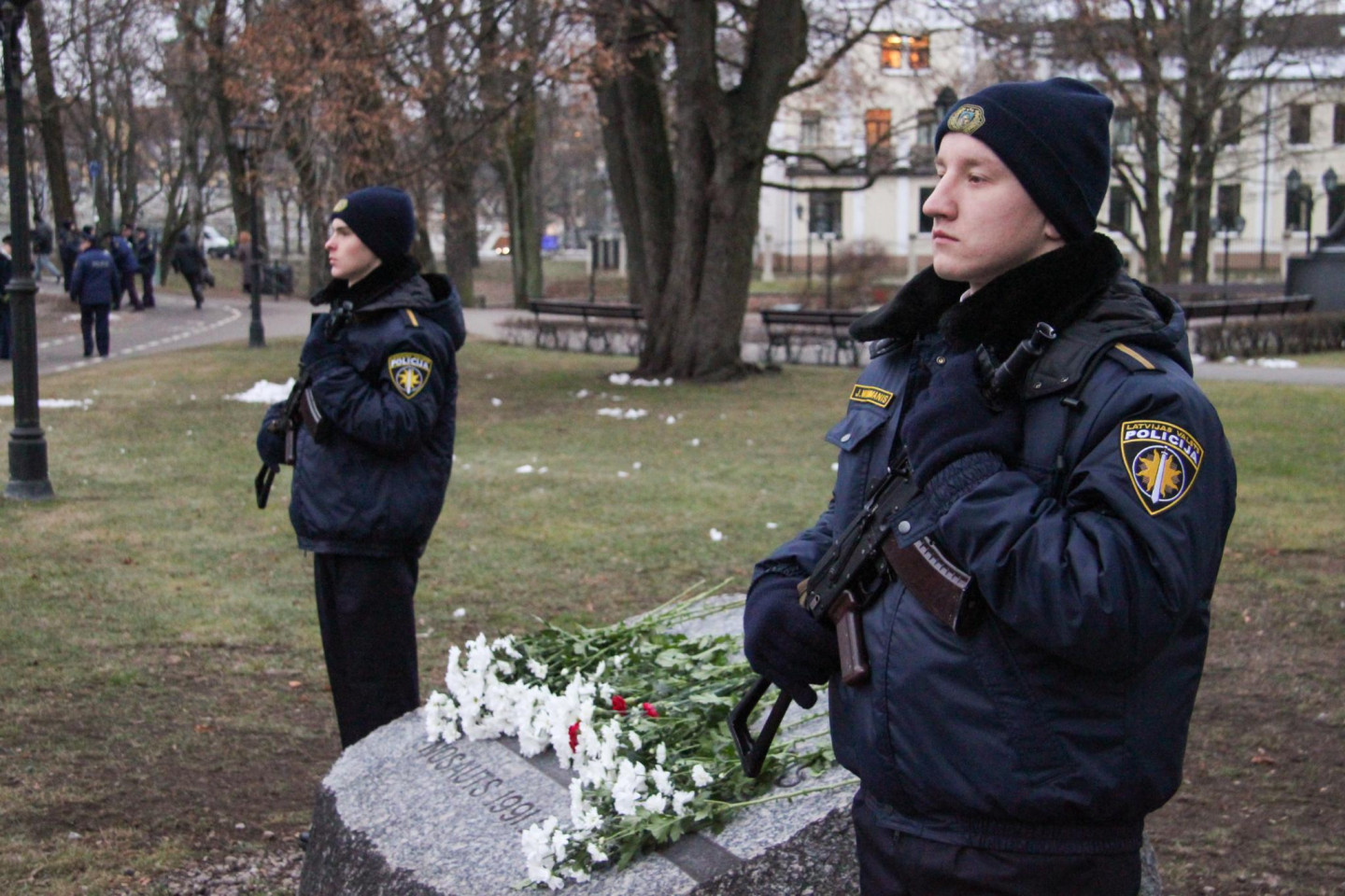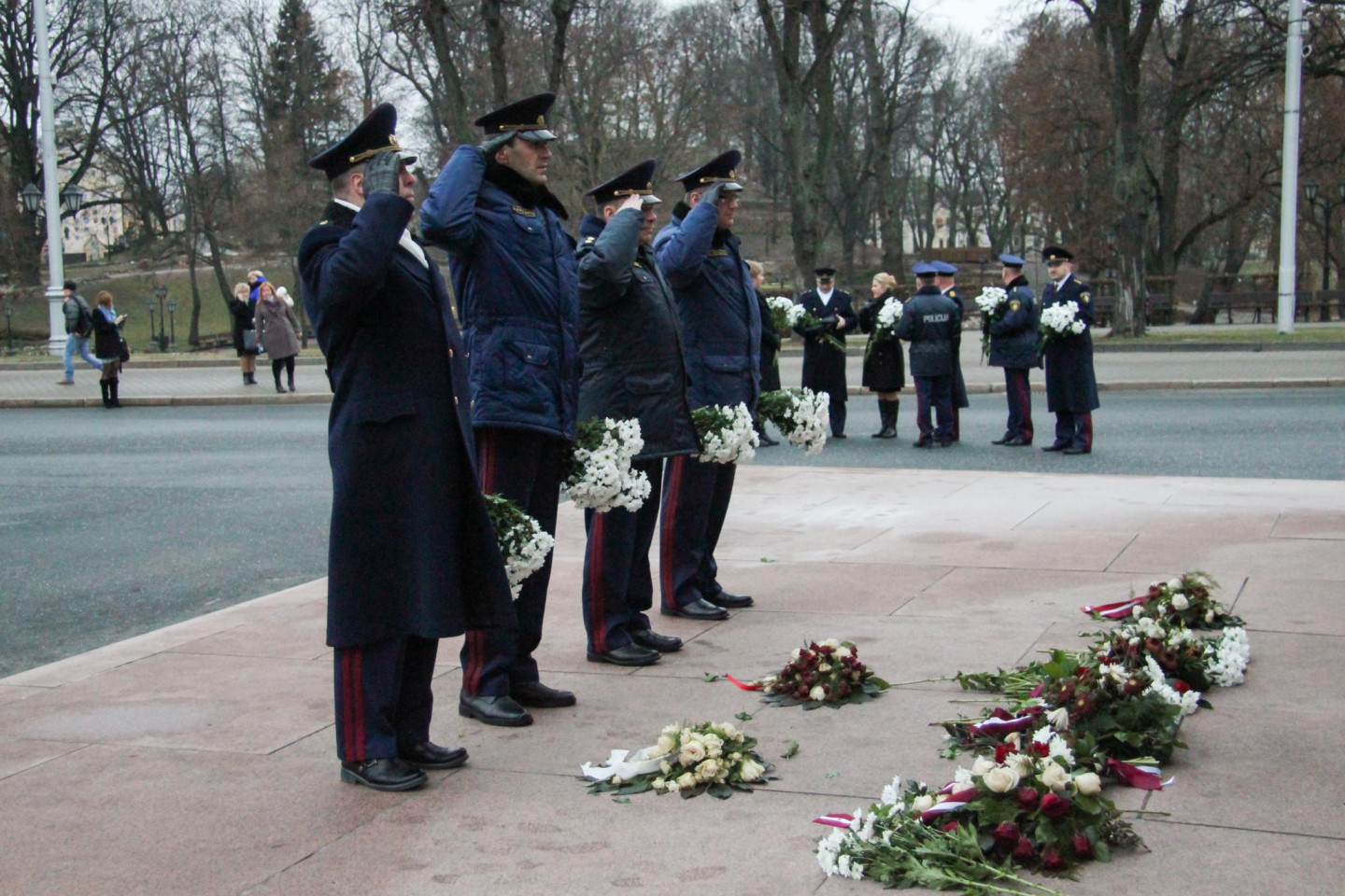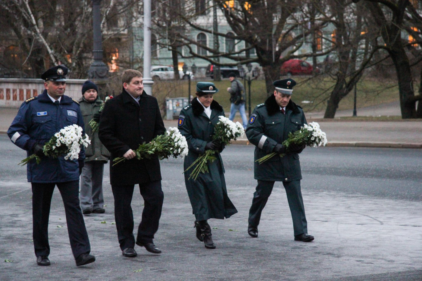 Policijas svinīgā ziedu nolikšana pie Brīvības pieminekļa