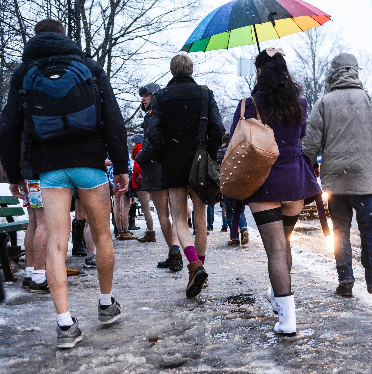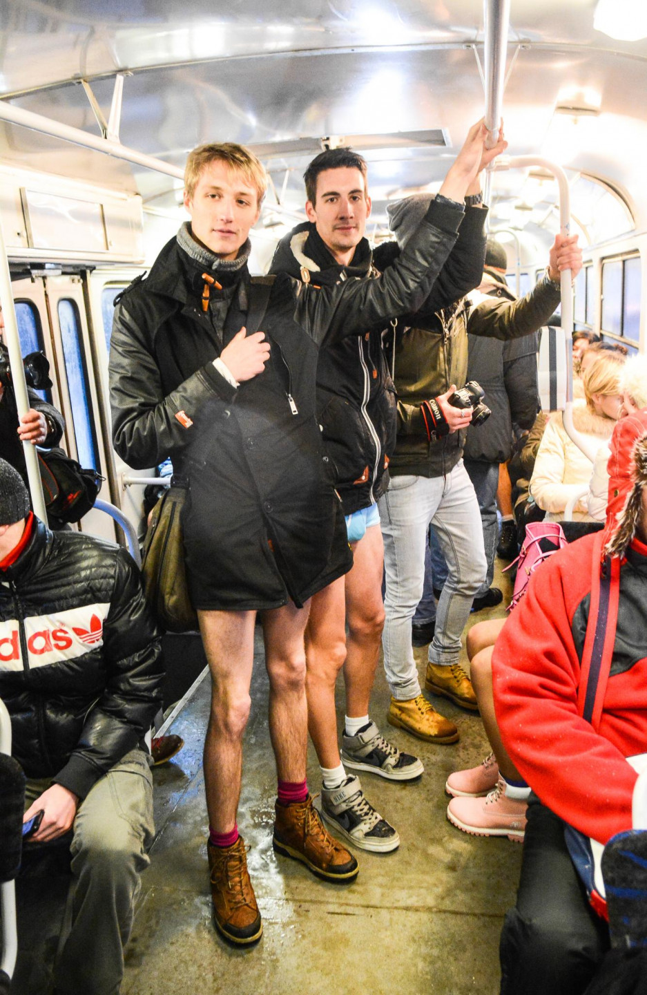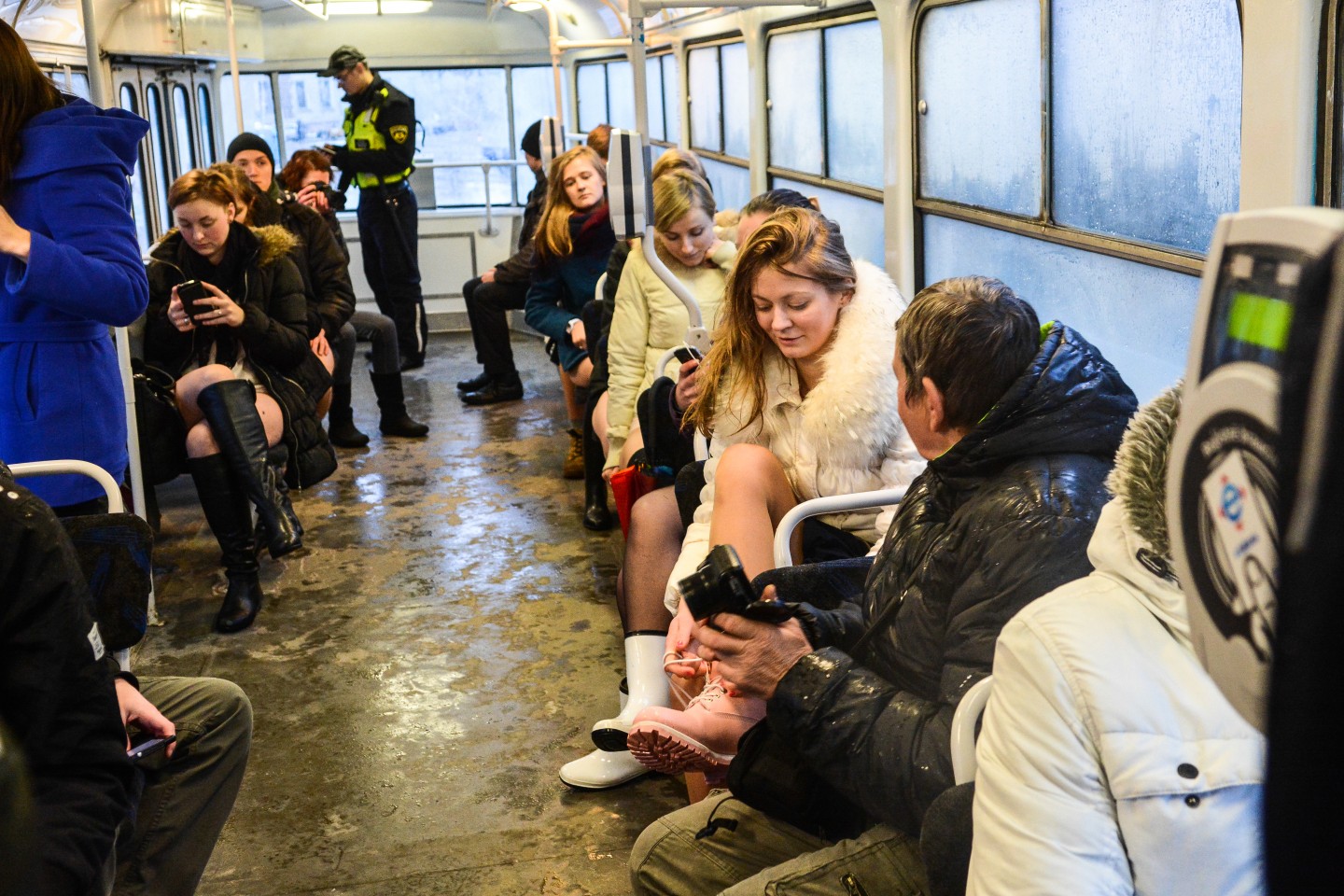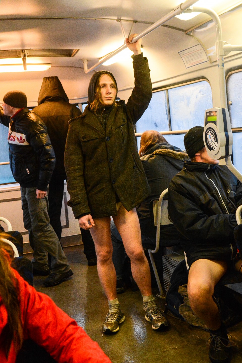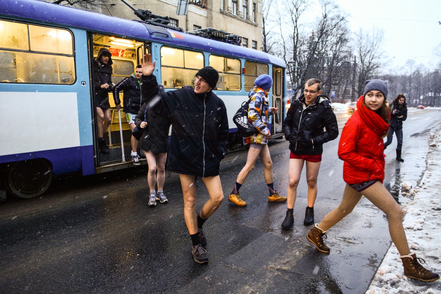 Akcijā "Bez bikšu brauciens tramvajā" šopēcpusdien Rīgā bija pulcējušies aptuveni 40-50 jauni cilvēki, kuri, ģērbti laika apstākļiem atbilstošās ikdienas drēbēs, taču bez biksēm kājās. "Bez bikšu brauciens tramvajā" jeb "The No Pants Subway Ride" ir ikgadējs globāls pasākums, ko 2002.gadā Ņujorkā iesāka kustība "Improv Everywhere". Pasākums šogad šajā pašā dienā norisinās vismaz 60 pasaules pilsētās. Rīgā akcija notika pirmo reizi.