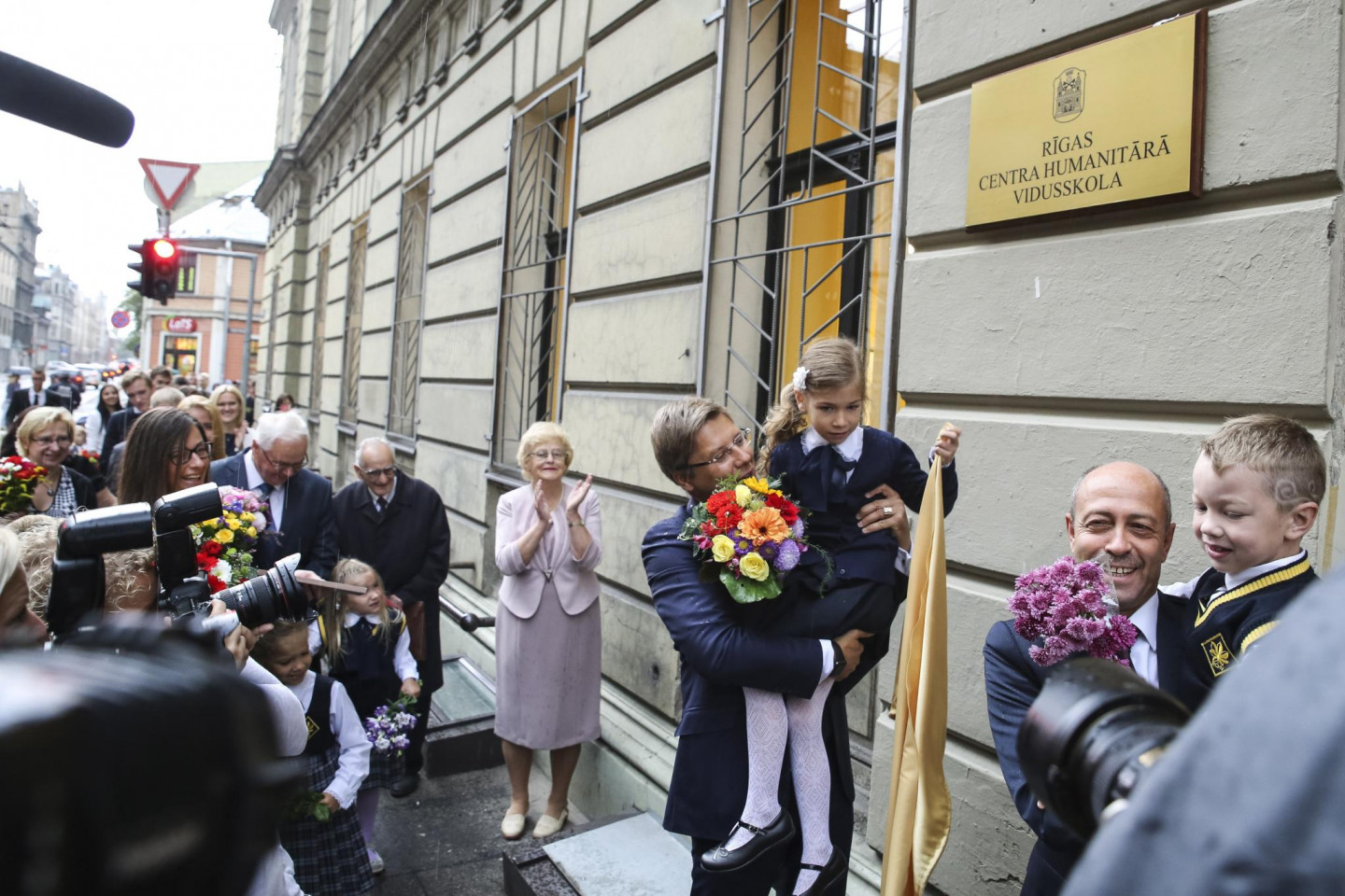 Rīgas mērs Nilš Ušakovs Zinību dienā viesojas Rīgas humanitāraja'vidusskolā.
