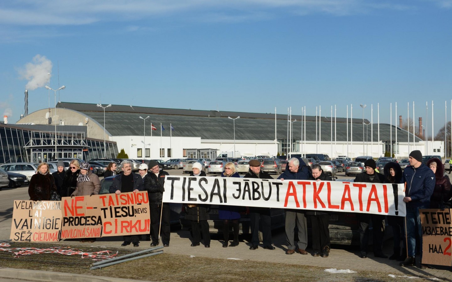 Šodien pirms Zolitūdes traģēdijas krimināllietas izskatīšanas pie Ķīpsalas izstāžu halles notika protesta pikets, kurā piedalījās traģēdijā bojā gājušo ģimenes locekļi un citi cietušie.