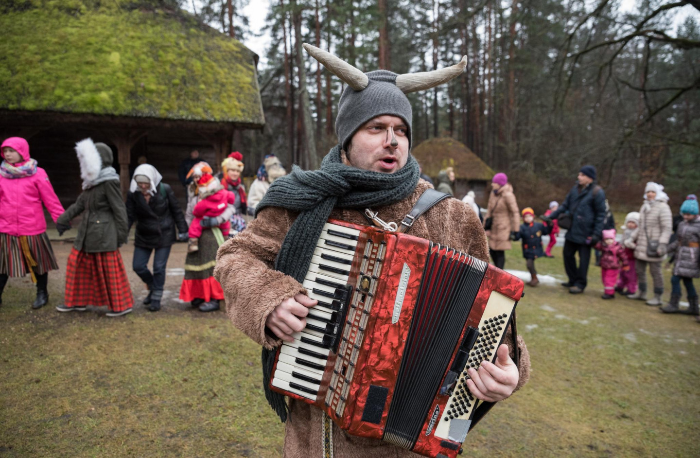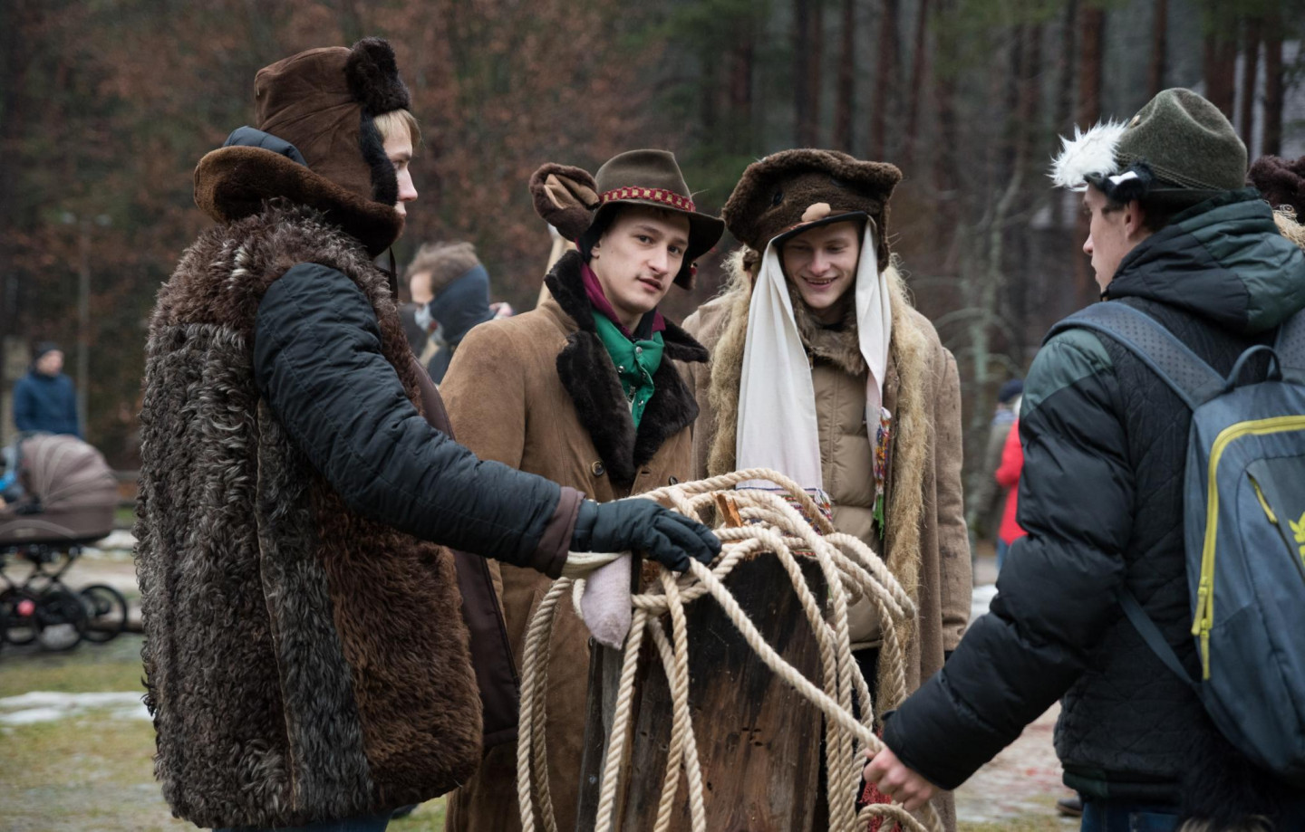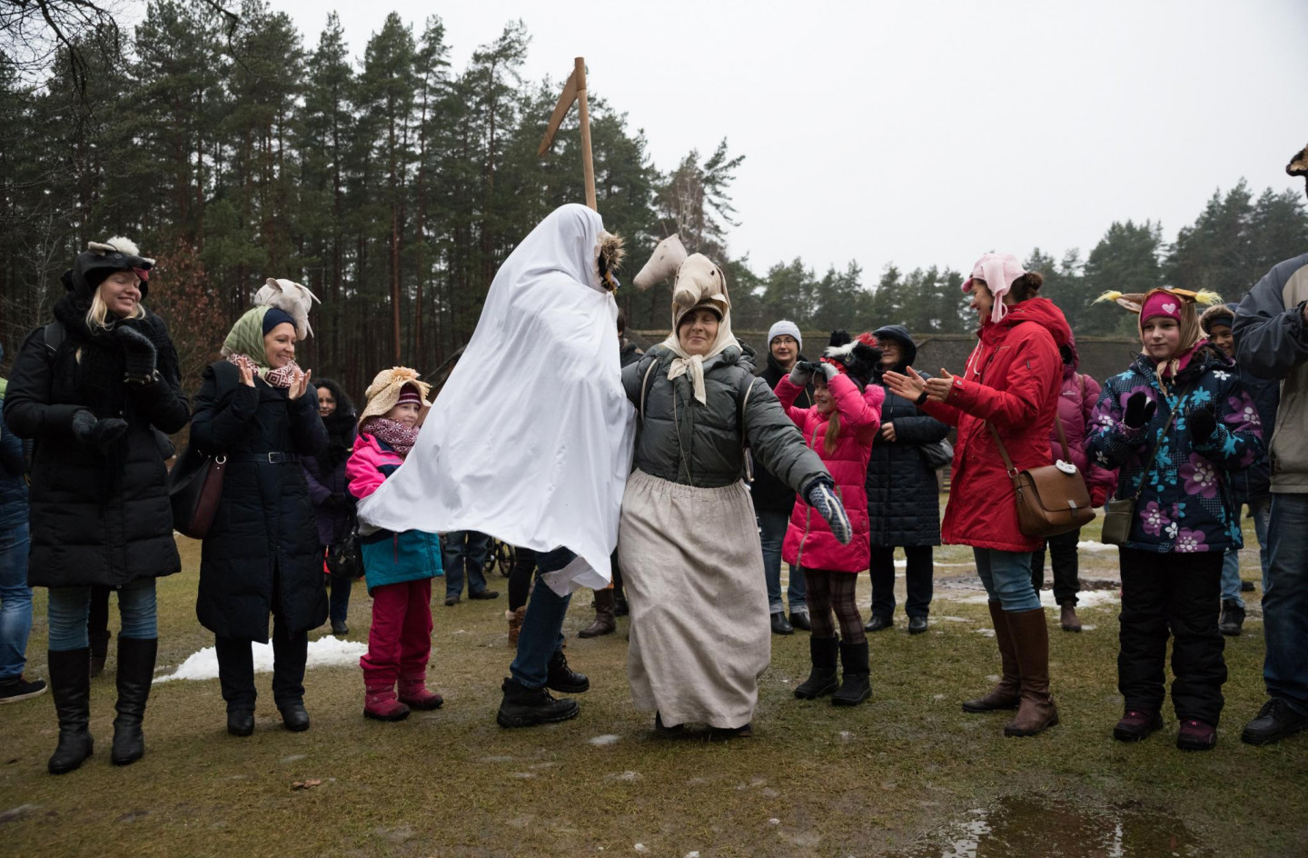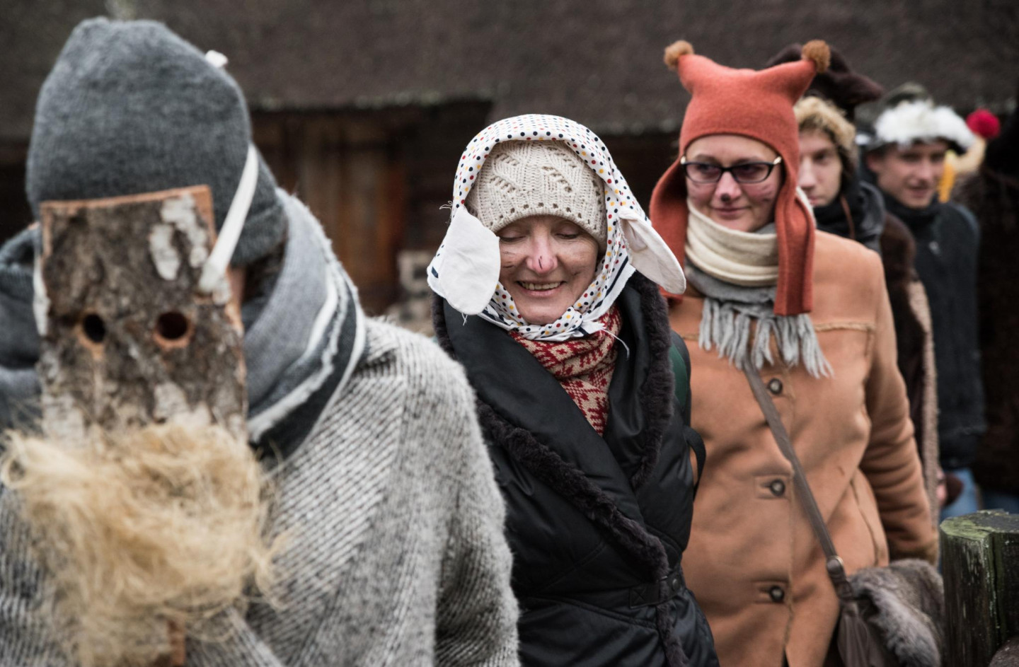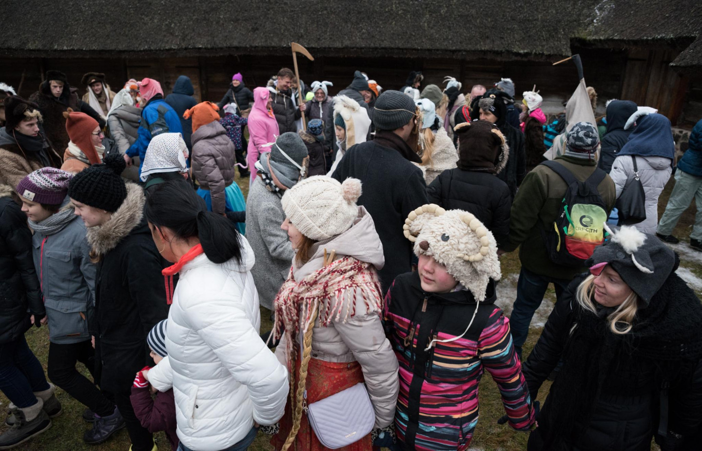 Svētdien Brīvdabas muzejā notika Ziemas saulgriežu svinēšana ar skaļām dziesmām, rotaļām, ticējumiem, zīlēšanu, laimes liešanu un laba vēlējumiem un bluķa vilkšanu.