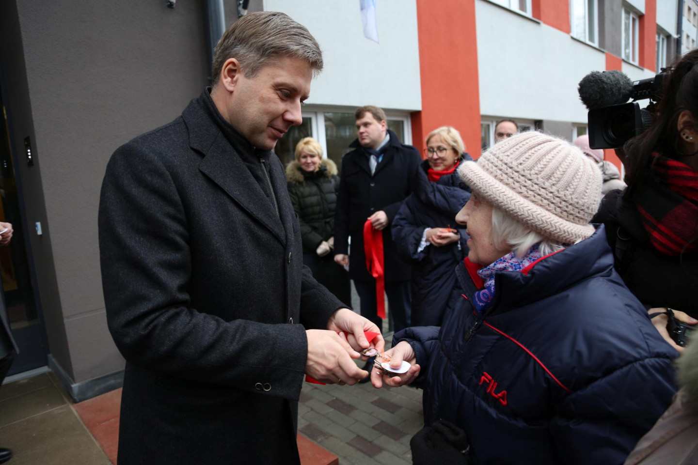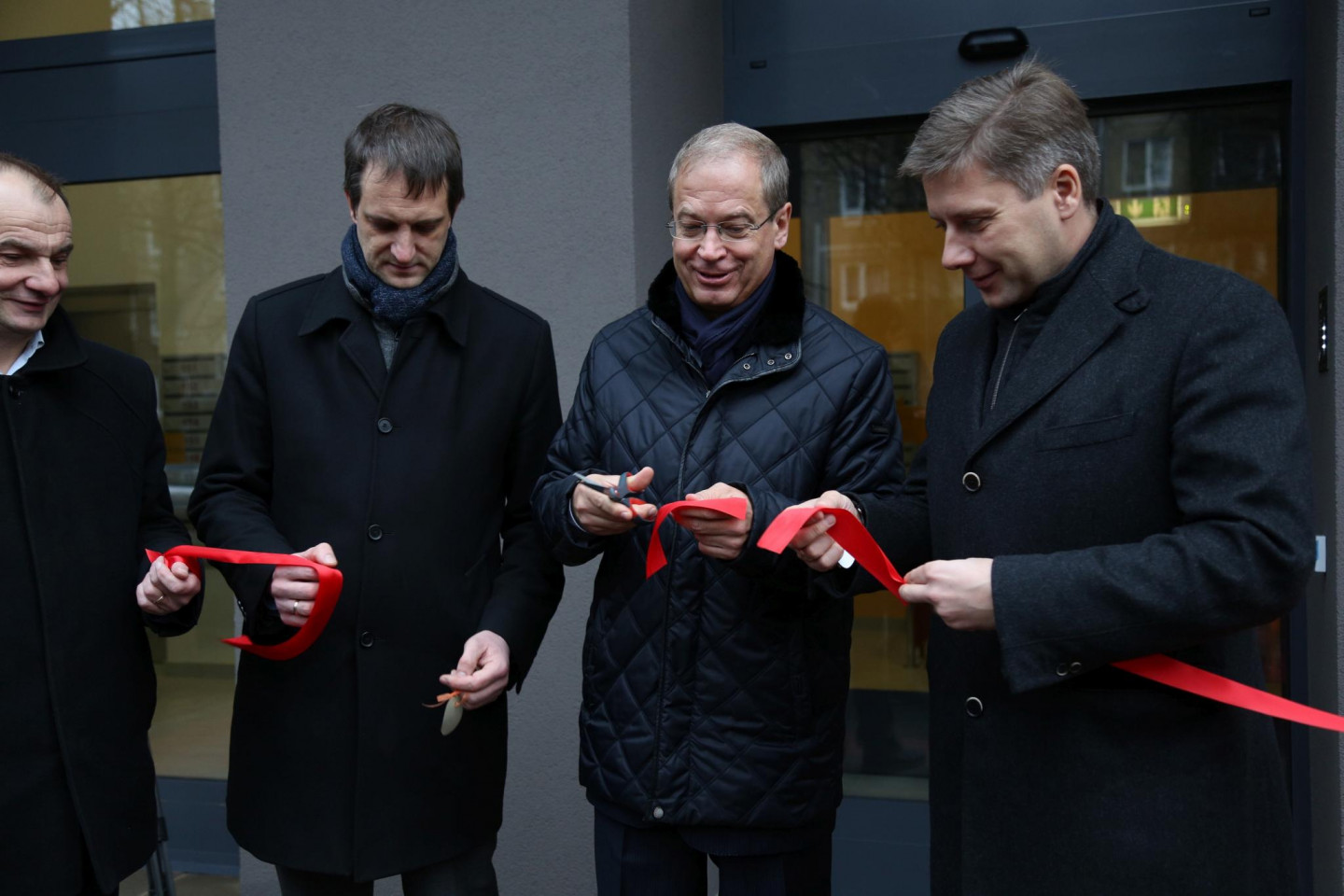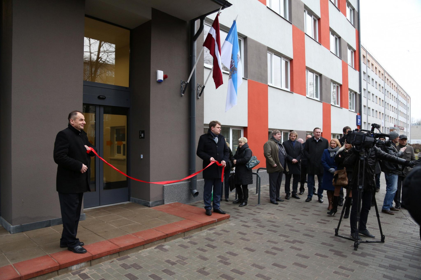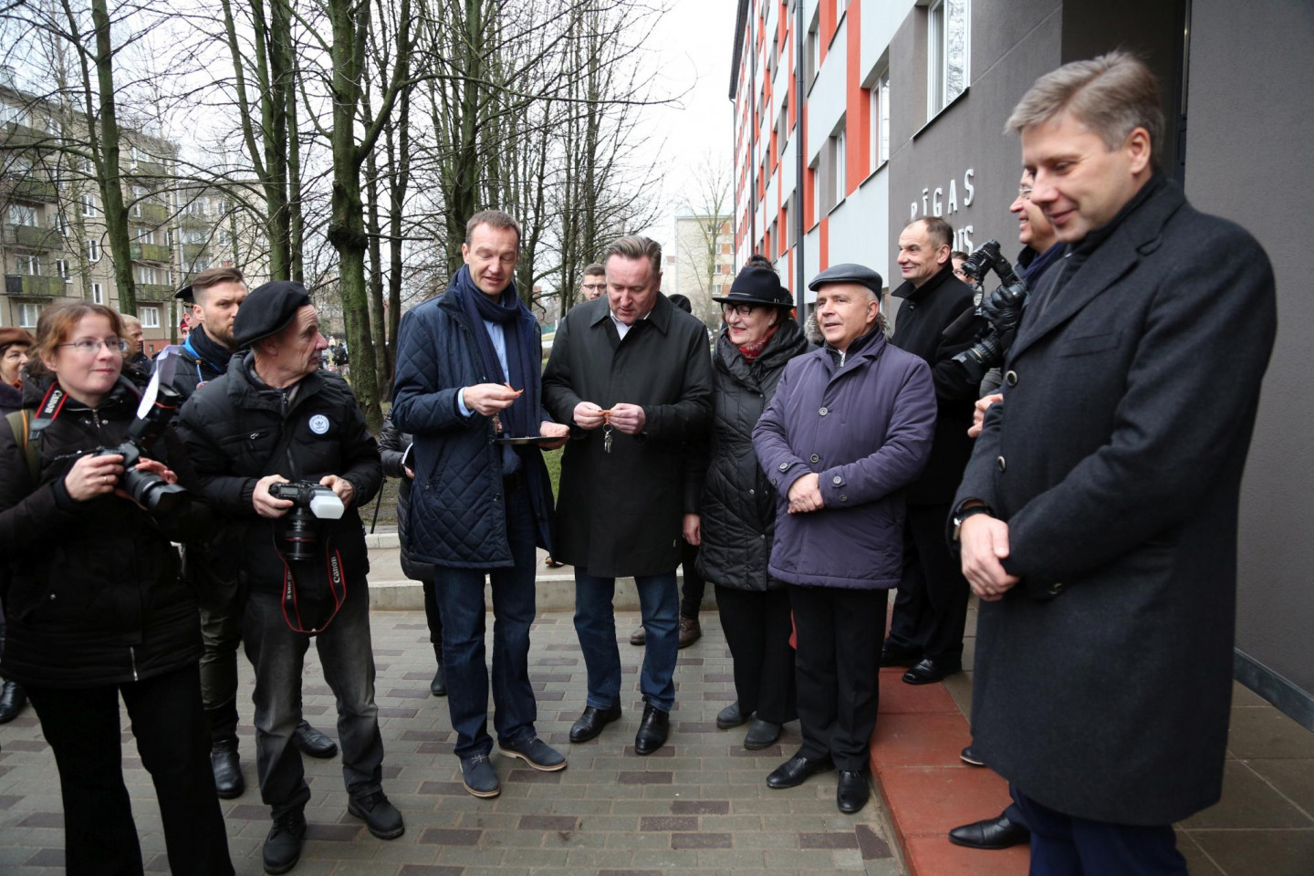Rīgas domes priekšsēdētājs Nils Ušakovs un domes priekšsēdētāja vietnieks Andris Ameriks pirmdien, 19.decembrī, atklāja renovēto sociālo dzīvojamo māju Aglonas ielā 35/1 un pasniedza atslēgas pirmajiem dzīvokļu īrniekiem.