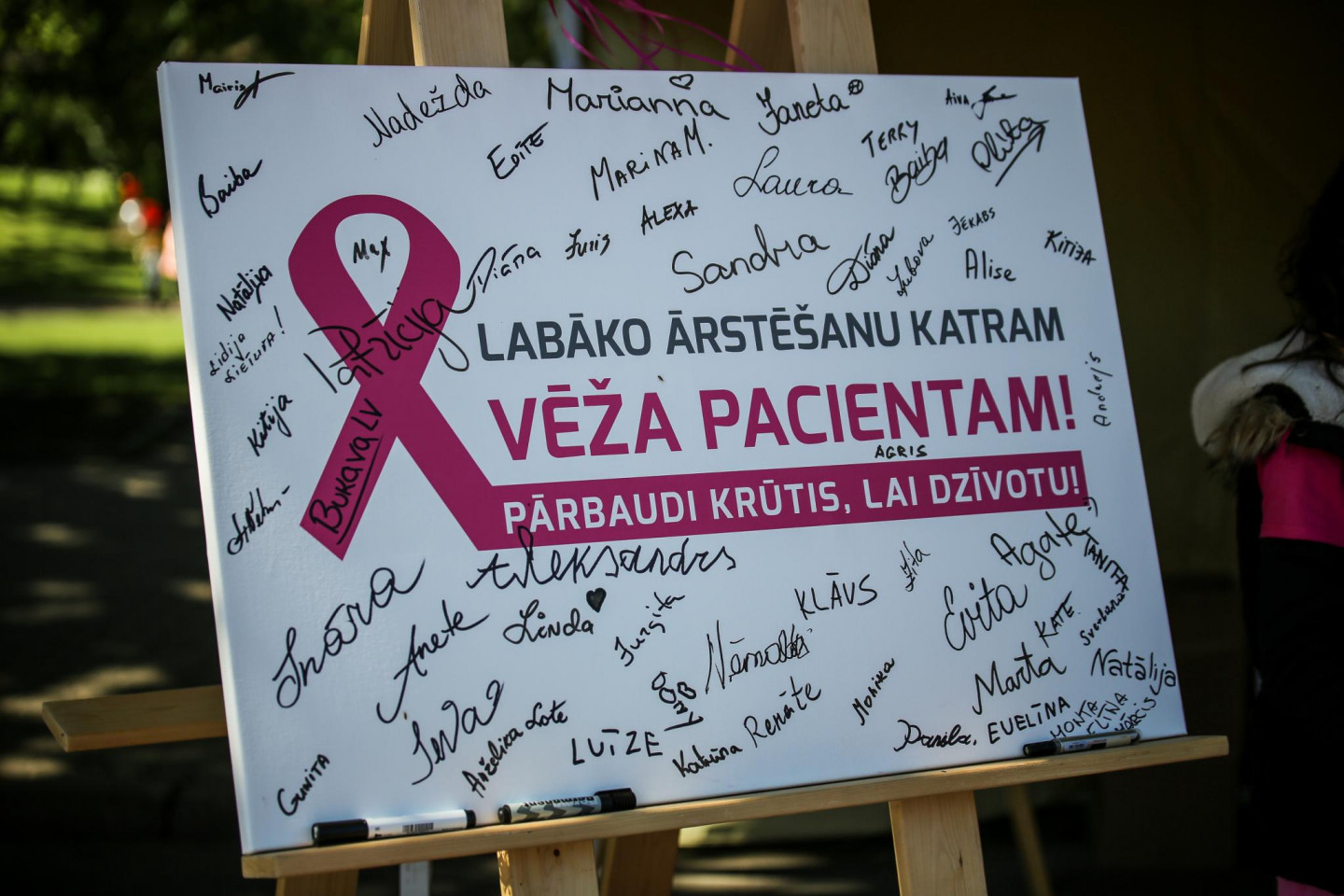 Kampaņas "Pārbaudi krūtis, lai dzīvotu!" ietvaros, šodien Rīgā norisinājās solidaritātes gājiens vēža pacientu atbalstam "Ejam kopā, lai dzīvotu!", kurš notika no Brīvības pieminekļa līdz "Arēnai Rīga", kur par ziedojumiem aizvadīta sieviešu basketbola spēle Latvija - Baltkrievija.