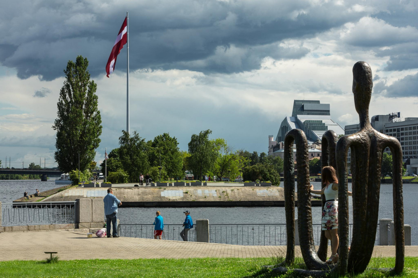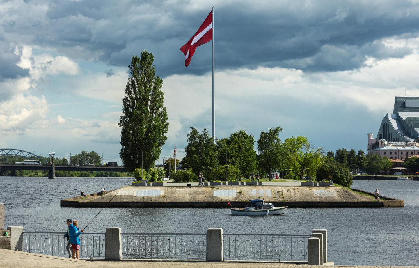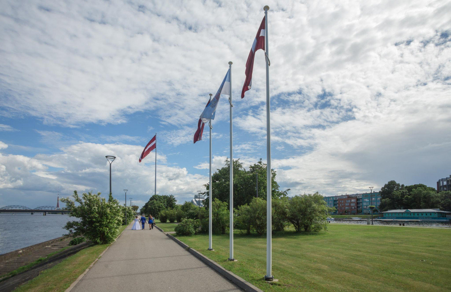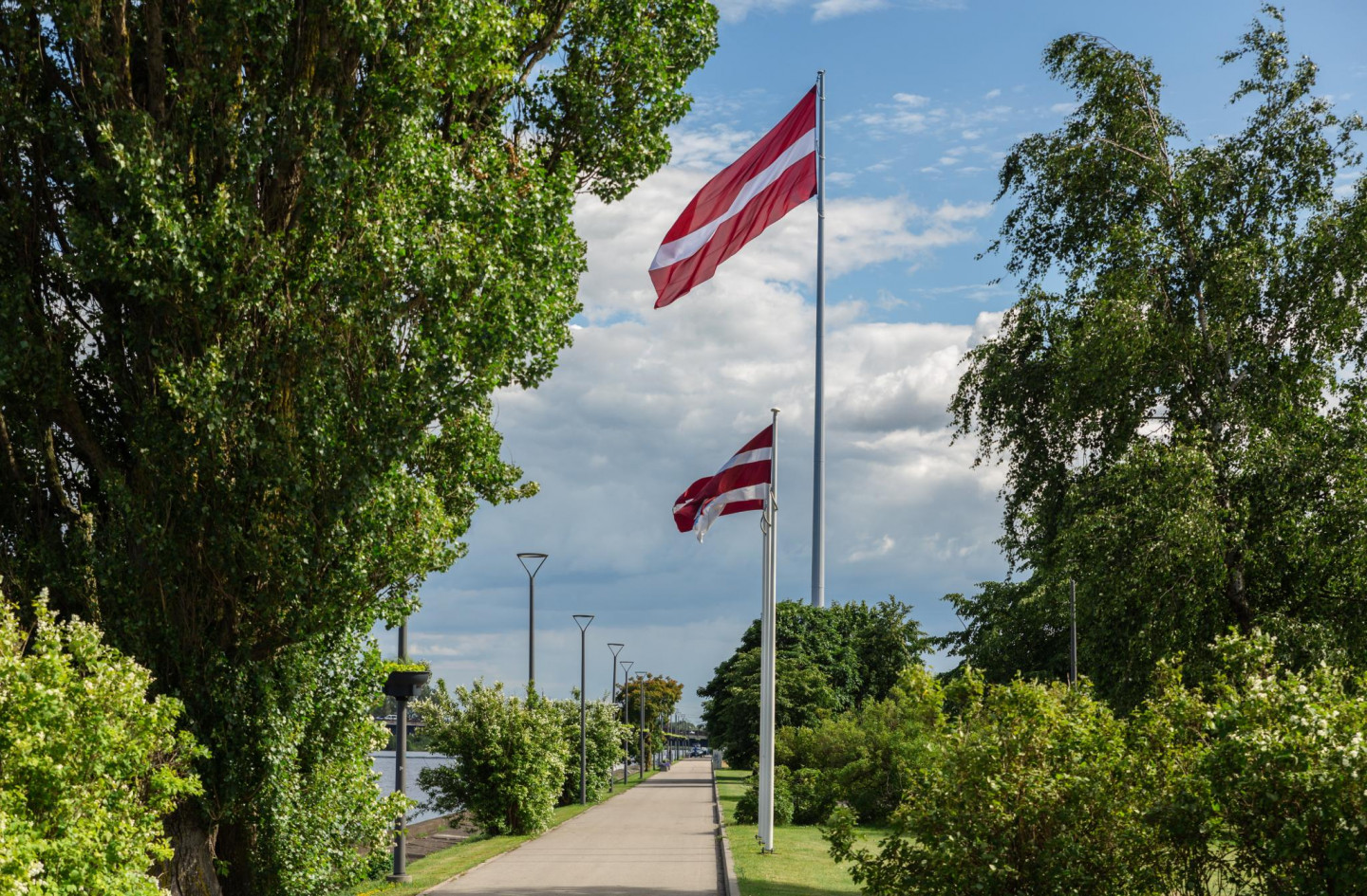 Uz AB dambja uzstādīts monumentālā Latvijas karoga 60 metrus augstais karoga masts, paceļot tajā arī Latvijas karogu