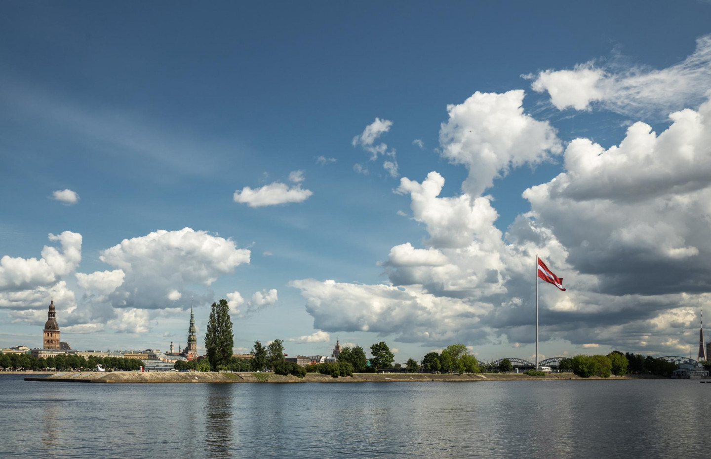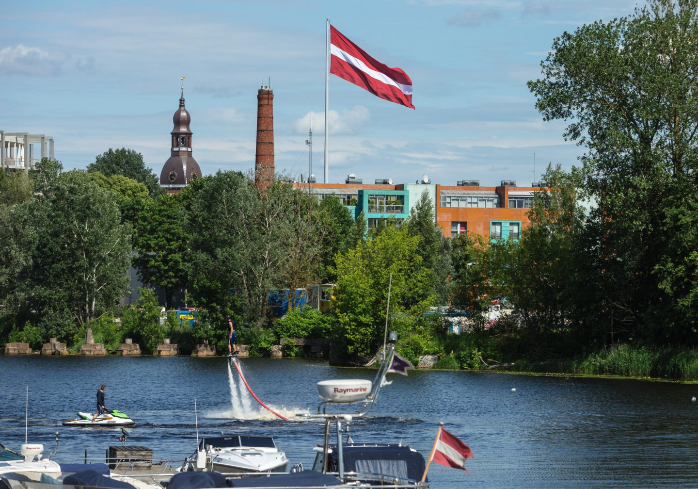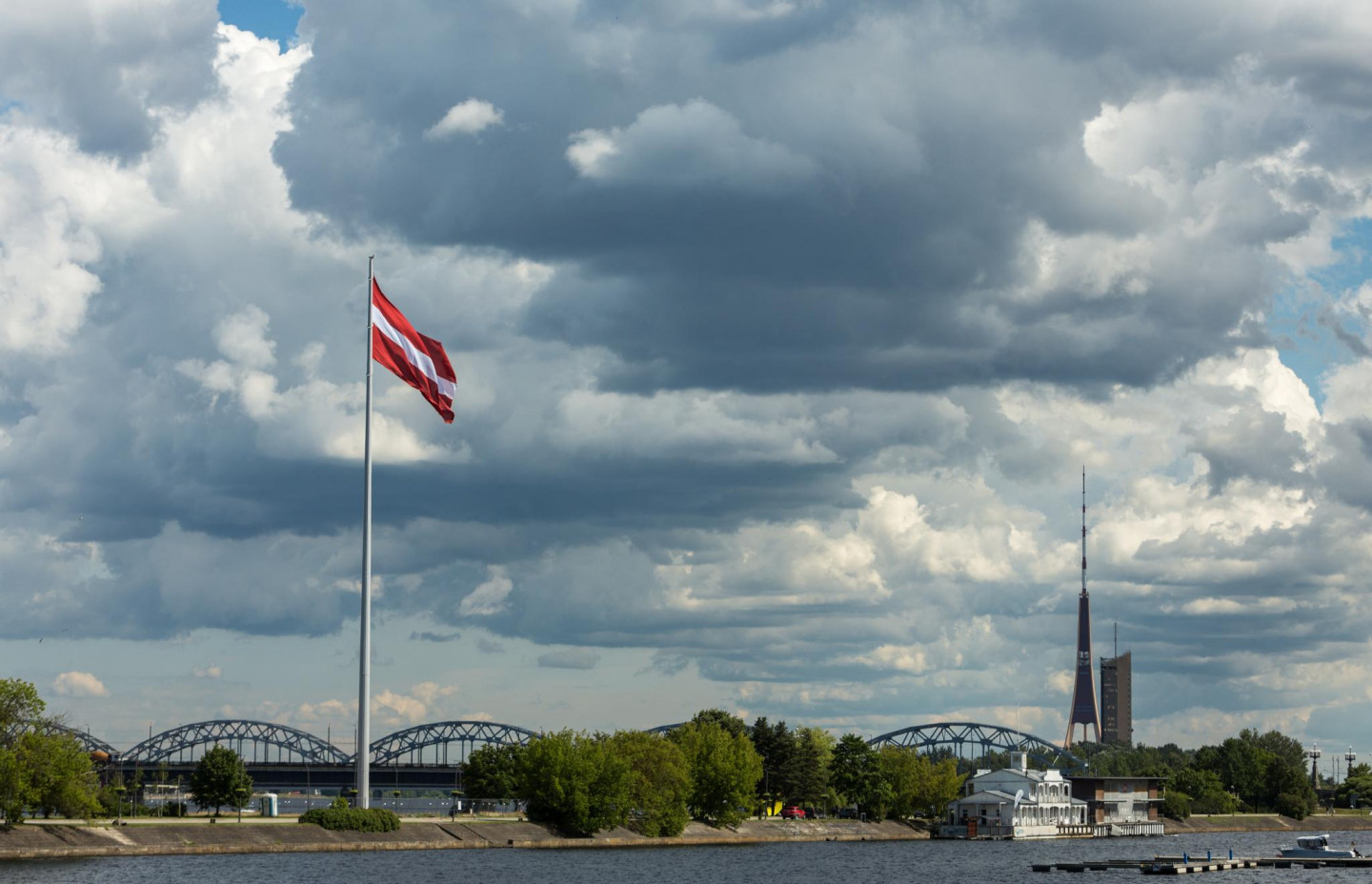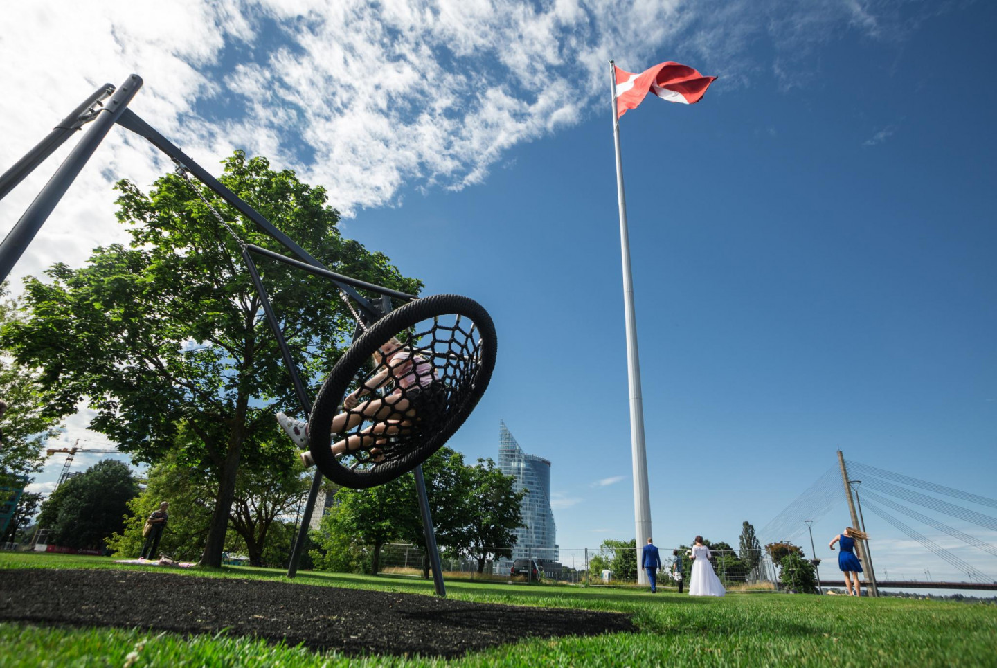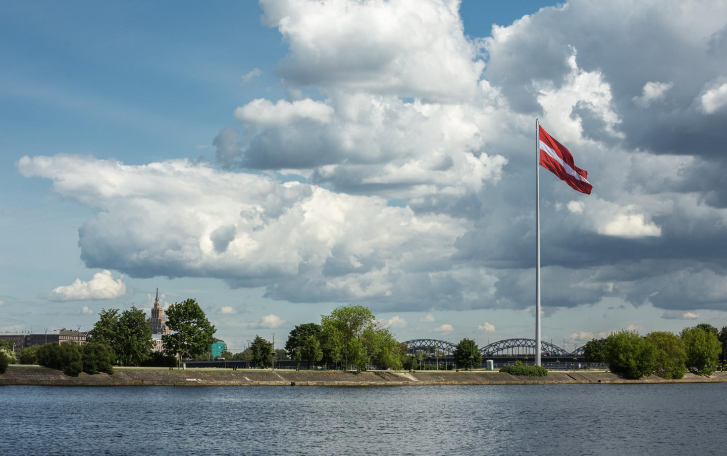 Uz AB dambja uzstādīts monumentālā Latvijas karoga 60 metrus augstais karoga masts, paceļot tajā arī Latvijas karogu