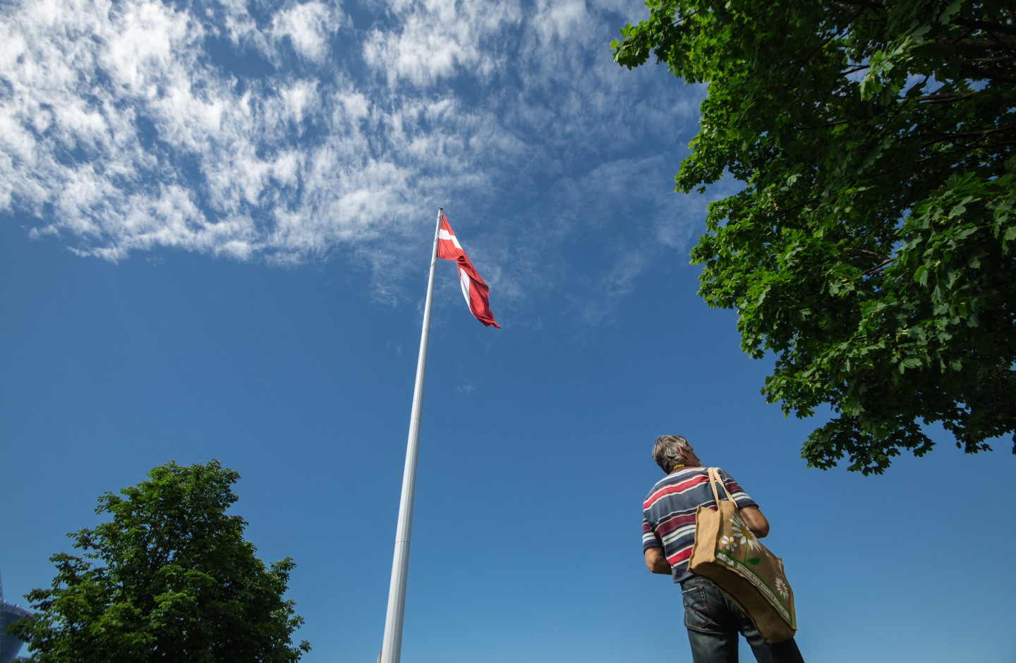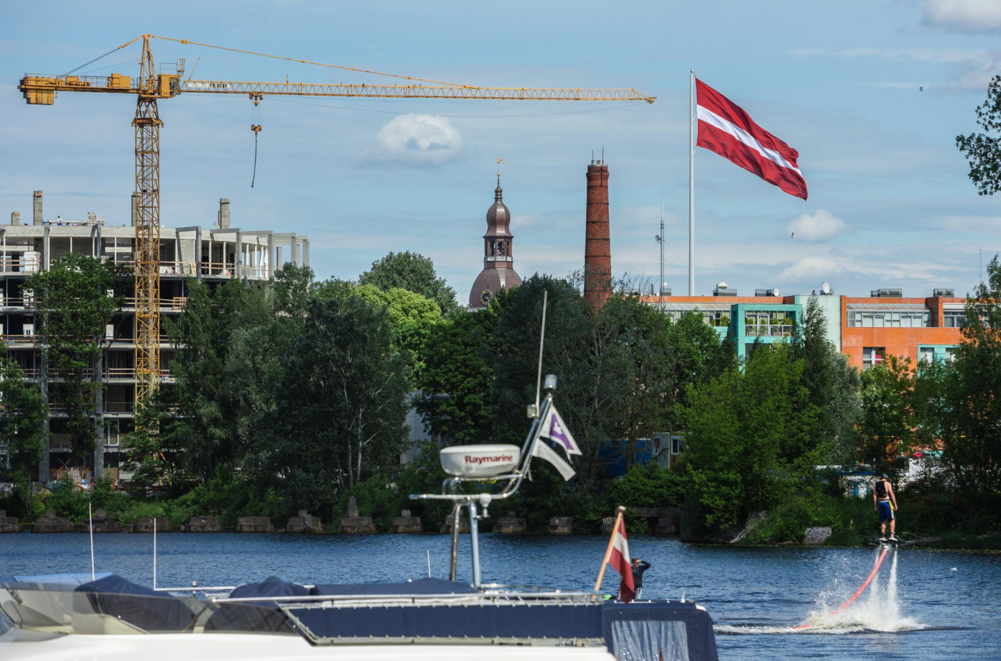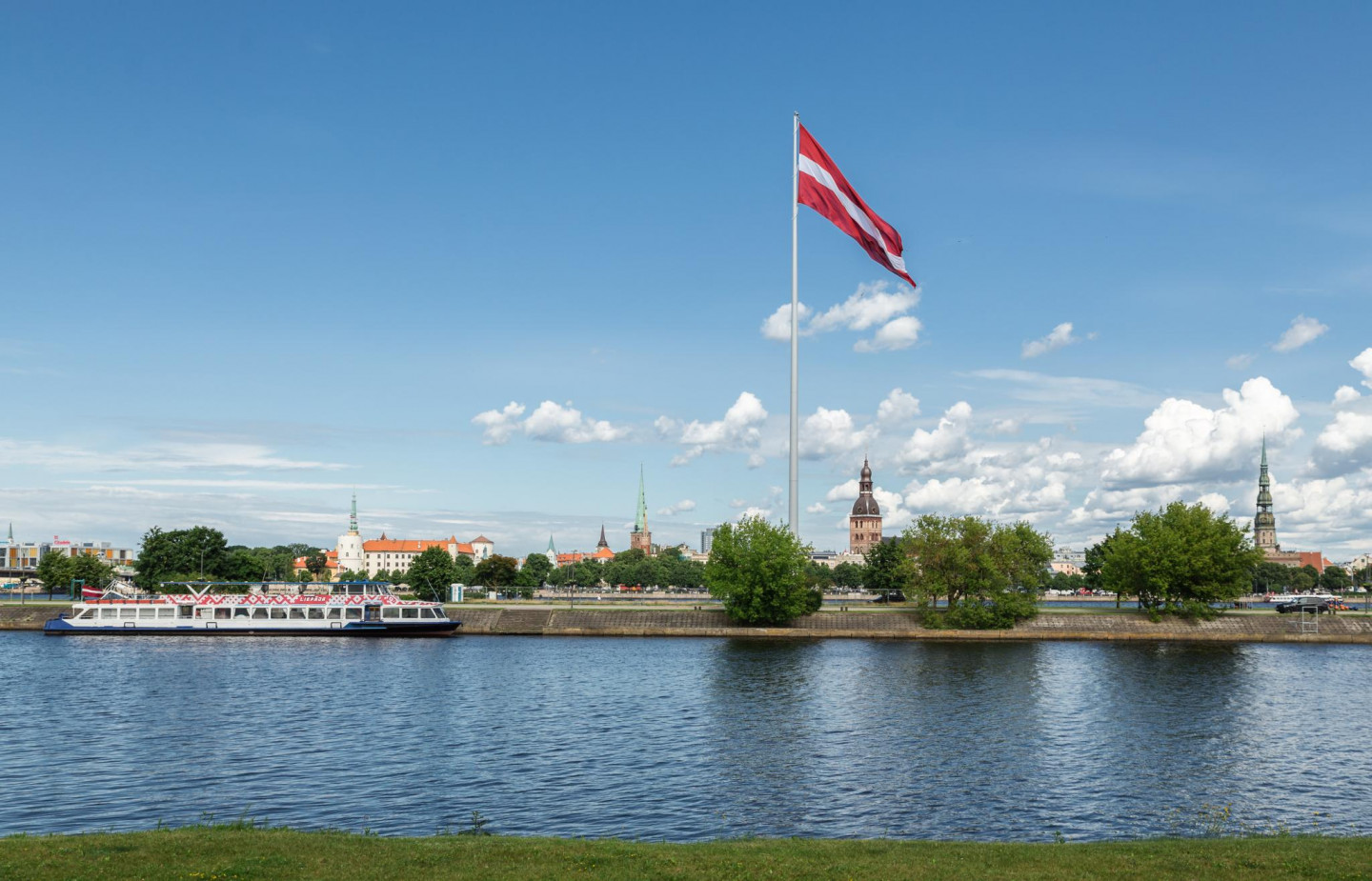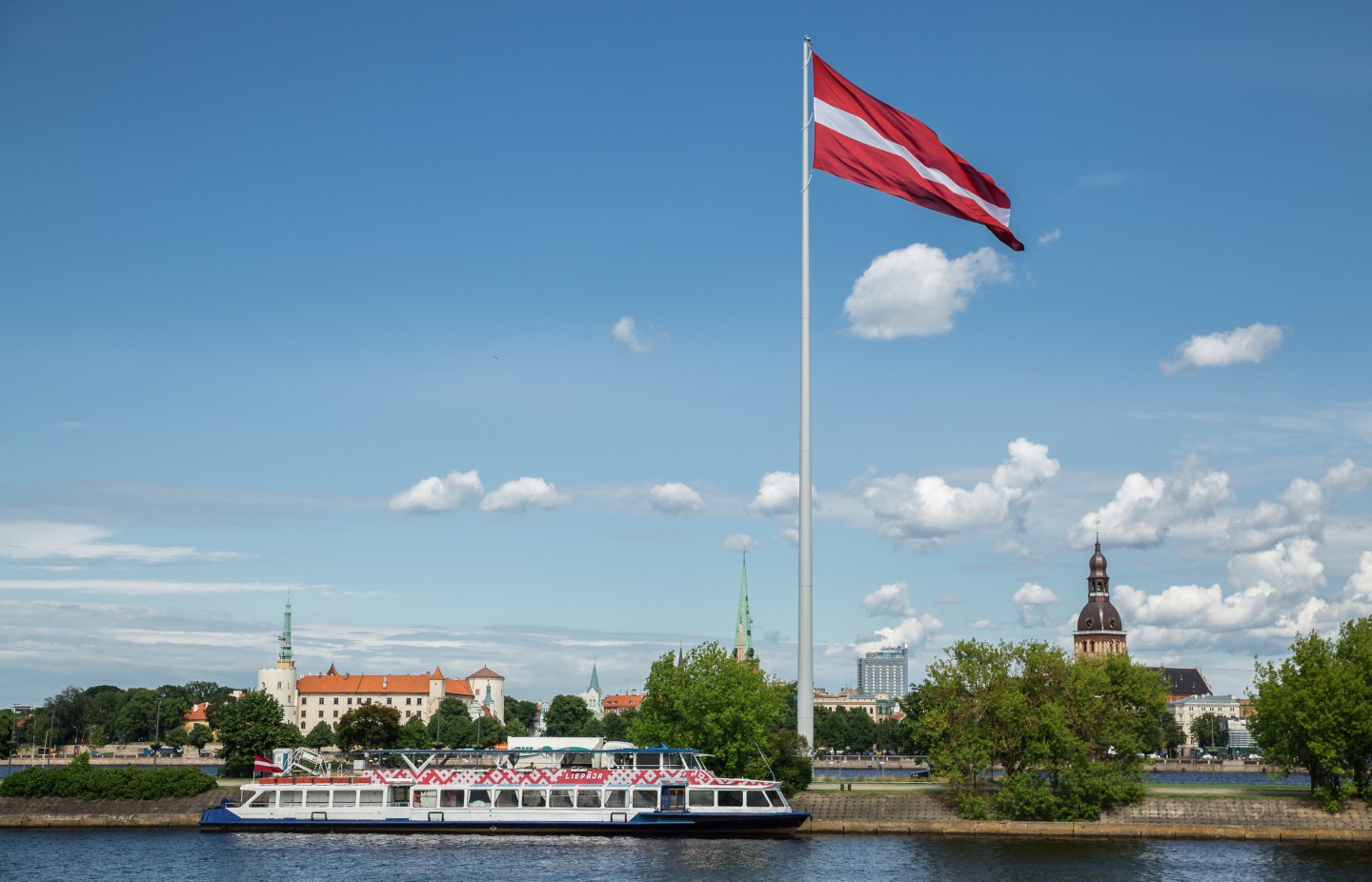 Uz AB dambja uzstādīts monumentālā Latvijas karoga 60 metrus augstais karoga masts, paceļot tajā arī Latvijas karogu