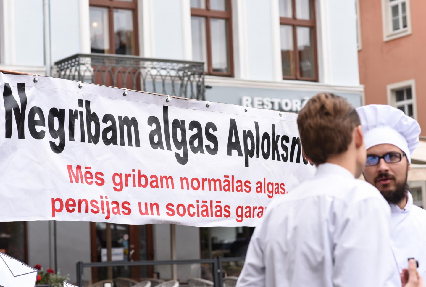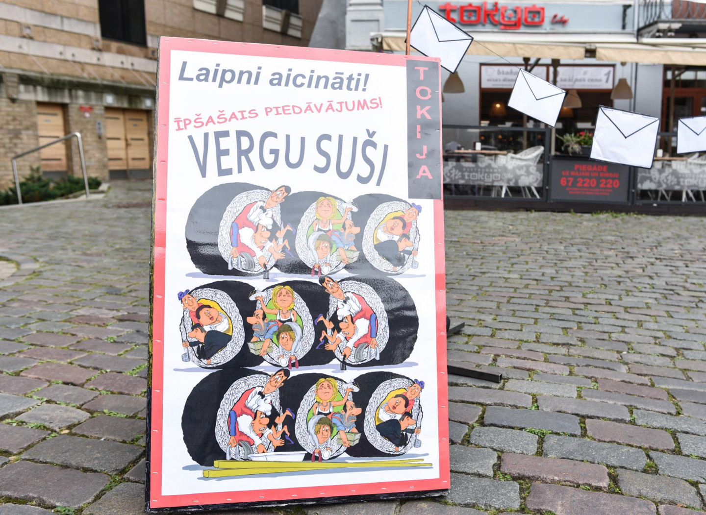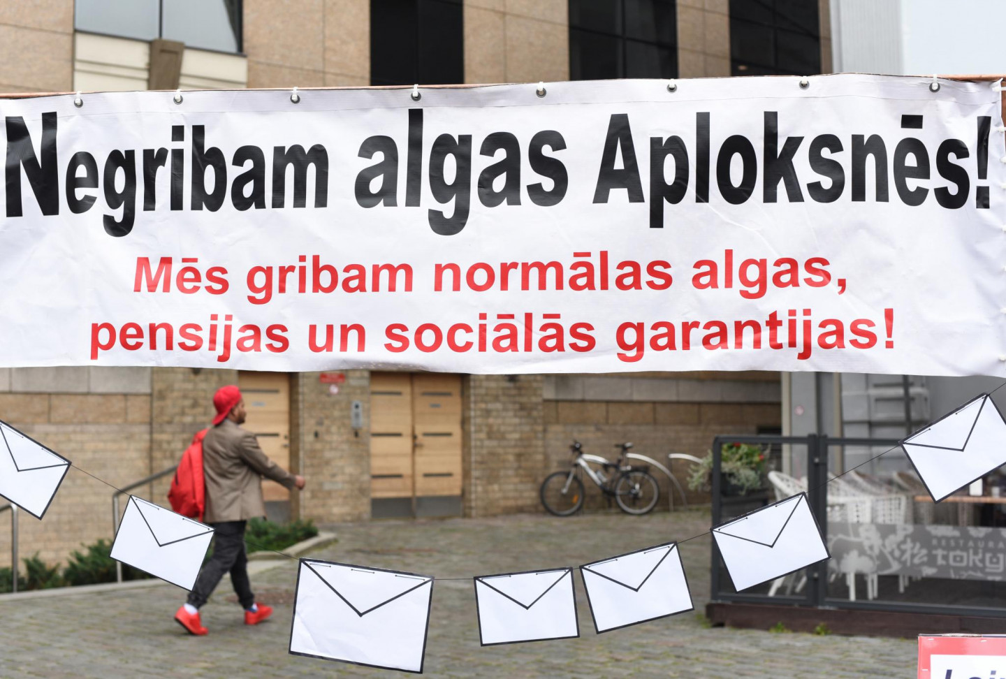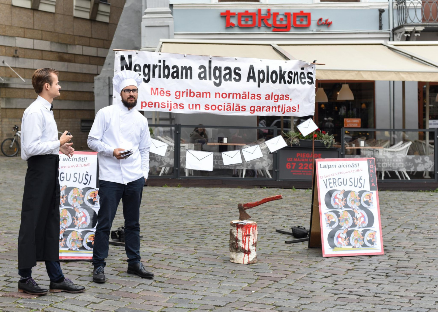 Vecrīgā pie sabiedriskās ēdināšanas uzņēmuma "Tokyo City" ceturtdien noticis pikets pret aplokšņu algām.