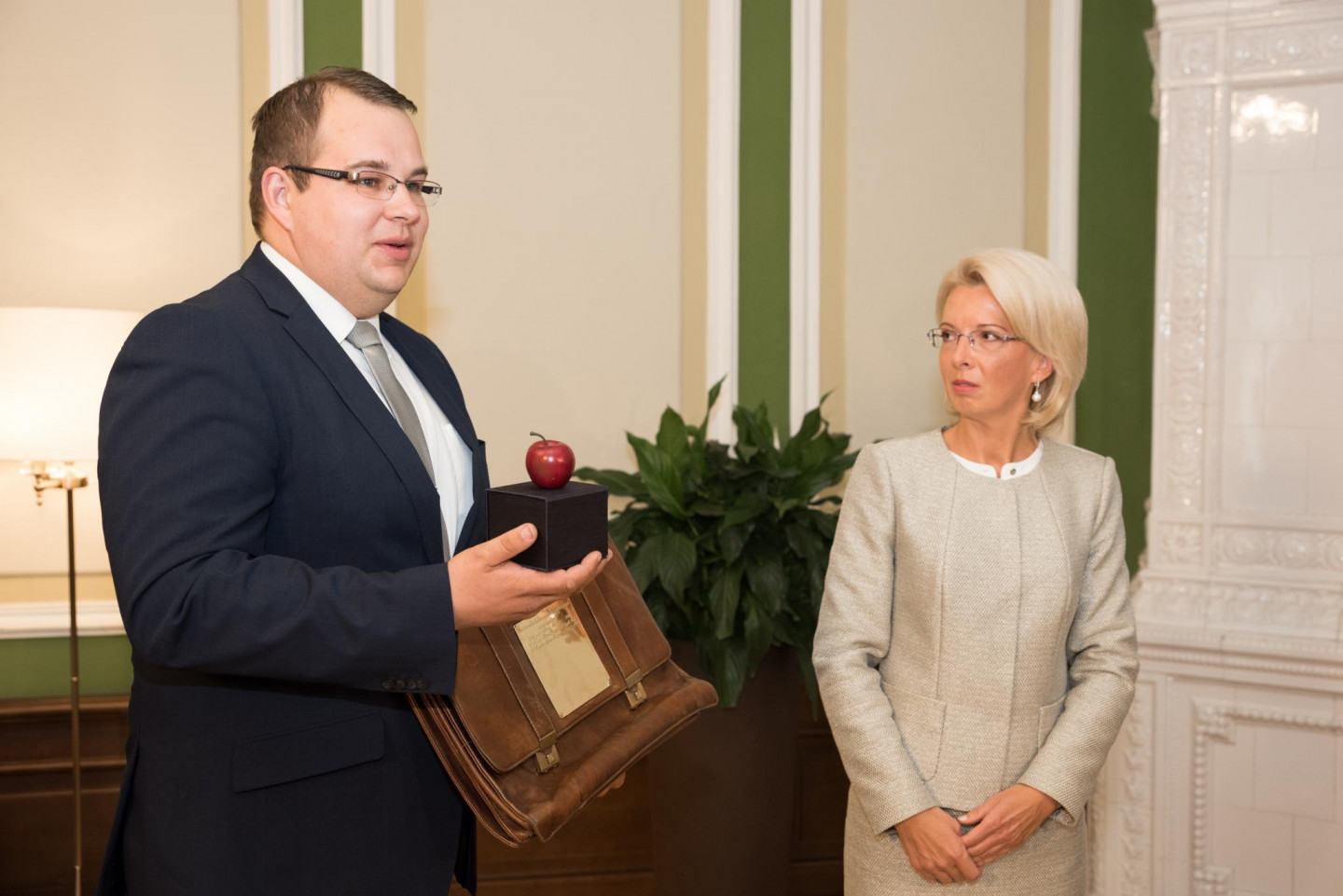 Finanšu ministre Dana Reizniece-Ozola Saeimā iesniedza 2018.gada valsts budžeta projektu. To pieņēma Saeimas priekšsēdētāja Ināra Mūrniece un deptāts un Finanšu ministrijas parlamentārais sekretārs Edgars Putra.
