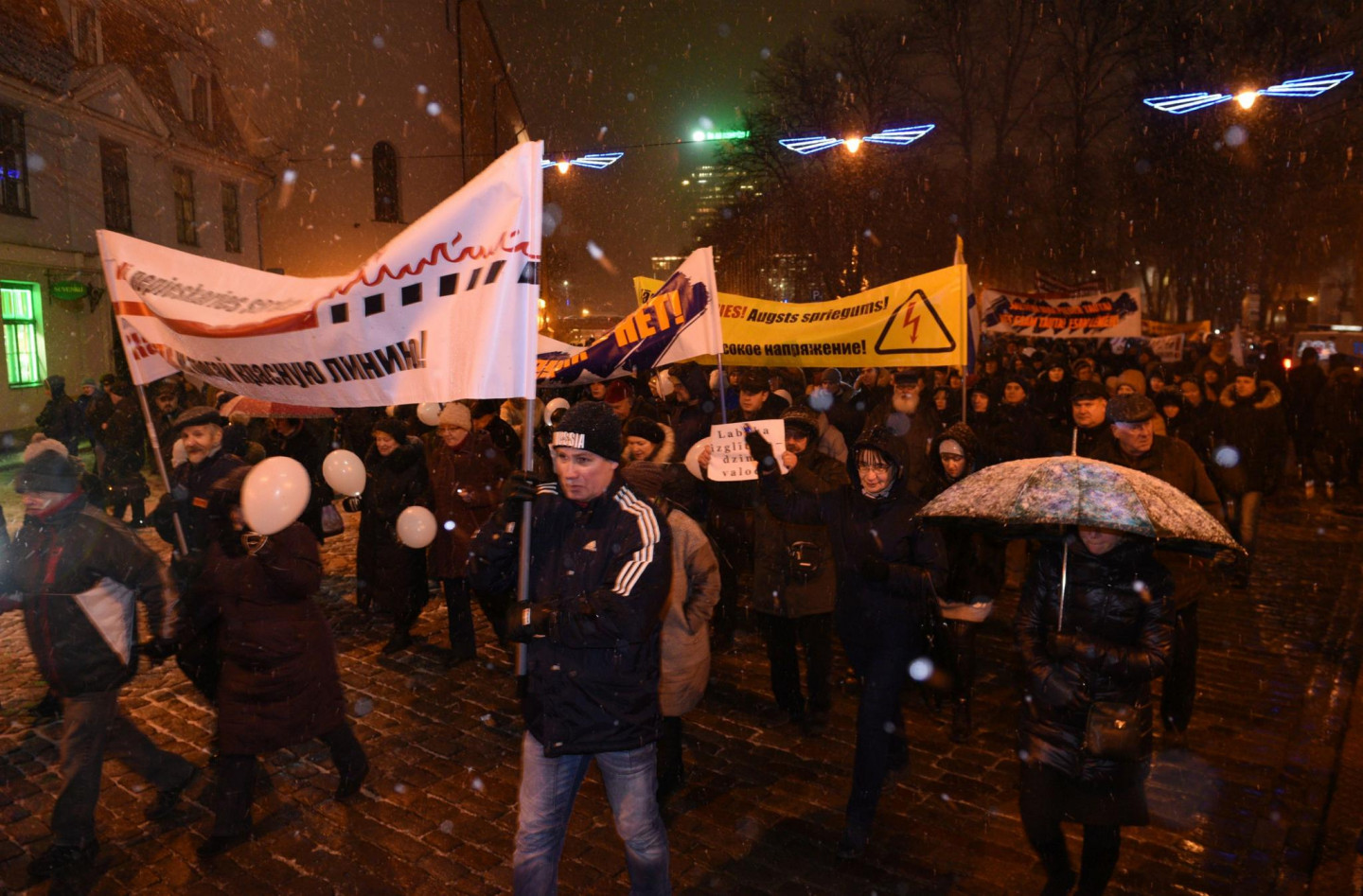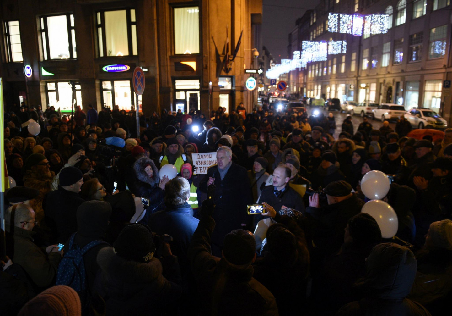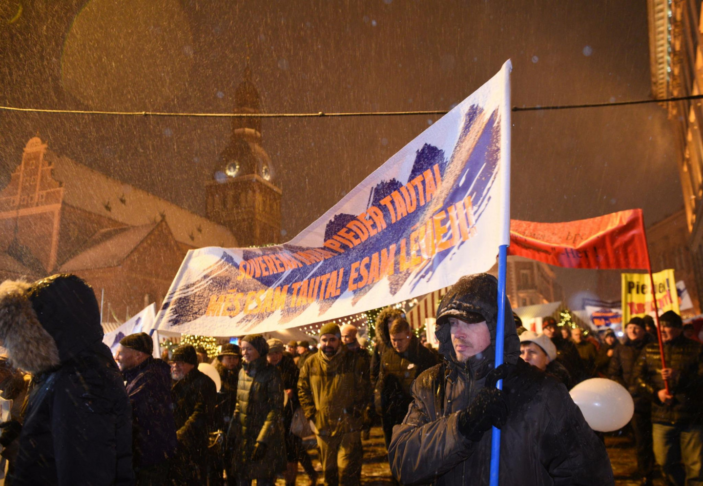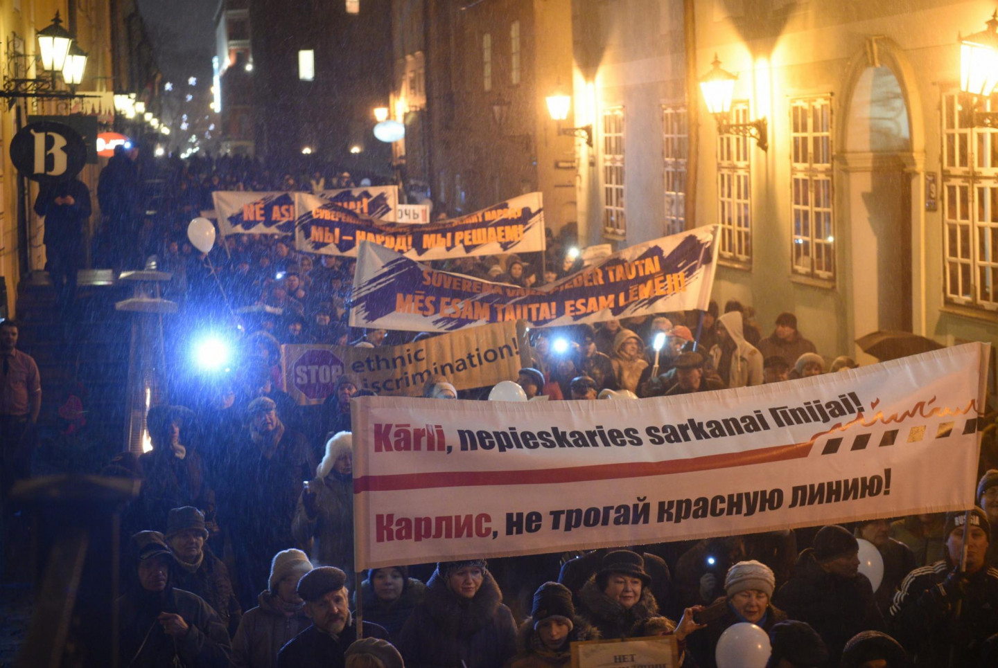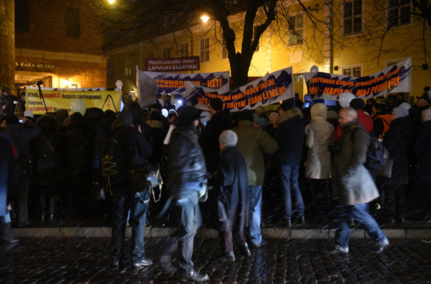 Šodien Rīgā pulcējās vairāki simti cilvēku, kuri protestēja pret to, ka skolās varētu notikt pāreja uz mācībām latviešu valodā.