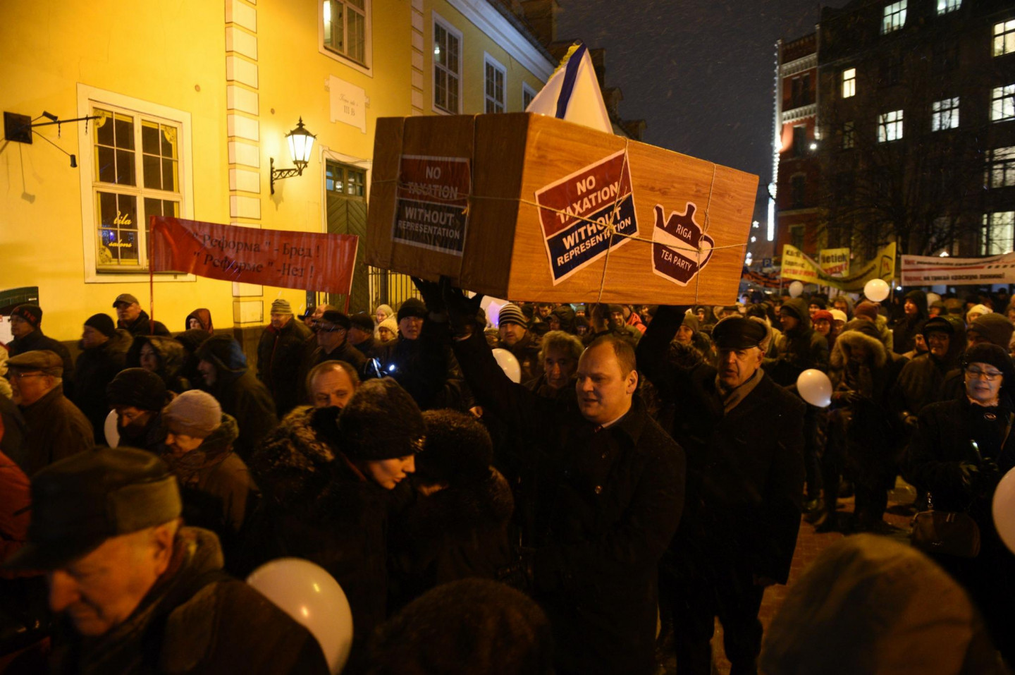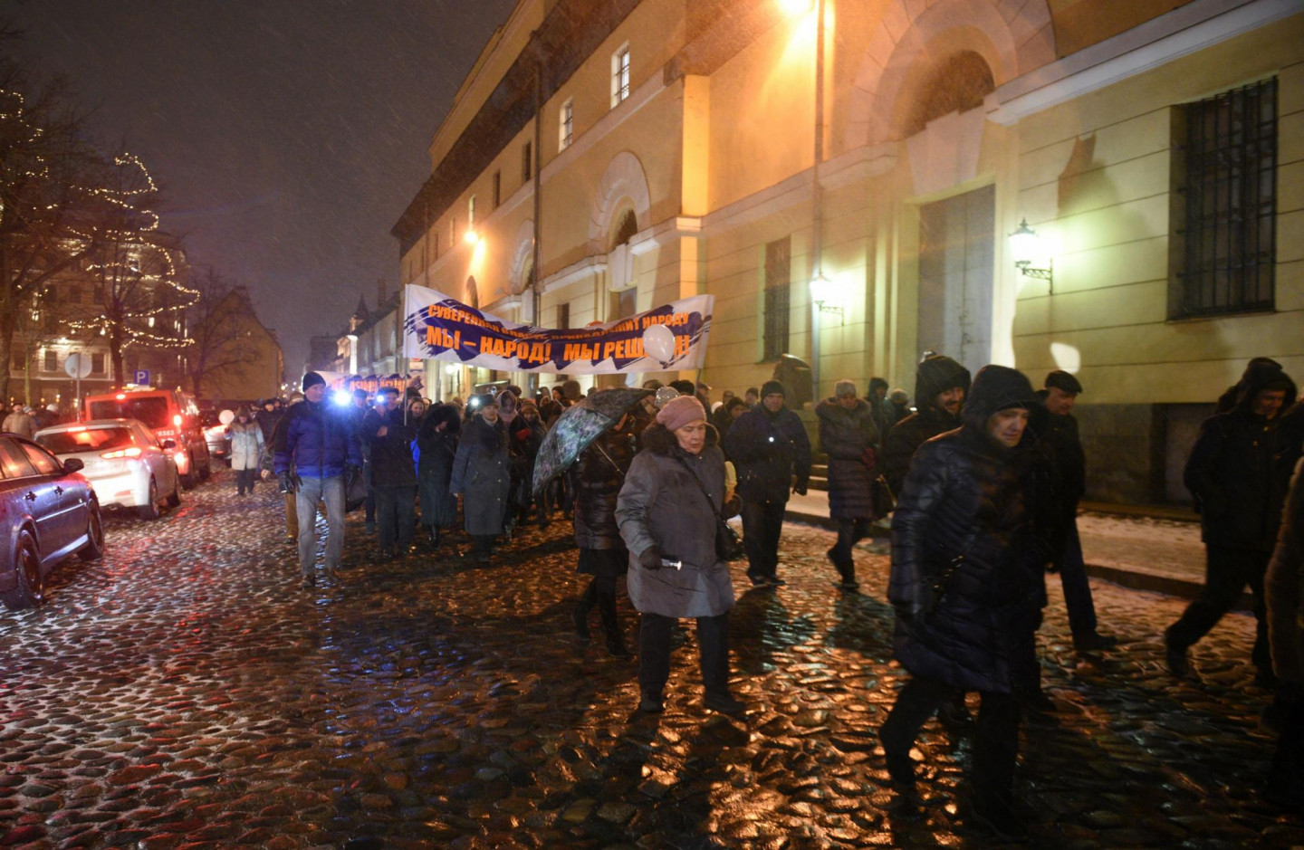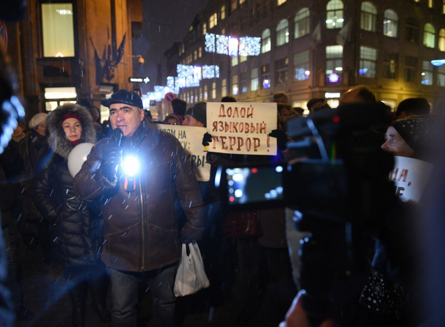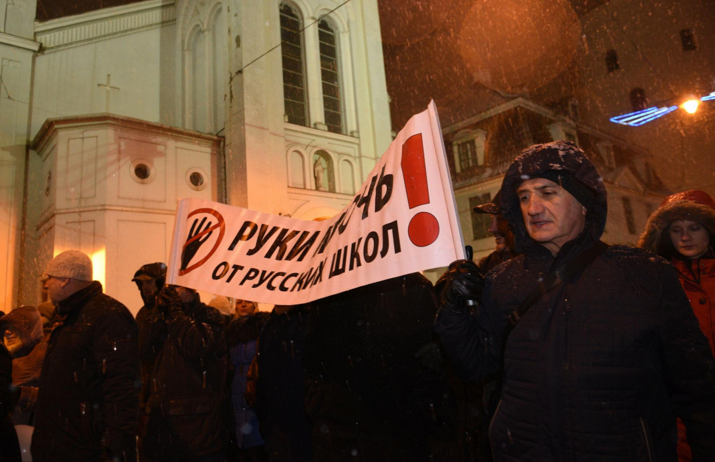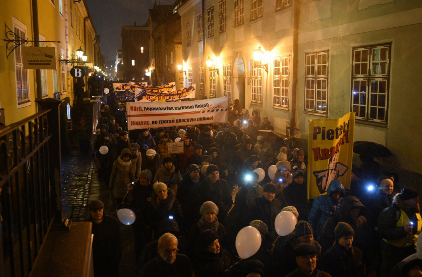Šodien Rīgā pulcējās vairāki simti cilvēku, kuri protestēja pret to, ka skolās varētu notikt pāreja uz mācībām latviešu valodā.